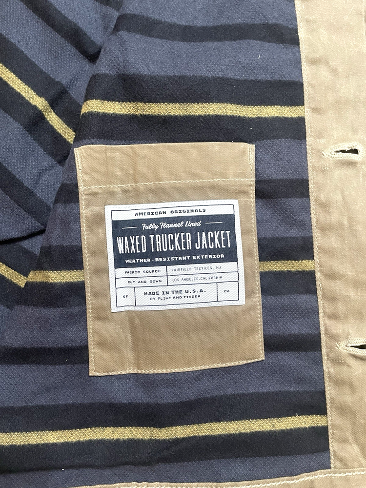 HomeFlint and Tinder Waxed Trucker Jacket Medium-Tall Field Tan with Flannel Lining
