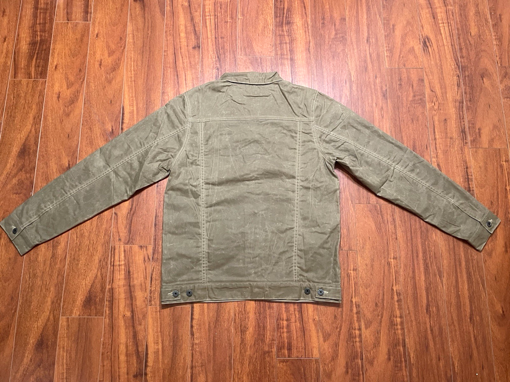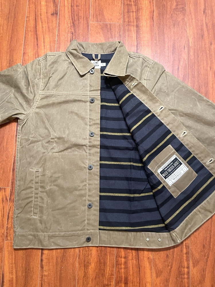Flint And Tinder Flannel Lined Waxed Trucker Jacket Size Medium-Tall Field Tan. Condition is New without Tags.