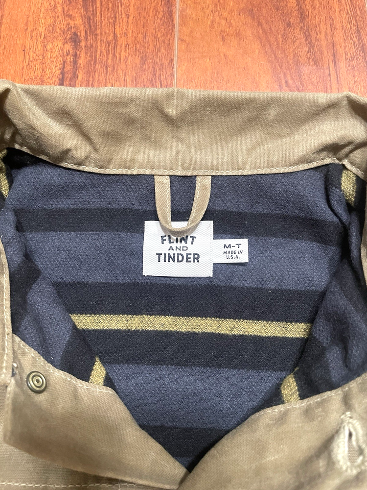 Fabric Type:FlannelUPC:Does not applyColor:BrownSize:MTCountry/Region of Manufacture:United StatesHandmade:NoStyle:Trucker JacketPattern:SolidVintage:NoOuter Shell Material:CottonBrand:Flint And TinderFeatures:Waxed, LinedLining Material:CottonTheme:OutdoorOccasion:WorkwearType:Jacketgtin13:Does not applyClosure:ButtonSize Type:Big & TallDepartment:Men