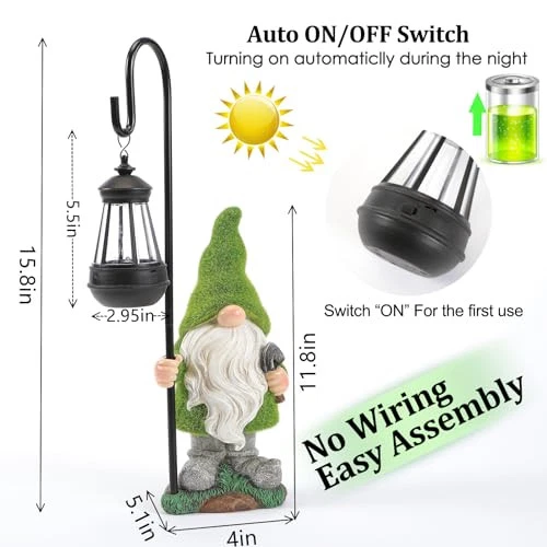 Return Policy Fast Delivery Trusted seller Flocked Garden Gnome Statue, Large Outdoor Gnome with Solar Lights, Funny Garden Figurines for Outdoor Home Yard Decor (15.8 Inch Tall) Product Description SOLAR STATUE: Illuminate your lawn and garden at night with this charming statue featuring light-up flocked sculptures that emit a warm glow as the sun sets and the sky becomes dark. Absorbing sunlight during the day, this lawn ornament uses solar power to light up the night WARM GIFTS: Size:8.8x4x15.8 Inch. This garden décor figurines is one of the best gifts you can give. This lawn ornament is a perfect gift for you family and friends on Christmas ,Thanksgiving, Birthdays,Mother's Day and Housewarming HIGH-QUALITY MATERIALS: Each figurines is hand-painted vibrant colors and the light is waterproof, and as every parts is made of long-lasting resin and hand painted with UV resistant paint, making it solid and lasting EASY TO USE: No wiring is required for this Solar Garden Lights, Simply turn the figurine on and leave it in the ?on? position during the daytime. The solar panel will charge during the daylight hours and light up automatically at night. The LED lights will fully charge within 5-8 hours and will light up for 8-10 hours. Eco-friendly and hassle-free BUY NO WORRIES: Any issues with these Outdoor Decor Light, please feel free contact us. We offer friendly customer service Shipping Returns Payment Shipping Shipping is FREE to all addresses other than APO/PO boxes in the lower 48 states. All our stock ships from US-based warehouses. Shipped via USPS or UPS (depending on location and package weight) Unless stated otherwise, all orders will ship within 24-72 hours of your payment being processed. Check our feedback to see the great reviews of FAST shipping we offer. Returns Seller does not accept returns Payment We currently accept payment via eBay managed payments only. Once payment is cleared, we will dispatch your shipment within 1-3 business days. Please refer to the "Shipping" tab for more information regarding shipping speed to your destination.