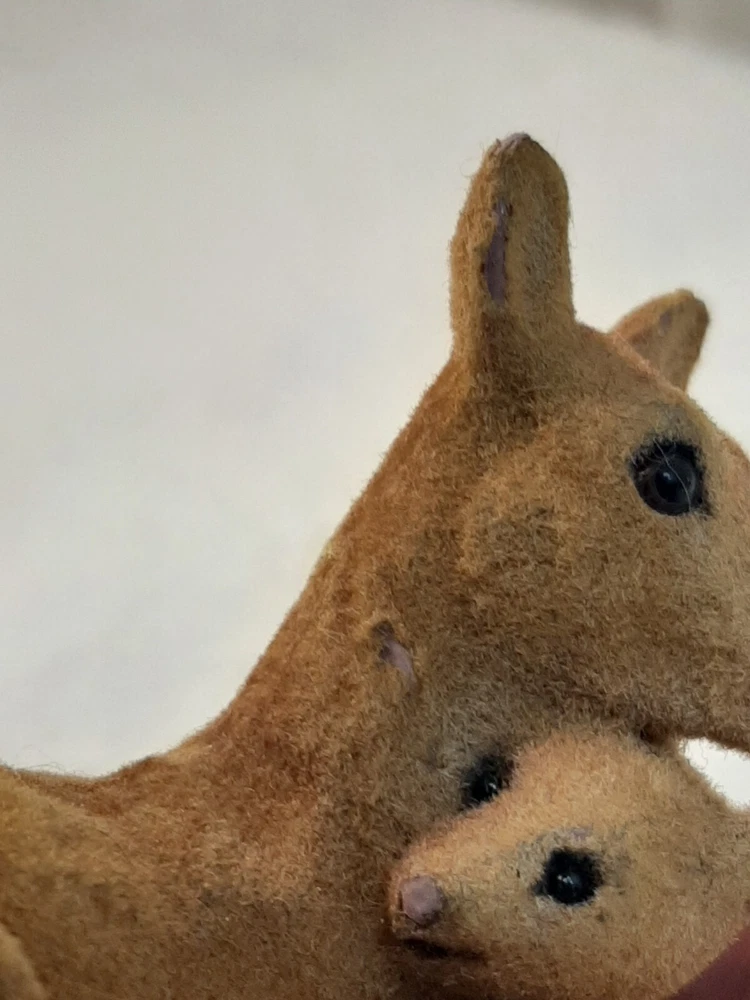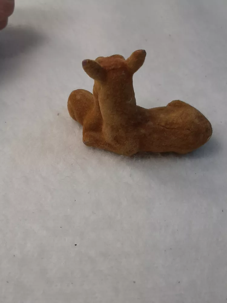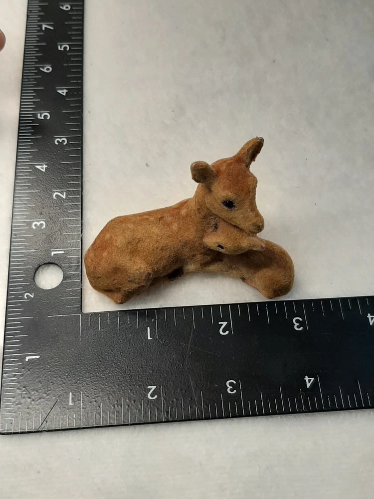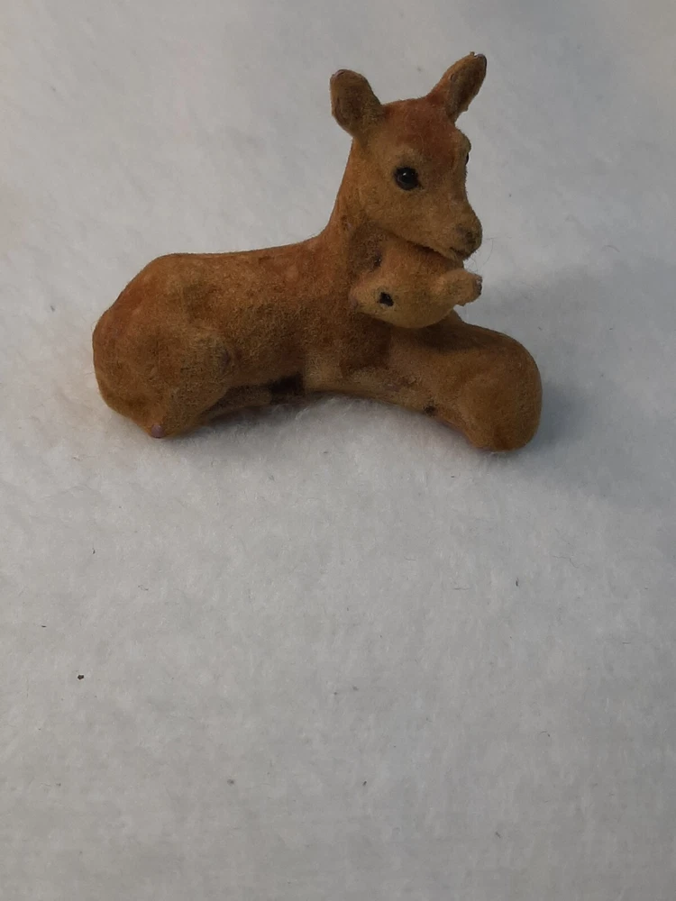 Flocked Vintage Deer Doe Fawn Figure Brown Felt Momma Baby Holiday Decor In good pre-owned condition may show signs of wear from use/handling/storage/display. Please view all pics for condition/details/flaws/issues. SOLD AS IS Some flocking missing on bottom. There maybe marks/spots/dirt/debris please see photos 1-14, there is flocking/paint loss/sticker loss please see photos 1-14, there is lite discoloration please see photos 1-14, there are surface scratches to item please see photos 1-14, please see all photos for condition/issues/details