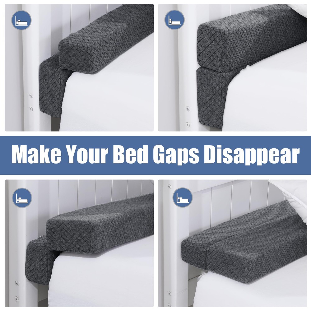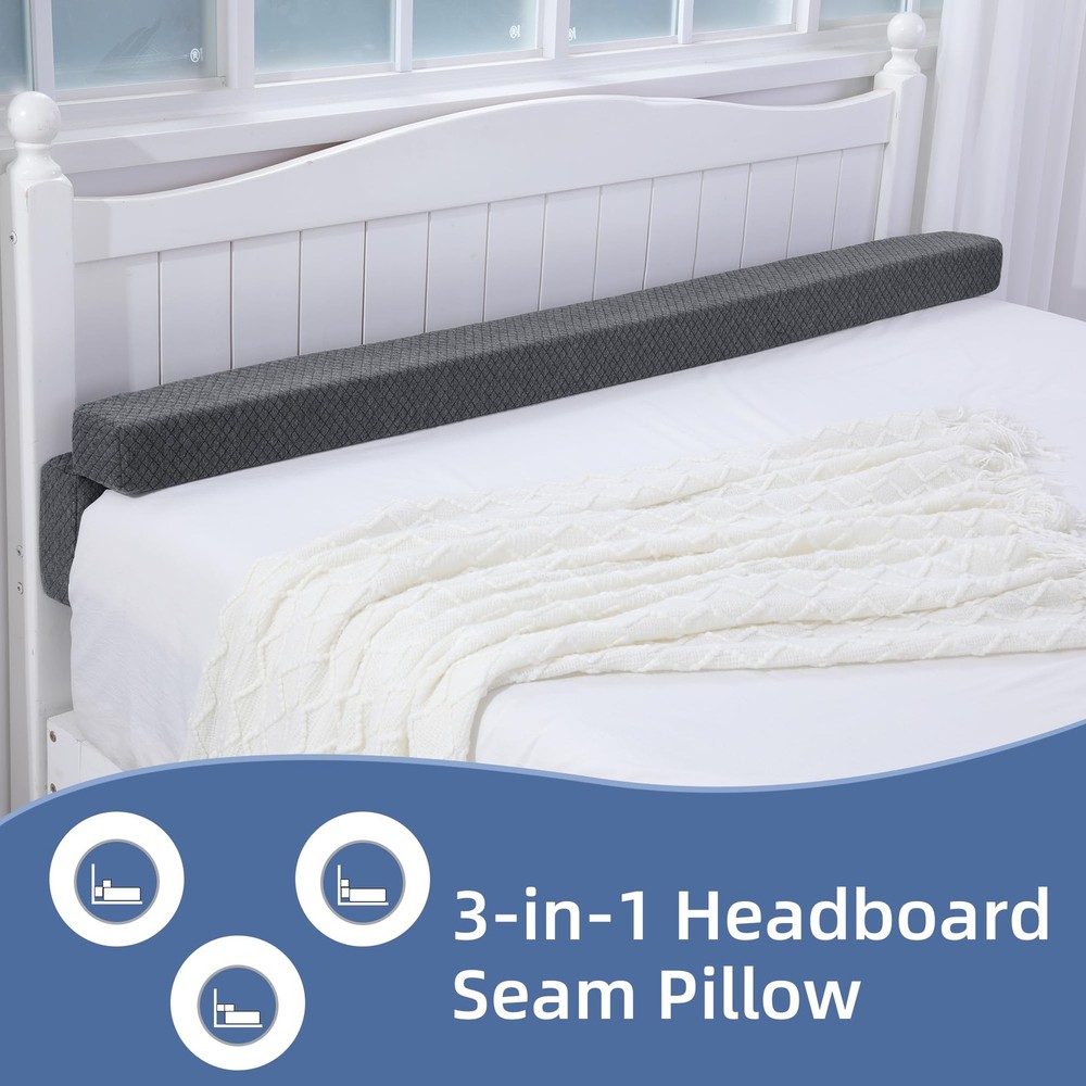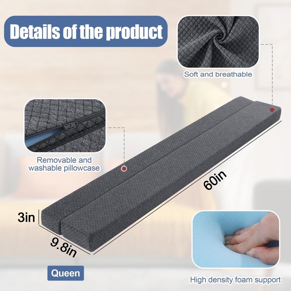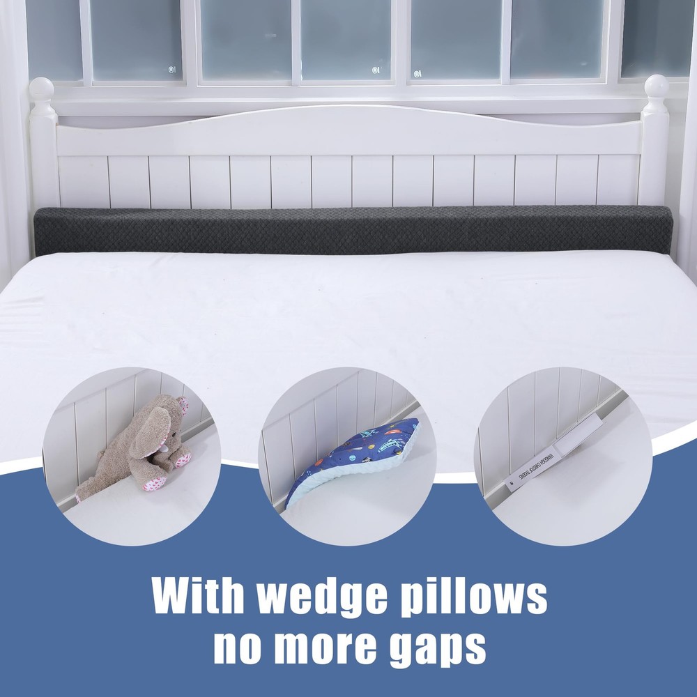【Close Seams】: Bed seam filler fills the gap between the headboard and mattress (0-6 inches), preventing pipes from slipping often, avoiding remotes, eyes, and children's toys from falling out, and reducing the hassle of packing up things every day. 【Upper and Lower Layer Design】:Double bed wedge pillows have upper and lower 2 layers combined on both sides, which can be placed flat, folded. l-shaped put or flat, adjust according to your needs. 【High Density Premium Foam】: High density foam provides superior durability and support. Filled pillows are strong enough to plug the seams and prevent pillows from slipping. Even after prolonged use, the filler pillow will not deform or lose support due to compression. 【Removable Pillowcase】:The bed pillow is made of skin-friendly and breathable air-layer fabric, odorless, soft and silky. Zipper design allows you to remove the pillowcase for replacement and cleaning. Machine washable, no pilling after long time use. 【48 Hours Fully Expanded】:Shipped in compression. The headboard pillow opens and rests for 48 hours to restore its shape without deformation. Also, it is soft enough to be used as a cozy headboard cushion on your bed.