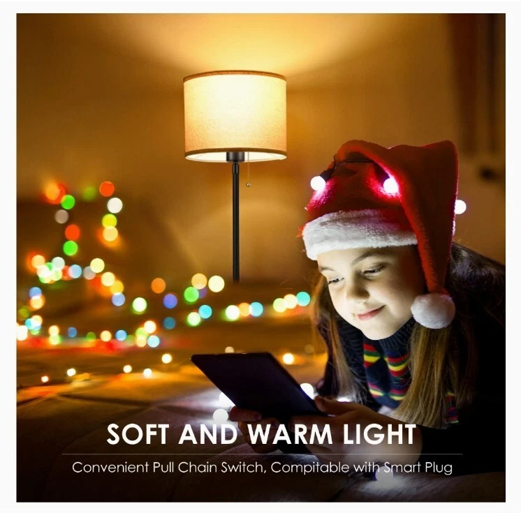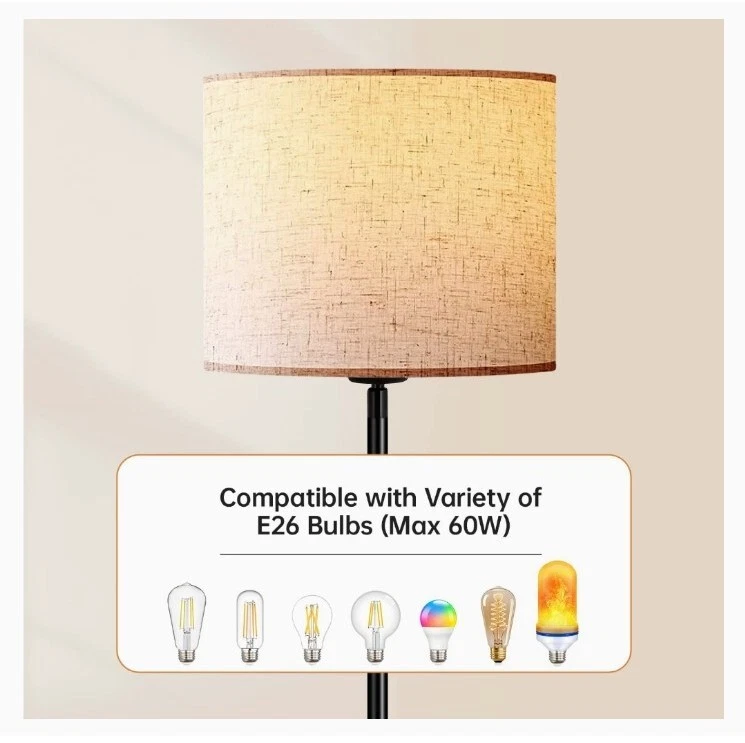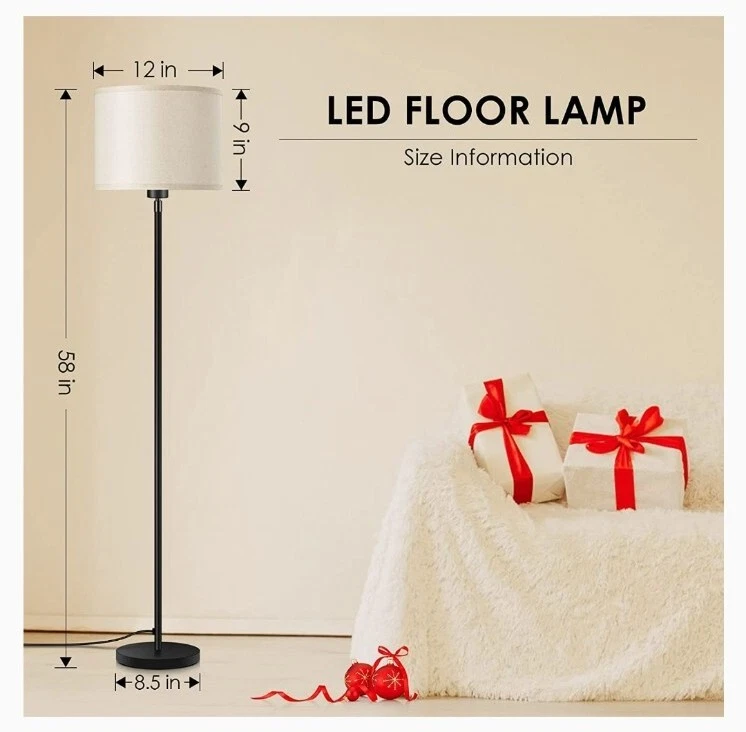 【Easy Assembly and premium quality】Made with a black metal body and a linen lampshade, the vintage floor lamp is simply designed and look good in any surroundings; With a 6lb sturdy base, this 59-inch (5ft) in tall lamp stands steadily and won't tip over easily, which is safe for kids; Without tools required, you just need to screw all the parts together to finish the assembly of this standing lamp; PS. The assembly video is attached to the product page 【Energy-Saving LED Bulb Included】The BoostArea modern floor lamp with linen shade features a 15W LED bulb, which will reduce the electricity bills and maintenance costs compared to incandescent bulbs, saving energy & money; With 3 dimming levels, the brightness of tall lamp could be adjusted from 30% to 70% to 100% as needed; The bright floor lamp could be both wide-area light emitters and soft, subtle mood lighting; Besides, the LED bulb is replaceable for creativeness, Note: E26 only, Max 60W 【Premium Lampshade】Made with premium water oil proof PVC lining and natural linen outer, the lampshade of this farmhouse floor lamp features both elegant-looking and durable, which is easy to clean and non-deformation; Emitting 1500LM and 2700K warm white, the corner floor lamp is bright enough to brighten your room but ease the stress on your eyes; 【Foot Switch and Compatible with smart devices】The LED floor lamp for the bedrooms is controlled by pedal switch, which is easy to turn on/off when you lay on the sofa or bed, and gives the dimmable lamp with shade a clean outlook; To keep path with smart lifestyle, you can plug this standing lamp in the smart device(not included), add it to your home appliances group, and easily controlled it by your phone; intelligent design help you enjoy easier life and home automation 【Sleek Design and Multi-scene Application】The elegant floor lamp is classic, super modern, and very vintage at the same time; It pairs well with any décor style; Whether you want to illuminate a dining table for late-night bottles of wine and card games, a sculpture next to the cozy chair, or just floor lamps for bedrooms, living room, office or classroom, it is a practical option; Besides, Thanks for the space-saving design, the LED lamp is also great in a corner