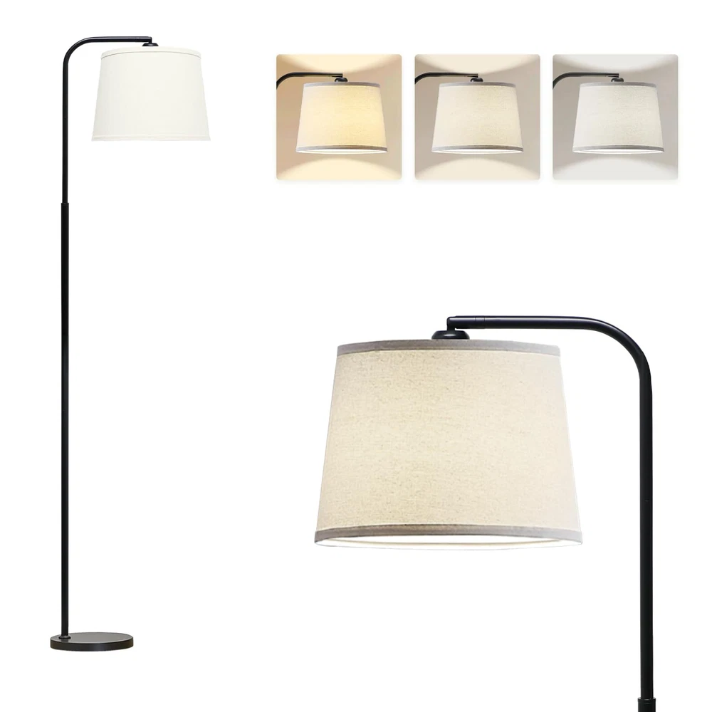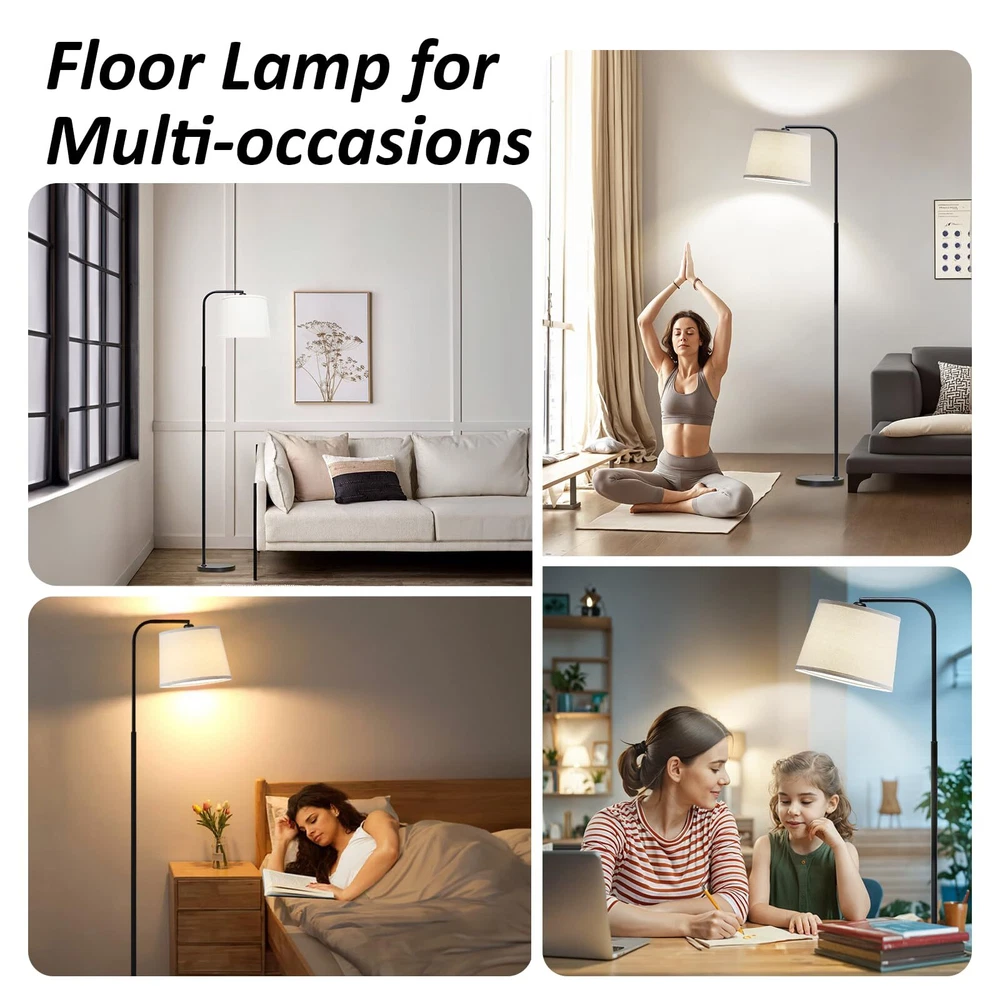 【3 Color Temperature】: This floor lamp uses 3CCT LED bulbs with 3 different color temperature settings: 3000k/4000k/6000k (warm light/natural light/daylight)). The softness of warm light brings you a warm feeling and the brightness of daylight white brings you a good reading environment and protects your eyes. You can easily change the color temperature to meet the needs of a variety of different scenes, creating a different atmosphere for the room. 【Adjustable Rotatable Lamp Head】: Our standing lamps are equipped with a rotatable lamp head, which can be rotated horizontally 350º and vertically 90º to direct light to where you need it. Whether you're reading, working, or simply brightening up the room, you can twist the shade to any angle you like and easily position the light to create the perfect ambiance. 【Energy-saving LED Bulb Included】: Living room lamps are equipped with an E26 base bulb with adjustable color temperature at 3 levels, and the bulb life is up to 25,000 hours, which not only meets the personalized lighting needs, but also saves energy and extends the life of the bulb, achieving the purpose of energy saving and environmental protection. 【Convenient Foot Switch】: This tall lamp has a built-in foot switch that is easy to turn on/off, eliminating the trouble of bending over to turn off the light. Free your hands, is the suitable lighting choice when reading, studying or working. With a cord length of 5.9 feet, it can be easily moved to where it needs to be used without taking up too much space. 【Sturdy Safe Base 】: The lamp is durable and made of sturdy metal frame and heavy base that is not easy to tilt, bend and fall over. Floor lamps for living room has great stability and is constructed to prevent children or pets from shaking and accidental tipping. Its simple and elegant design makes it easy to place in any room of your home.