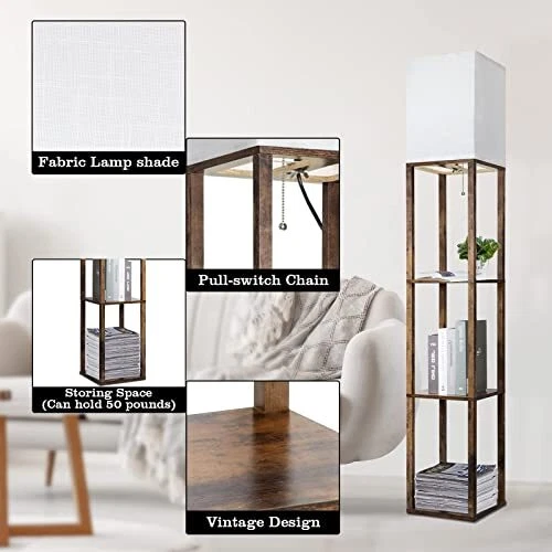 30 Days Return Policy Fast Delivery Trusted seller Floor Lamp with Shelves, Modern Shelf Lamp for Display Storage, 3 Color Temperature Wood Narrow Standing Corner Lamp with 8W Bulb for Living Room Decor, Bedroom, Office, Home Decor(Brown) Product Description ??【Triple Display Shelves Lamp】: 63inch high shelf floor lamp with 3 brown tiers provides a display and storage space for your valued family photo, plant, magazines and other sundries,which loads up to 50 pounds max. It's convenient and practical in your bedroom, guest room, or office. ??【3 Color Temperature Floor Lamp】: You can control the brightness of your floor lamp for bedroom with the ability to adjust color temperature(2700K, 4000K, 5000K ) by pulling the chain. To adjust your favorite atmosp of your space. ??【Smart Floor Lamps Design】: This floor lamp with shelves is equipped with an E26 base compatible with various bulbs. A 8W A19 LED bulb included.CRI 80+ of the bulb can show the color of the object more realistically. When you adjust the standing floor lamp to the brightness, the last mode will be saved you set, which is convenient for your life. ??【Premium Fabric lampshade】This floor lamp for living room is designed with off-white cloth lampshade.The simple and stylish design complements the medieval or modern decoration style, which creates a elegant and comfortable atmosp to your study, den, dorm room, foyer. ??【Easy to Assemble】 The modern floor lamp is easy to assemble within 10 minutes, no tools needed.Easy to install and powerful in functionality, so it can be used as a corner lamp to decorate your living room or as a nightstand with lamp to bring you life convenience. Shipping Returns Payment Shipping Shipping is FREE to all addresses other than APO/PO boxes in the lower 48 states. All our stock ships from US-based warehouses. Shipped via USPS or UPS (depending on location and package weight) Unless stated otherwise, all orders will ship within 24-72 hours of your payment being processed. Check our feedback to see the great reviews of FAST shipping we offer. Returns As our valued customer, we will do our best to make sure the product you receive arrives to you on time and as expected. If you are not satisfied with your purchase, please contact us within 30 days of receiving your order to process a return. Payment We currently accept payment via eBay managed payments only. Once payment is cleared, we will dispatch your shipment within 1-3 business days. Please refer to the "Shipping" tab for more information regarding shipping speed to your destination.