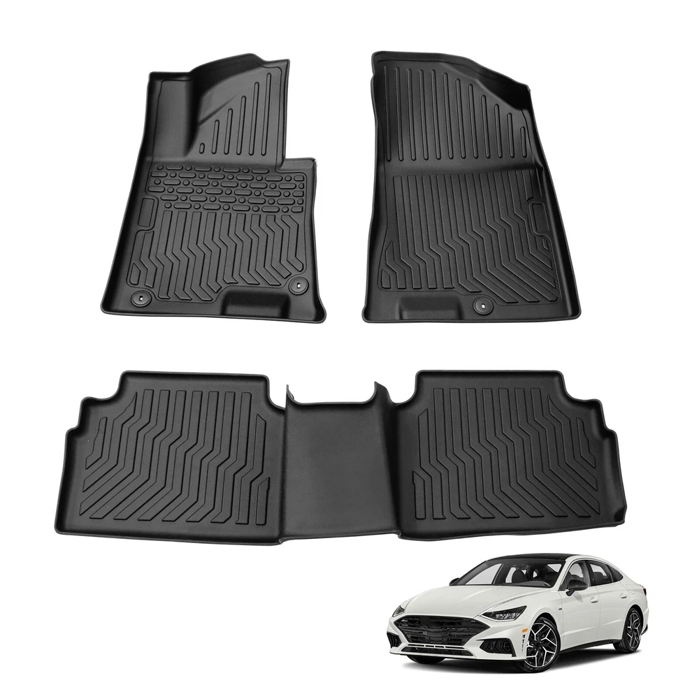 Specification Type: Floor Mats Set Material: Rubber, TPE Color: BLACK Placement on Vehicle: Front, Left, Right, Second Row Surface Finish: Rubber Unit: 3pcs Notice: Only Fits FWD Models Package Dimensions (LengthxWidthxHeight:inch): 33.07*23.62*7.87 Package Weight (LB): 11.13 Fitment 2021-2023 Kia K5 2020-2023 Hyundai Sonata Features & Benefits 1. Precise 3D Laser Measurement: Our floor mats are designed with a precise 3D laser measurement of the vehicle interior surface, ensuring a perfect fit to protect your car from dirt and damage. 2. Perfect Fit and Protection: These floor mats are custom fit for your vehicle, offering maximum coverage and protection for your car's interior. They effectively keep dirt, debris, and spills from damaging your vehicle's flooring. 3. Durable and Safe: Made from durable TPE material, these mats are designed to last. They do not have an irritating smell and are safe as they do not emit any toxic substances. 4. All-Weather Protection: Our floor mats provide all-weather protection to your car's interior. They are designed with unique channels and raised edges to effectively trap liquid, snow, sand, and more, ensuring no slipping and keeping your car clean and tidy. 5. Easy to Clean: These floor mats are easy to clean and maintain. They help keep your car and shoes clean, making them an excellent addition to any vehicle. On Nov 22, 2024 at 00:30:00 PST, seller added the following information: On Nov 22, 2024 at 01:54:15 PST, seller added the following information: