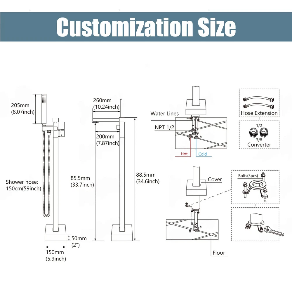 Store category Sign Up Now ! You may also like Product Description Bullet Points: Matte Black Finish: Secure your freestanding bathtub faucet with a solid brass tripod base and expansion screws to prevent wobbling. Its rust-proof and durable matte black surface is resistant against fingerprints, water stains, and easy to clean for long-lasting use. Enhance Your Spa Experience: Upgrade your bathroom with our Freestanding Bathtub Faucet and enjoy the perfect blend of a stylish, modern design. Featuring smooth lines and curves, this faucet features a simple and elegant style that's suitable for any decoration style, giving your bathroom a luxurious feel that's sure to impress. Single-Handle Design: Revel in the luxury of a spa-like experience with our freestanding faucet, featuring a diverter knob that seamlessly transitions from a soothing bath stream to a dynamic handheld showerhead; its single-handle design allows for precise temperature and flow control. Simplified Upkeep: Our Freestanding Bathtub Faucet provides a high-pressure shower head and hose for swift, easy rinsing. Perfect for tub or post-shower rinses, the ultra-flexible hose allows convenient mobility to quickly rinse away substances on skin surfaces. Efficient Setup: Simplify your bathroom upgrade with our freestanding bathtub faucet. Floor integration and complete installation hardware save you valuable time and effort, no professional assistance necessary. Description: This Free Standing Tub Faucet is a perfect addition to any bathroom. Designed to be resistant to fingerprints and water stains for easy cleaning, it is both convenient and time-saving. With easy control of water temperature and flow rate, and an easy reach and mobility feature, this faucet helps make your bath time experience fuss-free. Specification: Color: black Material: brass+stainless steel Finish Type: Matte Black Finish Product List: 1*main faucet body 1*straight tube 1*hand shower 1*shower hose 2*water supply hose 1*cover 1*installation accessories 1*instruction manual Notes: 1. Due to the different monitor and light effects, the actual color of the item might be slightly different from the color which is showed in the pictures. 2. Please forgive a slight measuring deviation due to manual measurement. Payment Delivery details Terms of sales About us Feedback & DSRs Payment Before you palce an order, please kindly make sure that you have a paypal account. We accept PAYPAL payment only. Payment should be completed within 2 days after auction closed, or unpaid dispute will be filed for an closing auction. An unpaid case will be filled after 4 days. Delivery details We ship to your eBay address. Each package will be shipped to US by UPS Regular Parcel with tracking number. Please check your shipping address carefully before checkout, it can't be changed if order completed. All items will be shipped within 1-2 business day upon receipt of payment.Orders placed on weekend will be shipped within 3 days. If you do not receive your item in 7-10 business days.please contact us immediately for further assistance. We will be responsible for any damages or losses incurred in the shipping process. About us We maintain high standards of excellence FIVE STAR and strive for 100% customer satisfaction! Positive Feedback is very important to us. We hope that you contact us immediately Before you give us neutral or negative feedback, so that we can satisfactorily address your concerns. We promise to offer the lowest price and high quality produce. Our working time: From Monday to Friday(9:30 am to 18:00pm), we don't working on holidays ,hope you can understand and know that , thank you. Please always talk to us via ebay Message. We appreciate your business and look forward to growing our e-Bay sales with satisfied customers. Feedback Contact us If you have any questions, please feel free to contact with us by ebay Message during our business hours ( 9:30a.m. to 5:30 p.m.), or email us through eBay, we will try our best to help you to resolve it. For any presale or after-sale questions,please do feel free to email us! Due to the time difference, each email will be replied within 1 working day,and weekend will be delayed a bit. Feedback