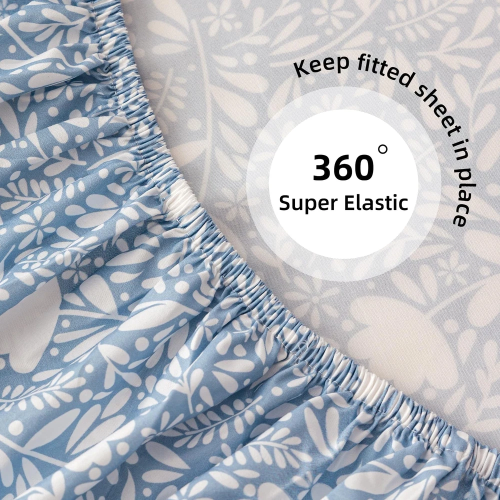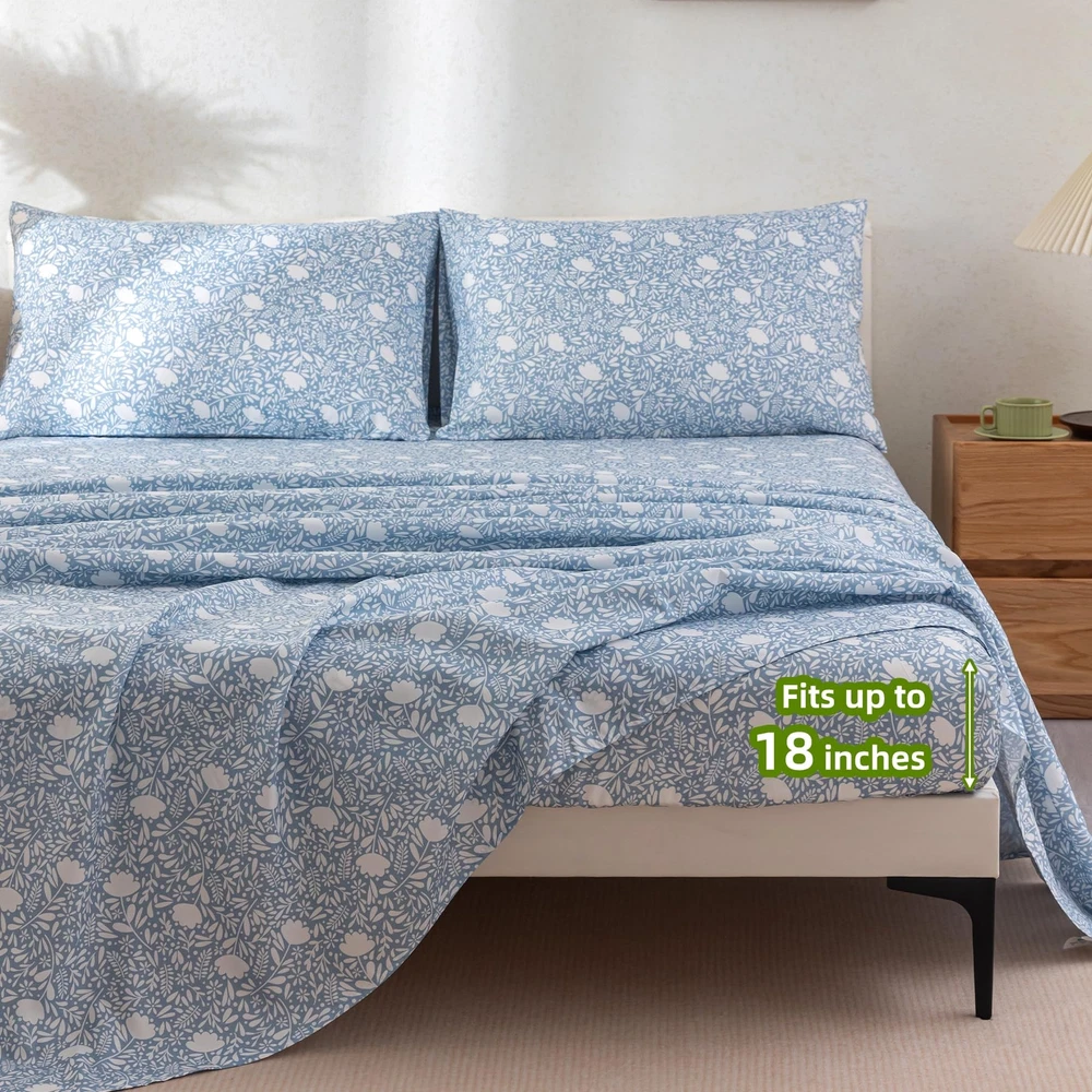 PREMIUM FABRIC: queen size bed sheets set is made of high-density 100% microfiber. The queen sheet set is printed with beautiful floral patterns, allowing you to say goodbye to boring solid colors and bring elegance to your bedroom. When bed sheets meet flowers, brings you your own romance. SIZE DIMENSIONS: 4 pieces queen bed sheet set includes 1 flat sheet (90"x102"),1 fitted sheet (60"x80"x18") and 2 pillowcases (20"x30"). High-quality printing technology and product enhanced craftsmanship details, the floral queen sheets will not pill or fade. Just one set can bring you a luxurious sleeping experience. DEEP POCKET: The queen sheets deep pocket fits 18" deep mattresses. This fitted sheet is designed with a reinforced, stretchable elastic band all the way around the edge. This design helps the fitted sheet fit perfectly on your mattress, preventing it from sliding off the mattress and moving around while you sleep. SOFT & BREATHABLE: The finest quality microfiber yarn is hydro-brushed and pre-washed for an unbelievable soft feel for queen size sheet set. Comfortable and breathable material keeps you cool in the summer and warm in the winter. The sheet set queen size can be used in all seasons. When you lie down, it's like sleeping in the arms of flowers. EASY CARE: Please wash the queen size sheets deep pocket in cold water, gentle cycle, then tumble dry on low heat when needed. Our microfiber bedding are OEKO-TEX Certified. It is a worldwide independent testing and certification system that can ensure our bed sheet set follows strict manufacturing guidelines. takes every product seriously.
