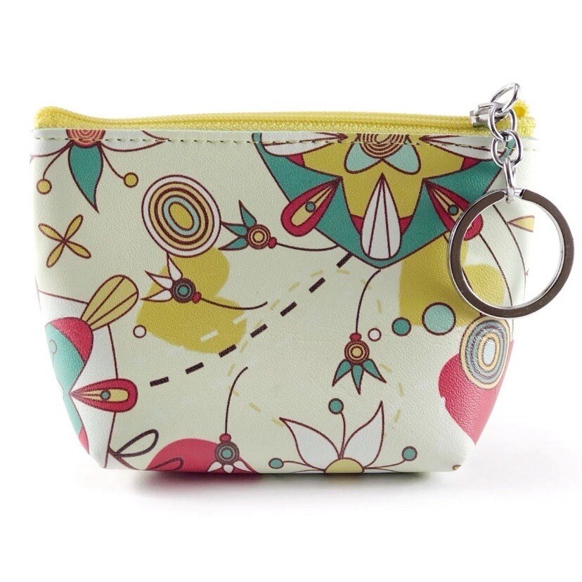 This mini coin purse adorned with a beautiful floral pattern is the perfect accessory for women on the go. The purse features a zip closure and a keychain ring, making it easy to keep your coins and small items organized. Features/Style: - Coin Pouch - Floral Print - Zip Closure Color: Yellow/Multi Measurements (approximately): Length- 3,5", Height- 3", Width- 2" Condition: NEW, Smoke Free Home