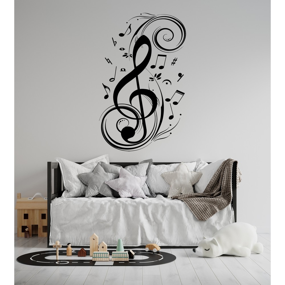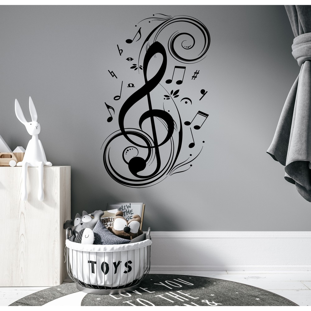 Perfect for music lovers, music rooms, and recording studios, this wall decal will add style and charm to your space. The decal is crafted from high quality vinyl with safe, high quality inks. The wall decal can will stick to your flat surface wall, making it suitable for your living room, bedroom, or any other living space.Features: High Quality wall decal art Made from high quality vinyl material High quality inks, safe for you and your children Decals can be used for interior and exterior purposes The sticker's color will stay vibrant and beautiful for many years of enjoyment Decals are easy to remove but they are not reusableApplication Instructions: Must be applied on a flat, dry, clean, smooth surface. Can be applied on walls, furniture, glass, floor, wood or any other smooth Free Shipping Over $49.99* Details Treble Clef Floral Pattern Music Note Wall Decal. Product Description: Perfect for music lovers, music rooms, and recording studios, this wall decal will add style and charm to your space. The decal is crafted from high quality vinyl with safe, high quality inks. The wall decal can will stick to your flat surface wall, making it suitable for your living room, bedroom, or any other living space. Features: High Quality wall decal art Made from high quality vinyl material High quality inks, safe for you and your children Decals can be used for interior and exterior purposes The sticker's color will stay vibrant and beautiful for many years of enjoyment Decals are easy to remove but they are not reusable Application Instructions: Must be applied on a flat, dry, clean, smooth surface. Can be applied on walls, furniture, glass, floor, wood or any other smooth and clean surface. Can not be applied on concrete or textured surface. If you want to apply sticker on floor, lamination is required Are not recommended for application over paints advertised as being stain-resistant or washable (like acrylic, latex etc).These paints are crafted to prevent things from sticking including vinyl decals. If your wall has been recently painted, wait at least 4 - 8 weeks before applying your decal. Step by step instructions are included with your purchase. For large sizes two people are recommended for installation of the wall decal. Note The color of the printed motifs may differ slightly from the color of the screen, depending on screen configuration. Colors look different on different monitors, please purchase a sample if you do really concern the colors and quality. Picture may not reflect true size. It can be bigger for showing purpose. It helps you to watch all details.