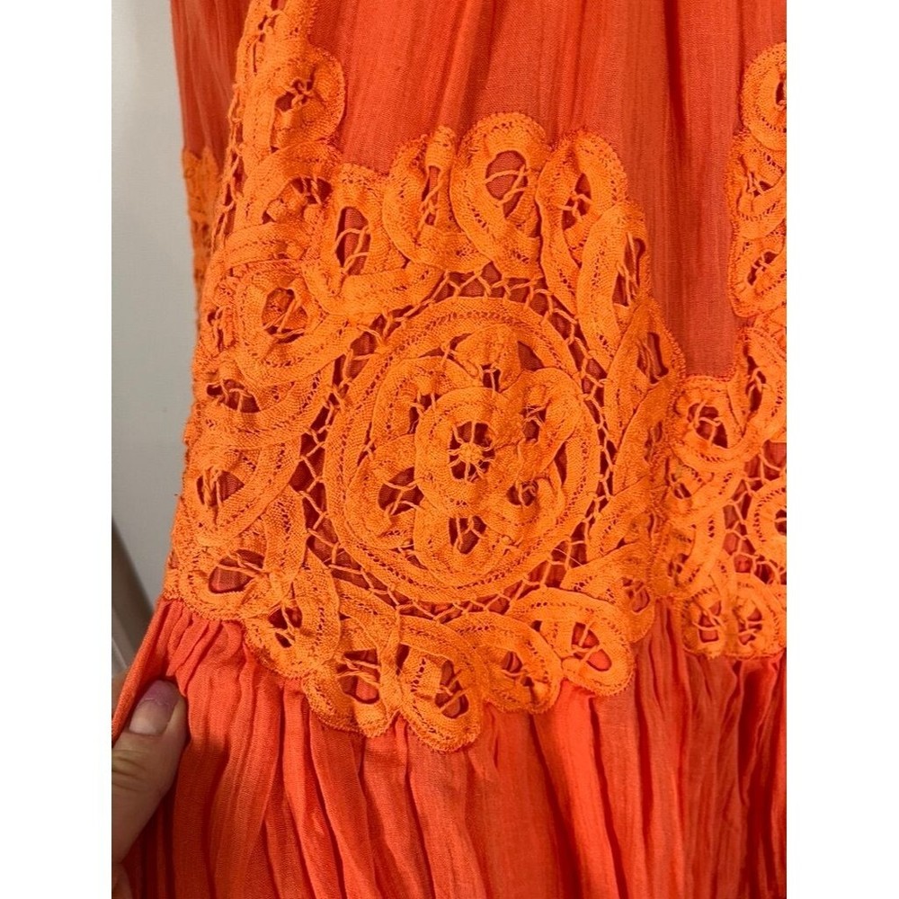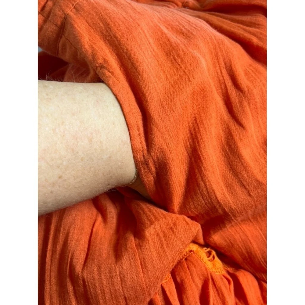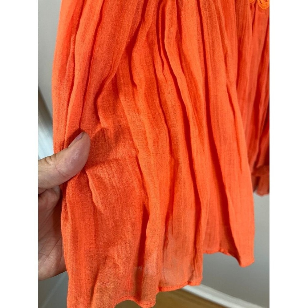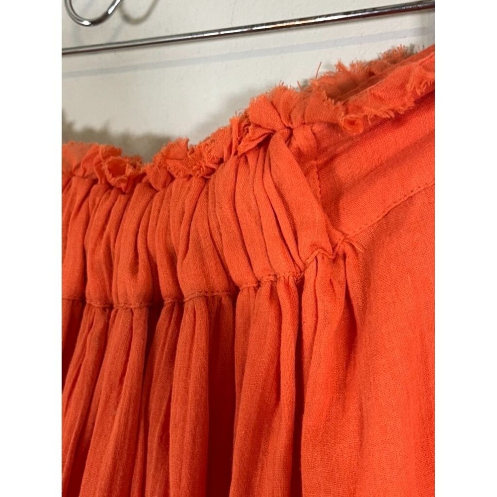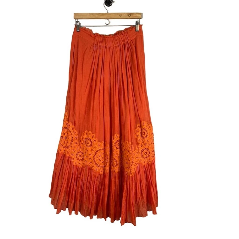 Absolutely love this skirt! The vibrant orange floral embroidery is stunning, and the pleated design gives it such a fun, flowy boho vibe. It’s in amazing pre-owned condition—just a tiny mark that’s barely noticeable. Fits true to size, super comfortable, and perfect for festivals or casual outings. The fabric is lightweight but feels high-quality, and the high waist is flattering. Fast shipping too—got it in no time! Highly recommend for anyone wanting a bold, statement piece.