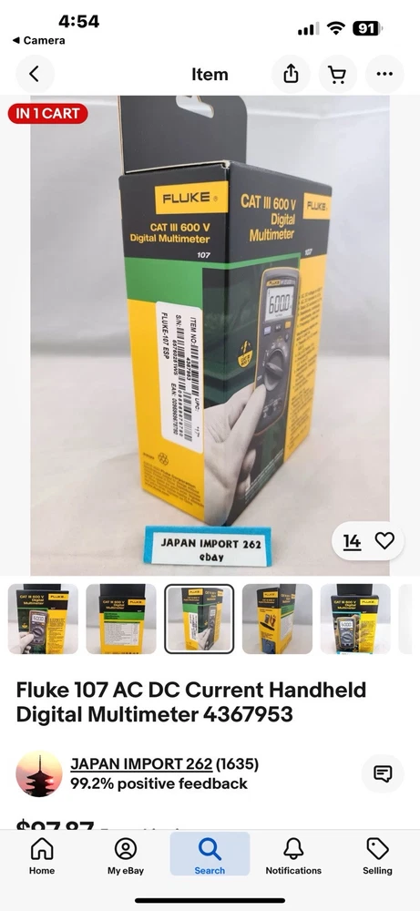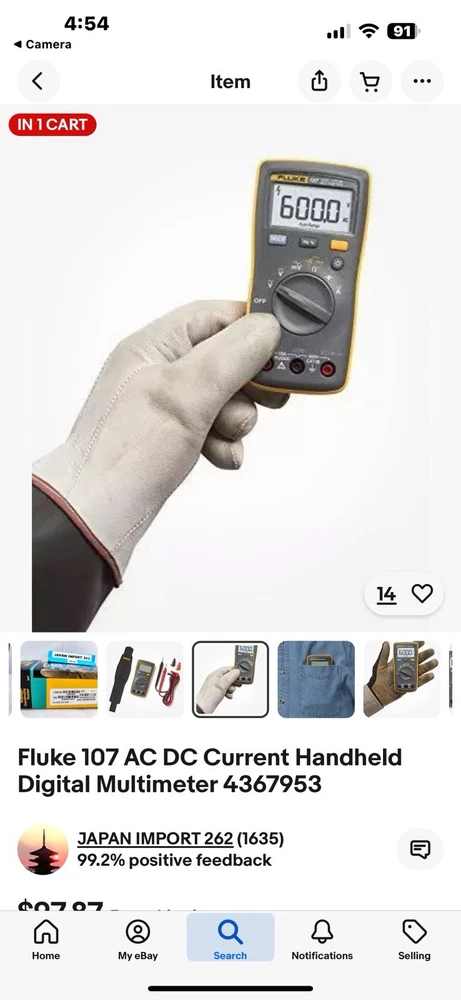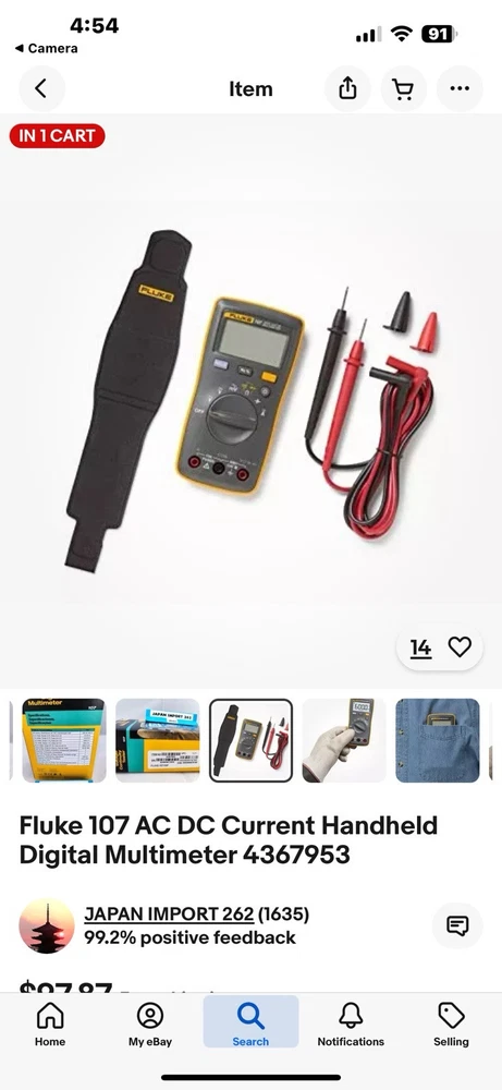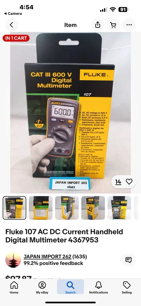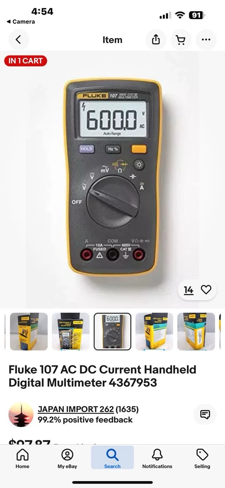 The Fluke 107 HVAC True RMS Digital Multimeter is a handheld device designed for electrical measurements in Category III environments. It has the ability to measure both AC and DC currents with auto-ranging functionality for ease of use. The digital display provides accurate readouts for various testing and measurement functions, making it a reliable tool for professionals in the business and industrial sectors. With the Fluke brand reputation for quality, this multimeter is a versatile and efficient choice for electrical troubleshooting and maintenance tasks.