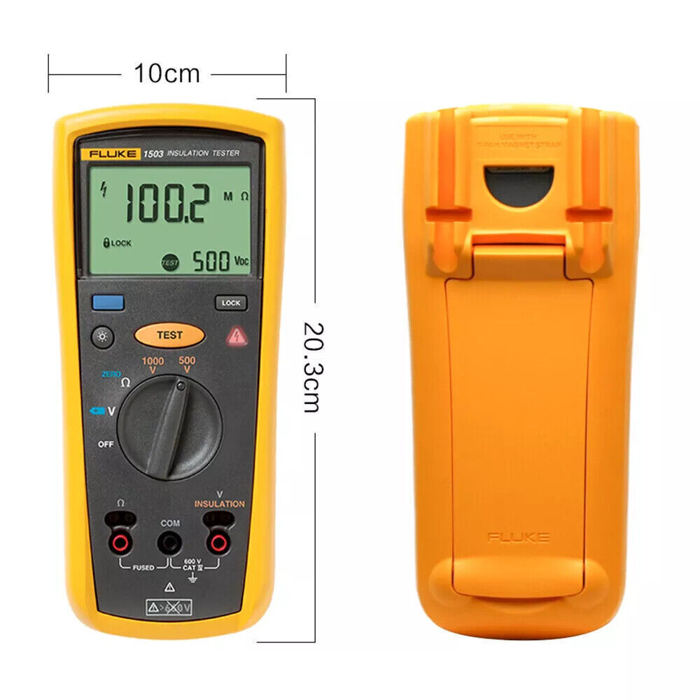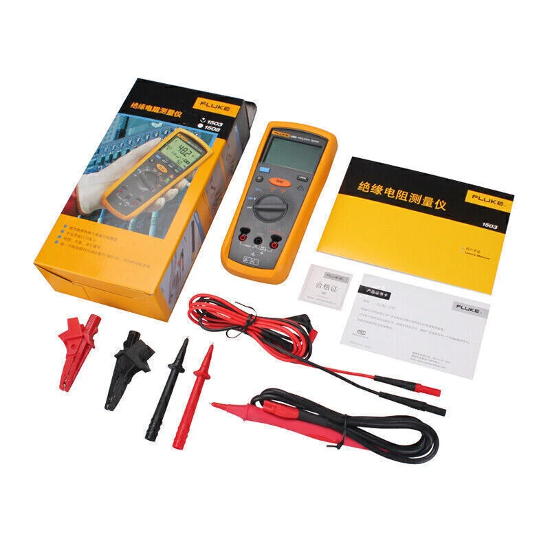 overview: The Fluke high-voltage digital megohmmeter is an insulation tester with preset and adjustable test voltages for measuring insulation resistance to 1TΩ (2TΩ for 10kV models) to indicate the condition of windings or cables in motors, switchgears, electrical installations, and other insulated equipment, and it also measures leakage current to 2 milliamperes (mA), capacitance to 20μF, and AC and DC voltage to 600V, signaling when a voltage greater than 30V is detected. In addition to the preset test voltages of 250V, 500V, 1,000V, 2,500V, 5,000V, plus 10,000V for the 10kV models, test voltages can be adjusted in 50V increments to 1,000V and 100V increments above 1,000V. Its PI/DAR (polarization index/dielectric absorption rate) function automatically calculates PI and DAR, which are measurements over time that give a truer indication of insulation condition than single-point measurements. The meter can perform timed tests up to 99 minutes, adjustable in 1-minute increments, and has storage for up to 99 test results. Stored results can be uploaded to a PC with the included FlukeView Forms Basic software. The software is compatible with Microsoft Windows 2000, XP, and Vista. For improved accuracy during high-resistance testing, the guard terminal eliminates interference from leakage current. The meter has an LCD that shows the reading numerically and in a bar graph. Megohmmeters are commonly used for electrical maintenance and testing in industries such as HVAC, transportation, manufacturing, mining, and utilities, among others. The meter is rated for category (CAT) IV installations to 600V, which covers equipment at the origin of the installation, such as electricity meters and primary over-current protection equipment, and CAT III installations to 1,000V, which covers equipment in fixed installations, such as switches in the fixed installation and some industrial equipment that is permanently connected to the fixed installation. The unit has a low-battery indicator that signals when the battery needs to be replaced and automatically turns off after 30 minutes of non-use. Specification s: Maximum insulation resistance measured1TΩ for Fluke 1550C; 2TΩ for Fluke 1555Test voltages250V, 500V, 1,000V, 2,500V, 5,000V; also 10,000V for Fluke 1555Maximum leakage current measured2mAMaximum capacitance measured20μFMaximum AC and DC voltage measured600VInstallation ratingCAT IV, 600V; CAT III, 1,000VStandards metEN safety standards 61010-1 and 61557; CE marking; CSA and TÜV certificationPowerRechargeable 12V lead-acid batteryWeight3.6kg/7.94 lb.Dimensions (H x W x D)*170 x 242 x 330mm/6.7 x 9.5 x 13 inches *H is height, the vertical distance from the lowest to highest point; W is width, the horizontal distance from left to right; D is depth, the horizontal distance from front to back . Megohmmeters, also called insulation testers, are electrical test meters that measure resistance to the flow of current in an electrical component or circuit and check the continuity of an electrical circuit to detect electrical problems such as degraded insulation and improper circuit connections in equipment, wiring, and power supplies. Resistance is an indicator of the overall condition of the device being tested. Megohmmeters have an internal power supply, such as a battery or a capacitor, which supplies a test voltage to a circuit or component that is turned off. Test leads are connected in a series to the tester and the circuit or device being tested. The meter calculates the difference in voltage between the leads and measures the resistance. Most megohmmeters have two terminals for test lead attachment. The two-terminal, or two-wire, measurement method includes the resistance of the circuit or device being tested and the resistance of the test leads, and generally provides sufficient accuracy for measuring large values of resistance in insulation testing applications. Fluke Corporation manufactures electrical testing tools and software for industrial and commercial applications. The company, founded in 1948, is headquartered in Everett, WA. Features: * 0.1 MΩ to 2000 GΩ insulation test * Insulation test voltage: 500 V and 1000 V, for a variety of applications * The remote test probe makes it easy to perform repeated tests and perform tests in inaccessible locations * Live circuit detection, if the detected voltage is greater than 30 V, the test ban to improve the protection of personnel * Capacitive voltage automatic discharge function and improve the protection of personnel * AC / DC voltage: 0.1 V to 600 V * 200 mA Continuity measurement * Resistance: 0.01 Ω to 20.00 KΩ * Auto off function to save battery power * CAT IV 600 V measurement level of security, improved protection of personnel * Included Accessories: Remote probe, test leads and probes, alligator clips * Install the optional Fluke TPAK magnetic suspension system so you can free up your hands for other work * 4 AA alkaline batteries (NEDA 15 A or IEC LR6), at least 1000 insulation tests can be (not include) Notice: The standard package don't include batteries.Because,the international air shipping forbid to ship liquid,powder and batteries,we can not put them in the package box.Hope you can understand buy them in your local store or supermarket.Thanks for your support! About Us Payment and Shipping: 1. we only accept PayPal payment. 2. We will ship your order within 5 days. Please make sure your shipping address and phone number are correct. Returns 1. If the item arrives with defects or errors, before you start the return process, please contact us via ebay message and we will provide you with a satisfactory solution. Communication is always the best way to solve problems. 2. If you do not receive your item on time, please contact us for further assistance. Feedback and Contact Us 1. we always try to provide every customer with the best service and the best quality products, but sometimes there may be accidents, if you are not sa