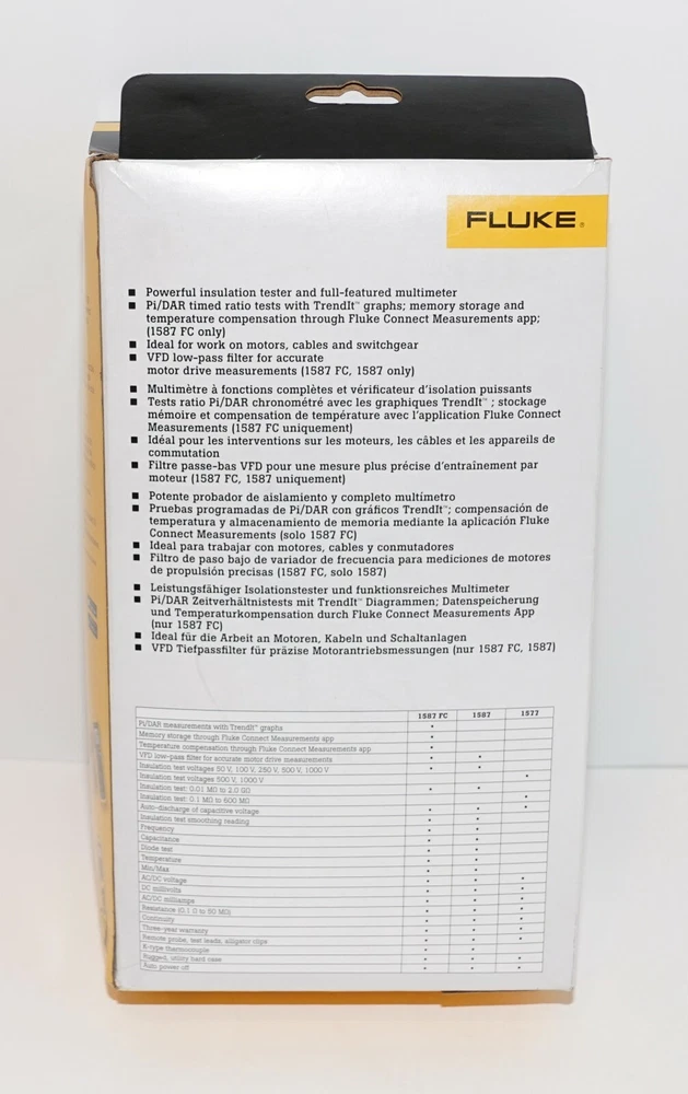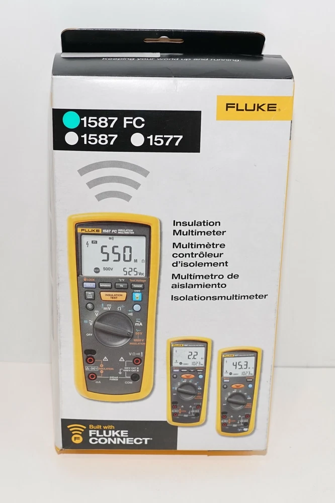 Never used COMES WITH LEADS AND CASE. The Fluke 1587 FC 2 in 1 Handheld Digital Insulation Multimeter is a versatile device designed for professional use. It features a CAT IV rating, auto-ranging capability, and various test/measurement functions including frequency, temperature, AC/DC voltage, capacitance, continuity, and more. With a maximum input voltage of 1000V, this multimeter also offers features like auto power off, a backlight display, and fused current terminals for added convenience.