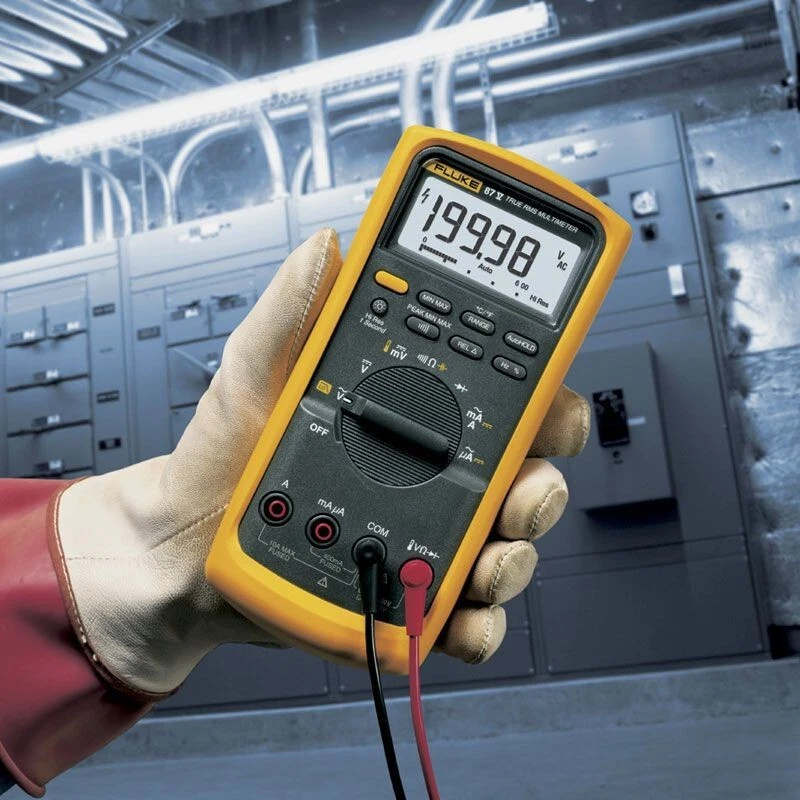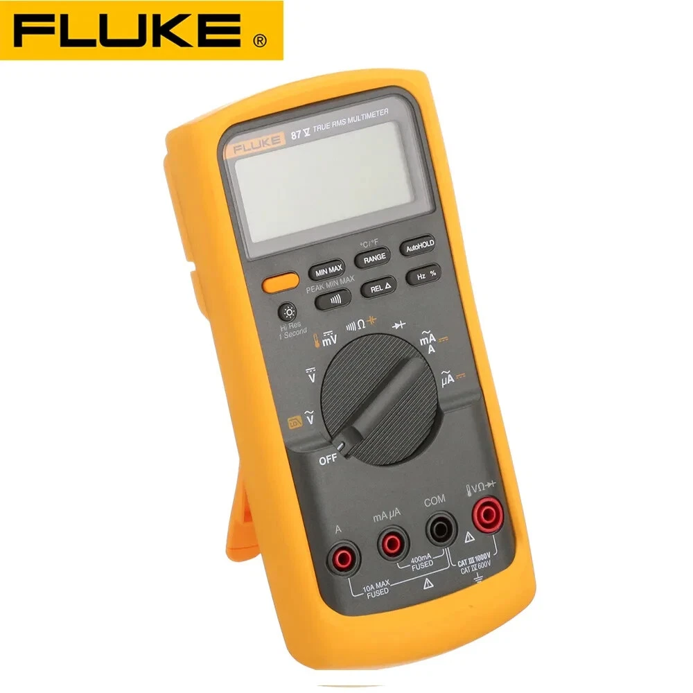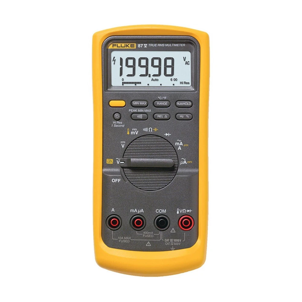 Uncover the versatility of the Fluke 87-5 industrial true RMS digital multimeter, an essential tool for professionals requiring precision and durability in their electrical measurements. With the capability to measure frequency, continuity/diode test, motor drive (VFD) measurements, duty cycle, microamps, and analog bar graph, this meter is designed to tackle a variety of tasks. Its robust features include a CAT III 1000 V / CAT IV 600 V rating, True RMS to ensure accurate readings, and the ability to measure up to 1000 V AC/DC and 10 A current. The Fluke 87-5 doesn't just offer functionality but also boasts a 400-hour battery life for extended use in the field. It can withstand drops up to 3 meters, adhering to the IP30 rating for dust and splash resistance. The backlit keypad is not included, maintaining a sleek design, while the digital display coupled with additional features like relative reference and 50 MΩ resistance provides a comprehensive solution for electrical and electronic measurements, from -200 °C to 1090 °C. What's in the box: Fluke 87V Industrial Multimeter TL75 Test Leads (TL175 Eur) AC175 Alligator Clips Holster with tilt-leg, test lead storage 80BK Temperature Probe 9V Battery (Installed) FEEDBACK: We work very hard to ensure that every sale is successful. If you are pleased with our service, we appreciate you rate the transaction with 5 stars. IMPORTANT: All products commercialized are originals, brand new and dispatched from Fluke. QUESTIONS: Feel free to contact us aboutr any item listed or with any questions you may have. We hope you shop with us. FOLLOW OUR STORE: Please follow our store if you enjoy our listings, for new great items, promotions and special discounts.
