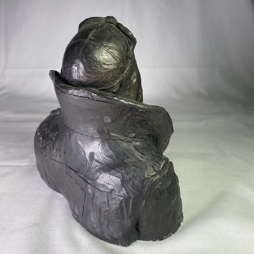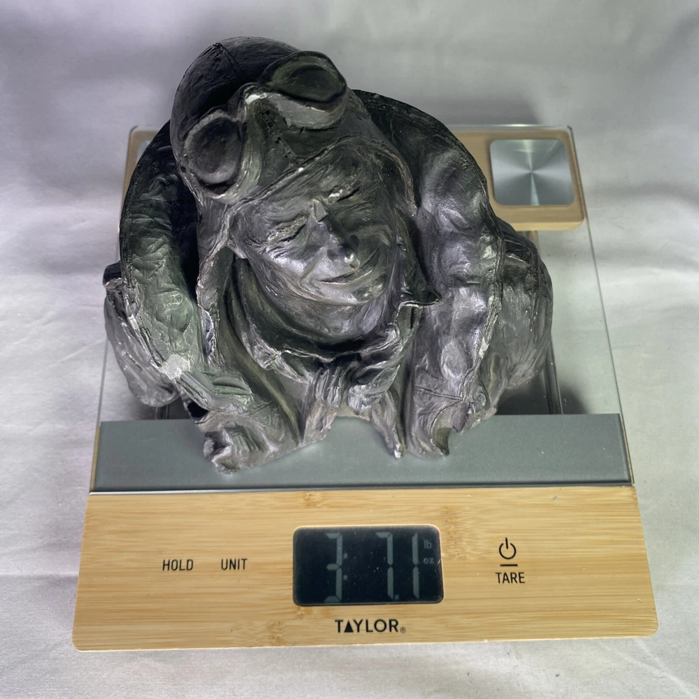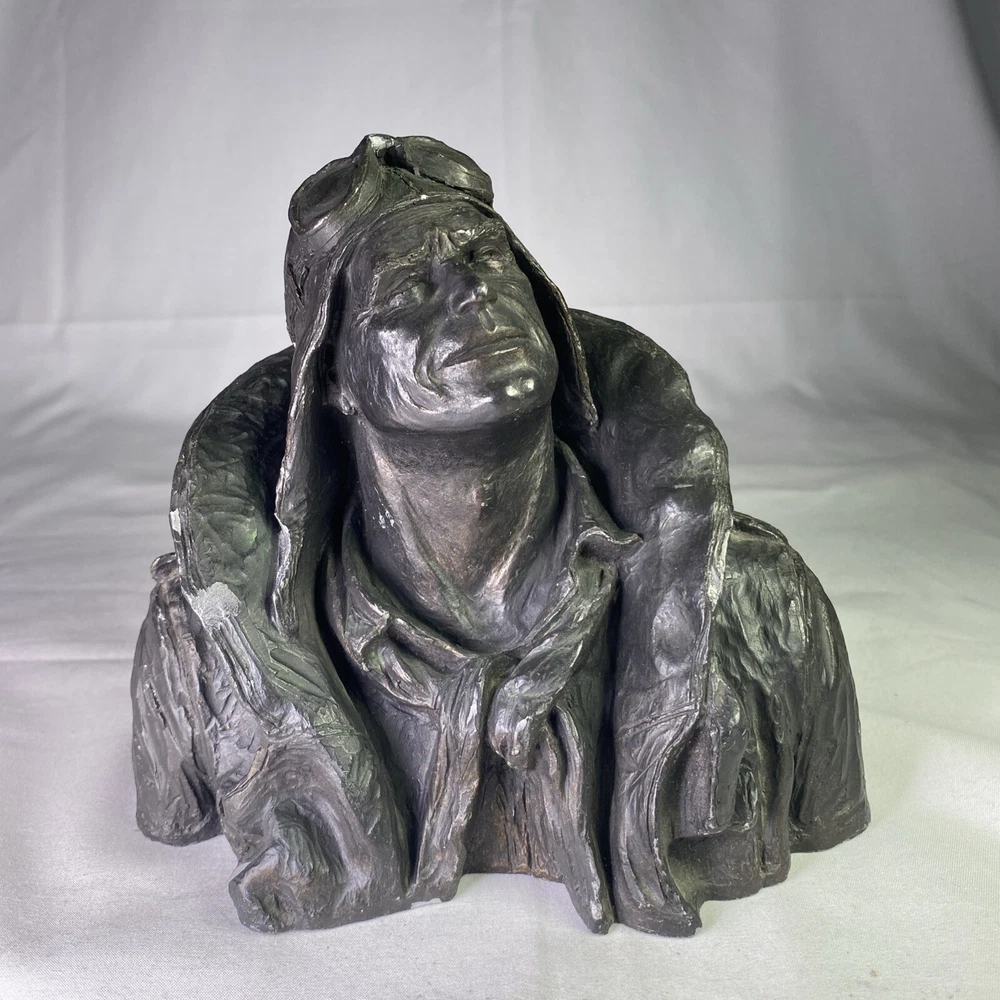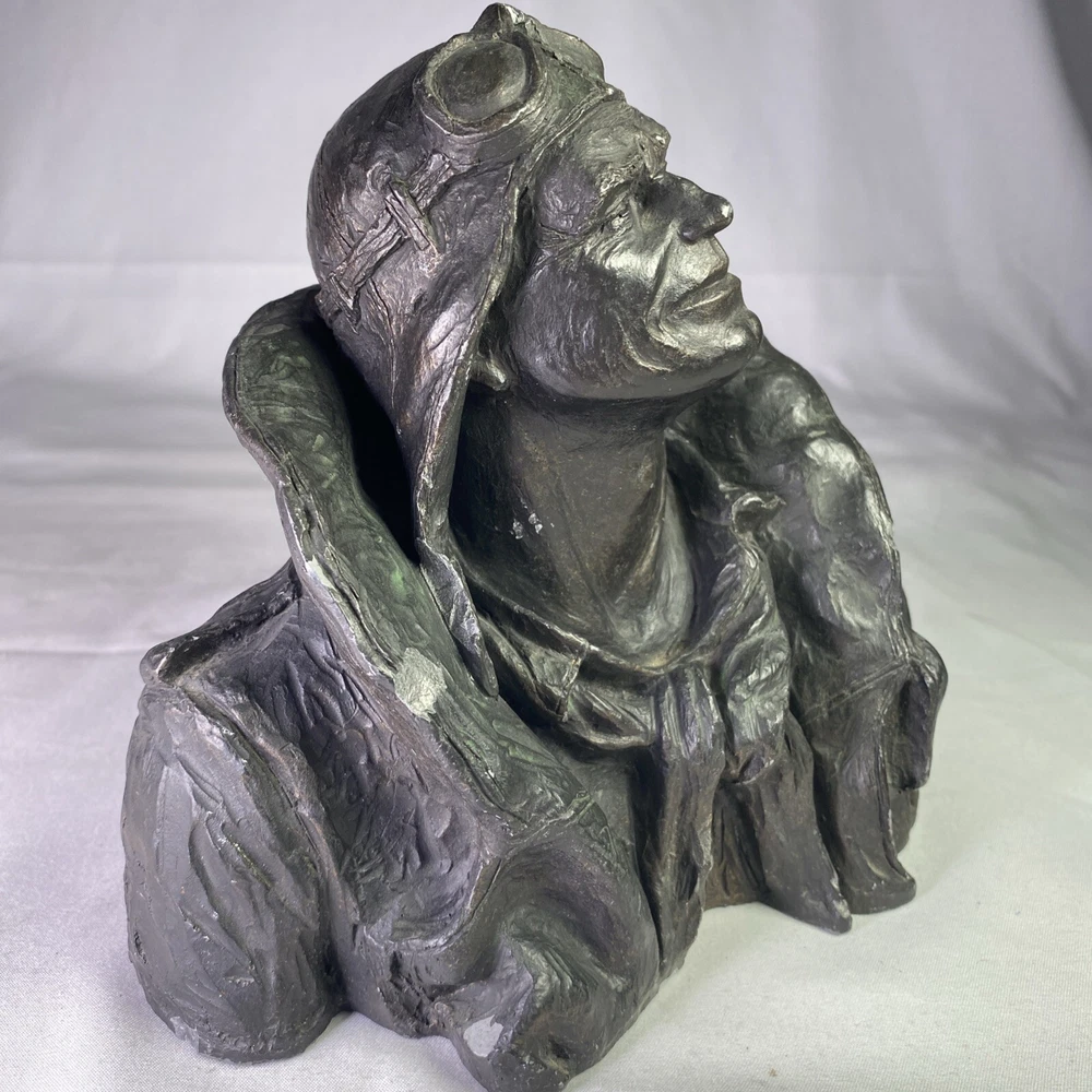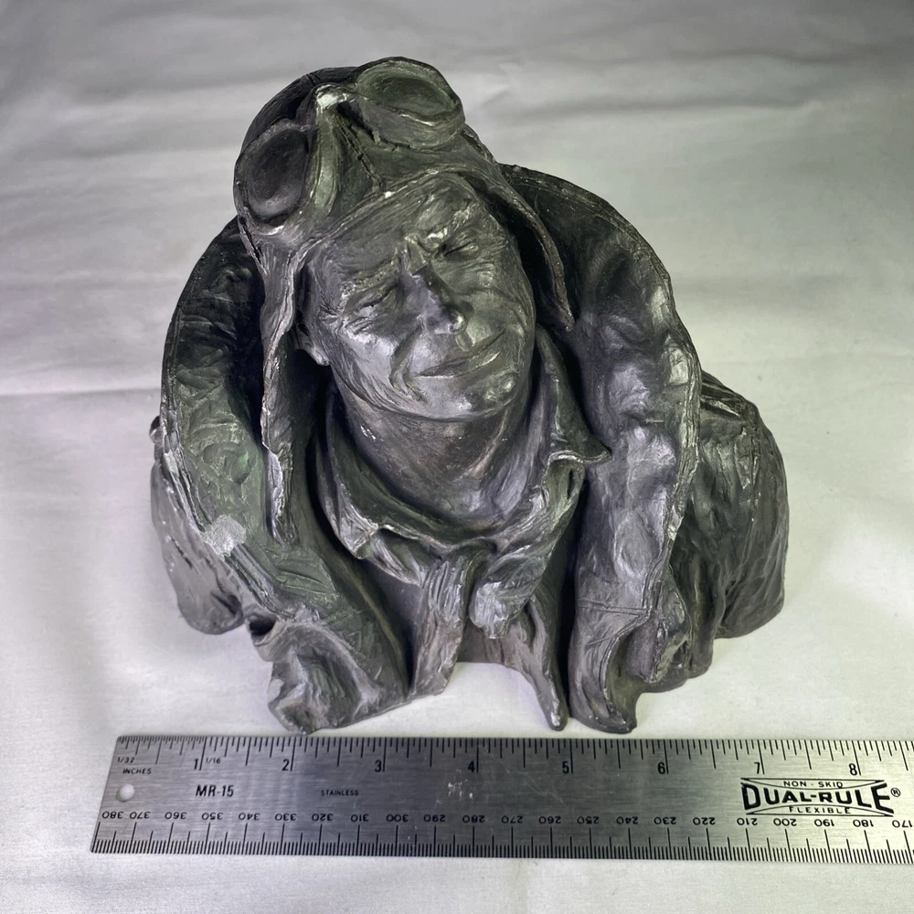 Theme:AviationCountry/Region of Manufacture:United Statesgtin13:Does not applyStyle:Pop Art, Realism, SteampunkCulture:MilitaryTime Period Produced:1970-1979Item Height:6 inFormat:BustItem Width:8”Year of Production:1973Size:MediumTitle:Flying LeatherSubject:FiguresOriginal/Licensed Reproduction:OriginalSigned:YesArtist:Michael GarmanType:SculpturePeriod:Contemporary (1970 - 2020)Material:ResinUPC:Does not apply