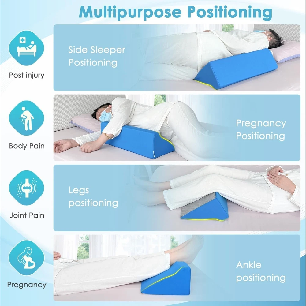 Foam Wedge Pillow: Elevate Comfort for Bedridden Patients & Pregnancy Support ‹ › ‹ › ‹ › ‹ › ‹ › ‹ › ‹ › ‹ › Foam Wedge Pillow Elevate Comfort for Bedridden Patients & Pregnancy Support Features: Ergonomic Design: Designed with an R shape to comfortably fit the human body's somatotype theory, offering optimal support. Gradual Slope: Provides BACK and LEG support which enhances blood circulation, alleviates respiratory issues, and reduces pressure on the spinal cord. Multifunctional Therapeutic Use: Assists bedridden patients with posture changes, leg lifting, and promotes better blood circulation; also supports pregnant women for a restful night's sleep. Right Angle Support: Ideal for alleviating neck and back strain, beneficial for conditions like acid reflux, allergies, and impaired breathing while lying down. Durable Foam Construction: Provides lasting support without separation or deformation, excellent for post-injury or post-surgical recovery, as well as side sleepers. Eco-Friendly Cover: Made from high-quality pure cotton, removable and washable for easy maintenance. Who Can Benefit? Elderly individuals and bedridden patients. Individuals with lower limb fractures or post-surgery recovery. Pregnant women seeking additional support for their bellies. Anyone in need of lumbar, back, leg, or belly support while seated or lying down. Why Choose Our Foam Wedge Pillow? Experience unparalleled comfort and support with our Foam Wedge Pillow. Its thoughtfully designed R shape and gradual incline provide effective relief from pain and discomfort, proving essential for those who are bedridden or pregnant. Ensure a restful sleep and improved wellbeing with this multifunctional therapeutic pillow. Don’t compromise on comfort – elevate your support with our Foam Wedge Pillow today! Shipping Free & Fast Shipping - We offer free shipping to most of the USA with a normal delivery time of 3-7 days. However, due to the current situation, additional delivery time (up to 3 weeks) may be required for some items. Alternative Carriers - We may use alternative carriers (e.g. USPS, FedEx, UPS, etc.) to ensure your package arrives safely and on time. Due to the use of multiple carriers, we are unable to provide a tracking number automatically. Handling Time - Orders are processed and shipped within 1-2 business days of receiving cleared payment. Shipping Restrictions - Shipping to Alaska, Hawaii, Puerto Rico, Guam, and other US territories may incur shipping charges or delivery restrictions. Please contact us before ordering, or your order can be refunded/cancelled. State Restrictions - There may be restrictions based on your state of purchase. For example, certain items may not be shipped to California due to state regulations. Contact for Tracking Updates - If you require tracking updates or have any concerns about the delivery of your order, please feel free to contact us, and we will be happy to assist you. Return 30-Day Hassle-Free Returns - We want you to be completely satisfied with your purchase. If you are not, you can return the item within 30 days of receiving it for a full refund or exchange. Easy Return Process - To start a return, simply contact us and we will provide you with a prepaid return shipping label and detailed instructions. Restocking Fee - There are no restocking fees for returns. However, the buyer is responsible for return shipping costs if the return is not due to a seller's error. Refund Processing Time - Refunds will be processed within 5 business days of receiving the returned item in its condition. Payment We accept all major credit cards, PayPal, and Apple Pay for your convenience. Your payment information is secure and encrypted to ensure a safe and seamless transaction. Please complete your payment within 3 days of purchase to avoid any delays in shipping. Feedback Your feedback is extremely important to us. We strive to provide the best products and customer service possible. If you are satisfied with your purchase, please take a moment to leave us a positive review. If you have any concerns or issues with your order, please contact us before leaving negative feedback. We are committed to resolving any problems and ensuring your satisfaction. Contact Us If you have any questions or concerns, please feel free to out to our customer support team. You can contact us through the eBay messaging system. We are available Monday to Friday, 9:00 am to 5:00 pm EST, and we will do our best to respond to your inquiry within 24 hours. Buy it now and enjoy a pleasant shopping experience! Item Length: Wedge Pillow for Seniors Item Width: Wedge Pillow for Seniors Unit Quantity: 1.0 Material: Cotton,Polyester,Foam,Sponge Features: Orthopedic,Back Support,Leg Support,Pressure Relief,Removable Cover,Lightweight,Incline Design,Therapeutic,User-Friendly,Washable Care Instructions: Machine Wash,Hand Wash Only Room: Bedroom,Hospital,Home Care,Nursing Home Size: 19.68"l x 9.8"w x 5.9"h Type: Positioning Wedge Pillow Fill Material: Foam Color: Blue Shape: Wedge Pattern: Solid Style: Modern Closure Type: No Closure Thread Count: 201-400 GSM (Grams per Square Meter): 150 to 300