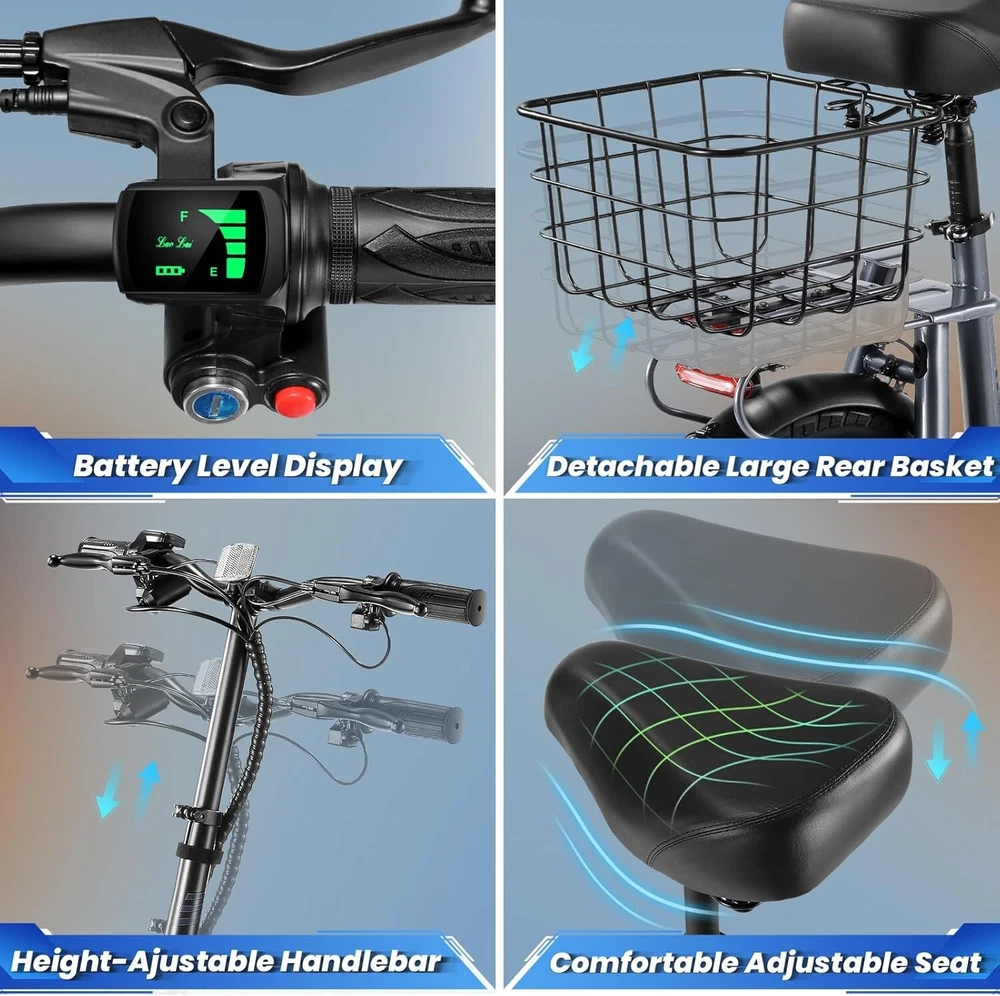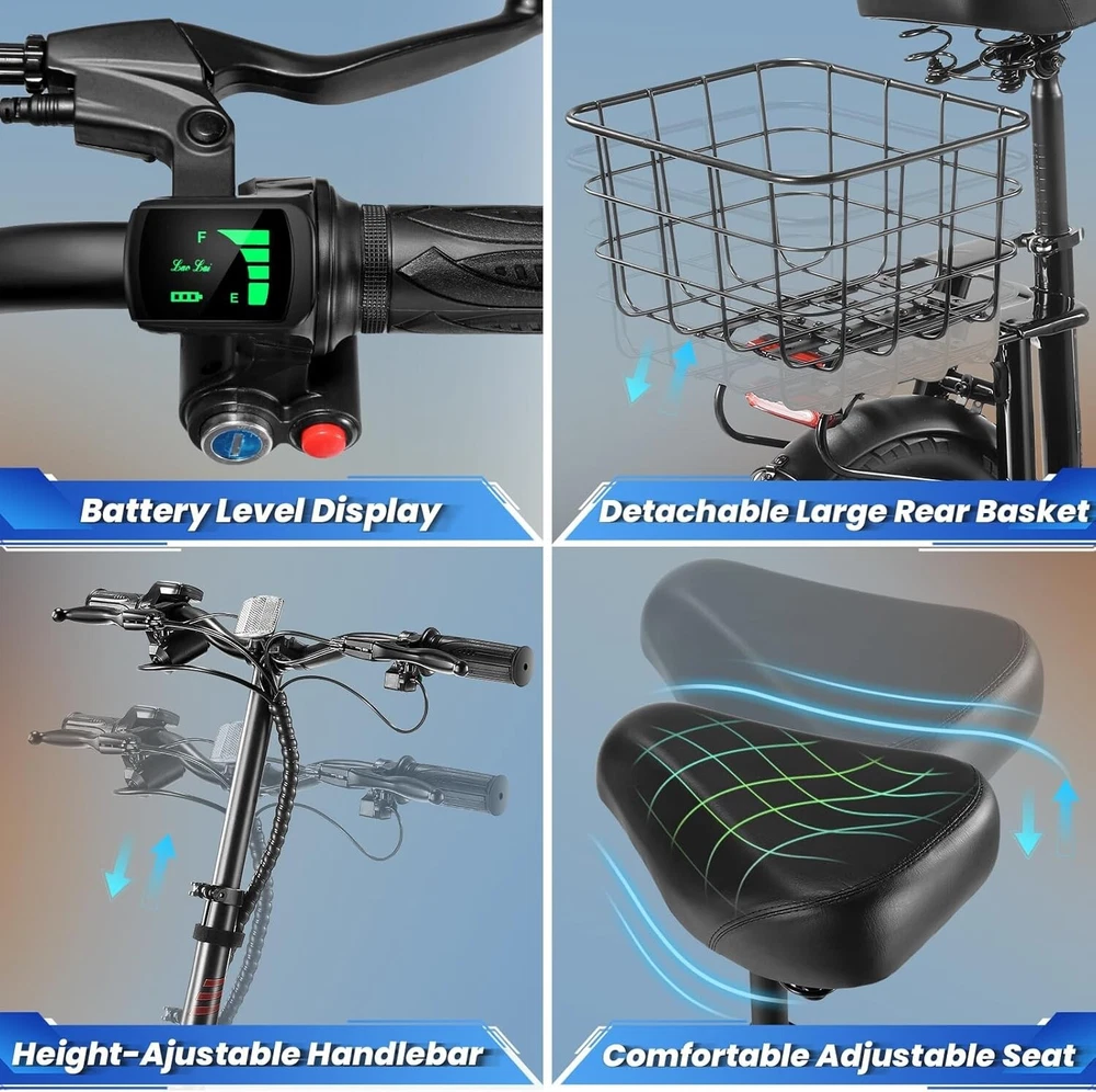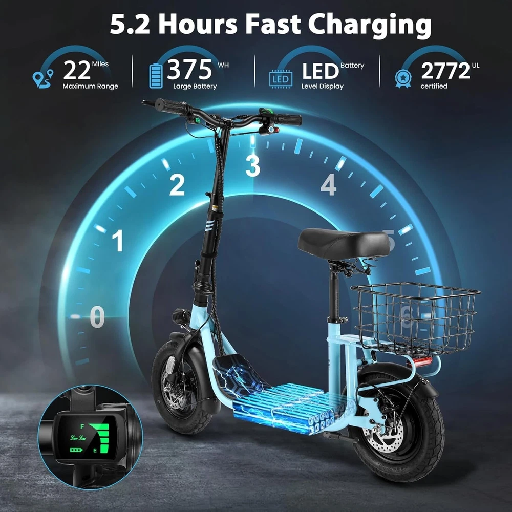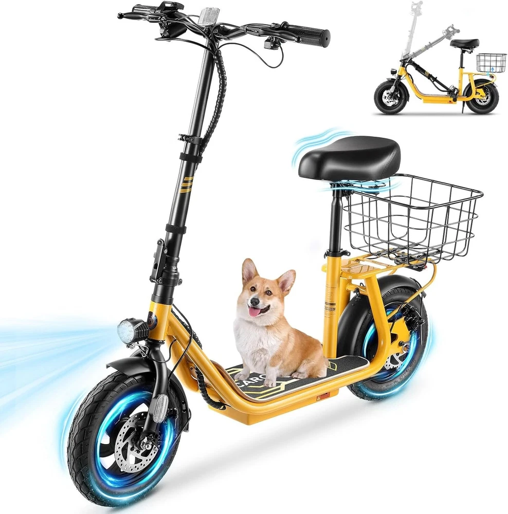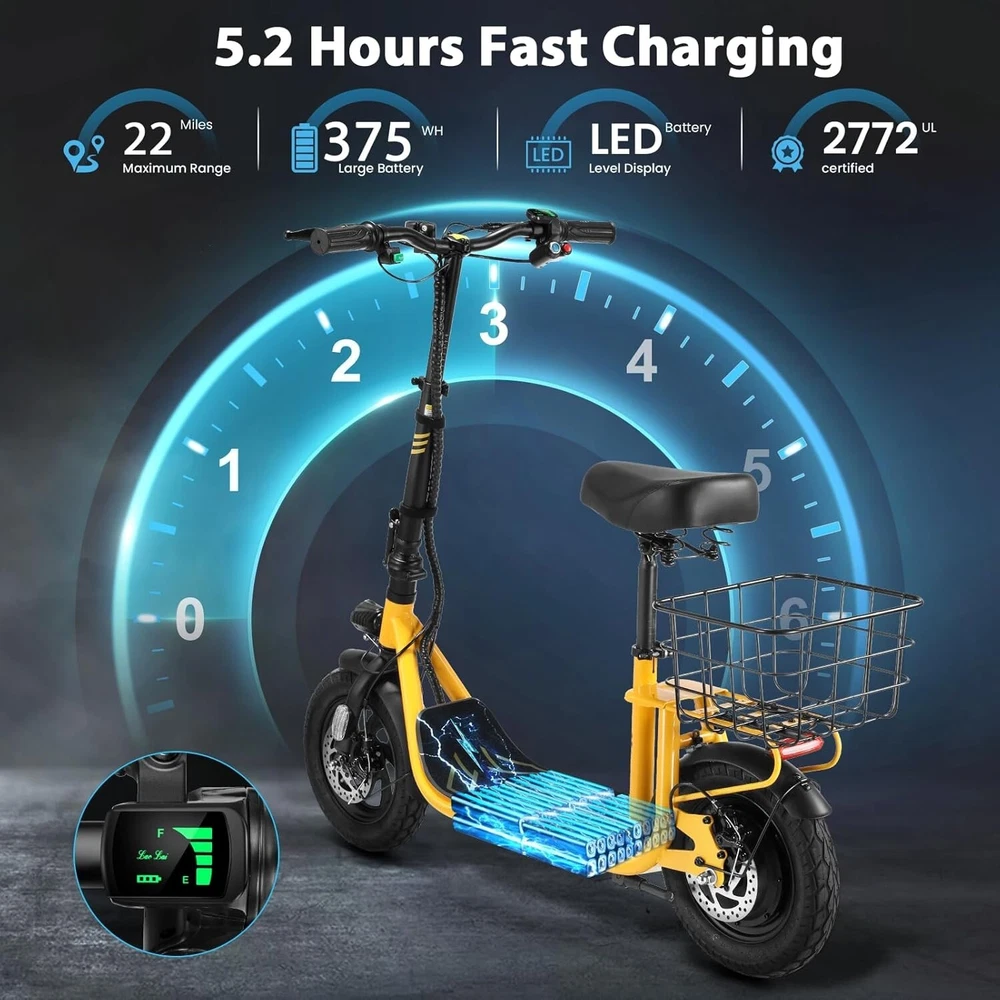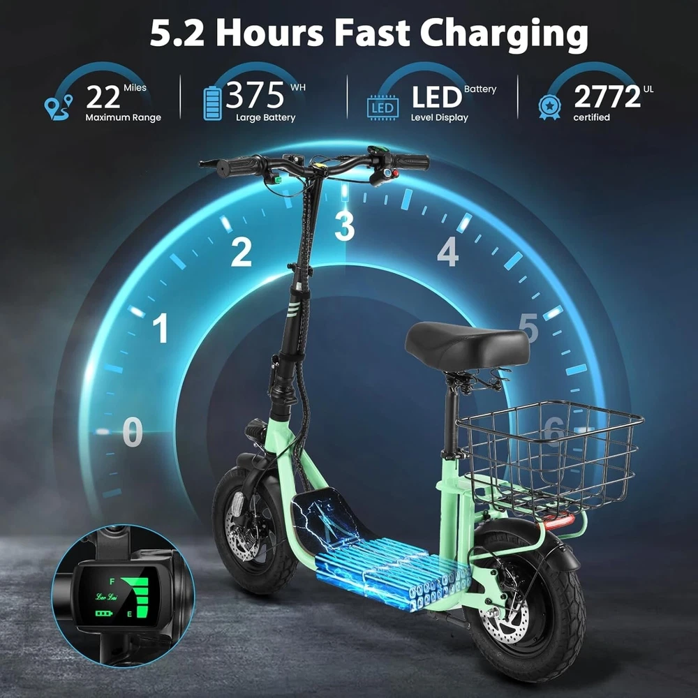 Product Description About this item Powerful Motor & Large Battery: Equipped with 1200W peak motor, Caroma electric scooter can climb 20° slopes and reach speeds up to 20MPH. Its 500WH battery charges in 7 hours and provides a 30-mile range, making it an ideal travel partner for commuting. Safe Riding with Caroma Electric Scooter: Smooth dual disc brakes+responsive horn+bright front&rear lights, allowing for a smooth and gradual stop and lighting up your way at night. Providing safe riding conditions, the E scooter electric is also suitable for beginners. Comfortable and Smooth Riding: Caroma electric scooter adults equipped with 8" WIDE DECK for comfortable foot placement, 12" WIDE TIRES for shock absorption when crossing obstacles, and SOFT & AJUSTABLE SEAT for comfortable long-term riding. Meets Various Commuting Needs:With a 264-lb max load and adjustable seat and handlebar, this motorized scooter for adults suits various body types. Its detachable basket, foldable handle, and lightweight frame make it easily fitting into a trunk, perfect for commuting, shopping, and outings. Easy Assembly & After-Sales Guarantee:The detechable scooter for adults arrives 90% assembled, complete with an instruction manual and installation tools, making setup a breeze. If you experience any issues such as motor failure, charging problems, or missing accessories, please contact us promptly. Caroma is committed to providing you with top-notch service.