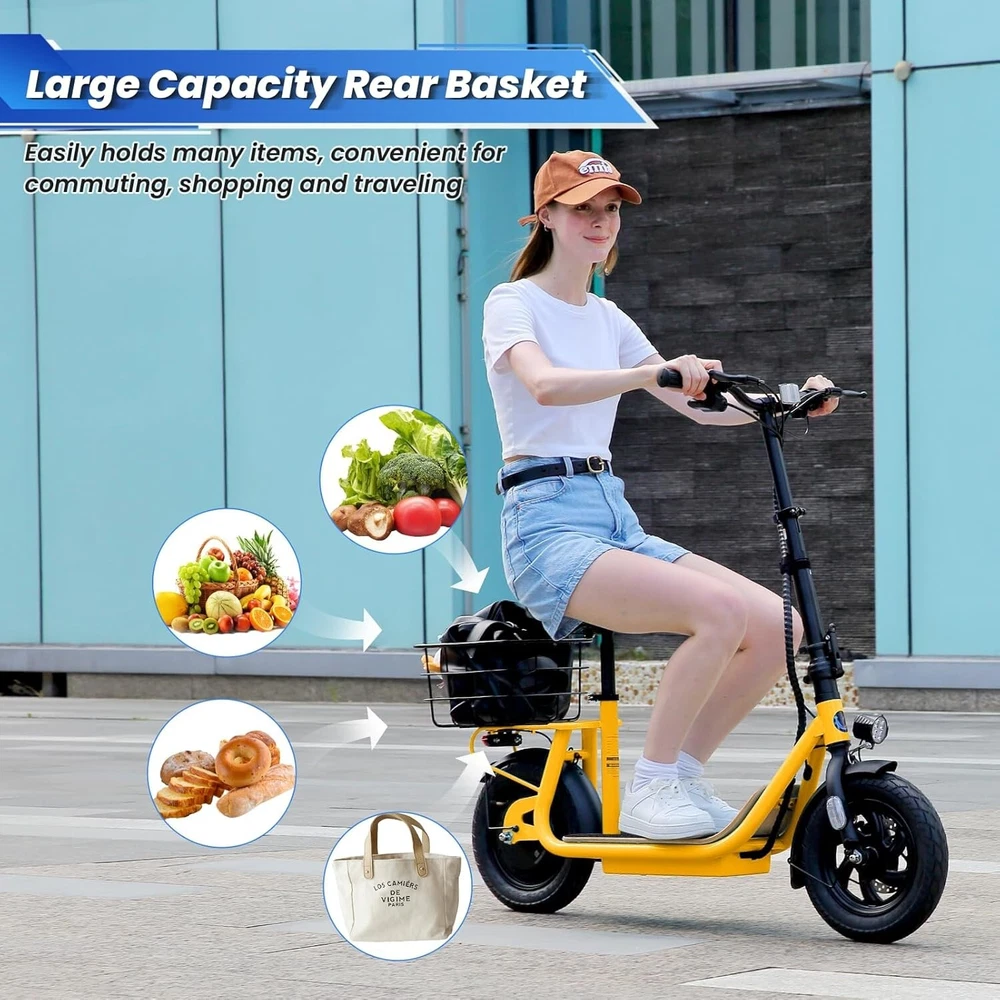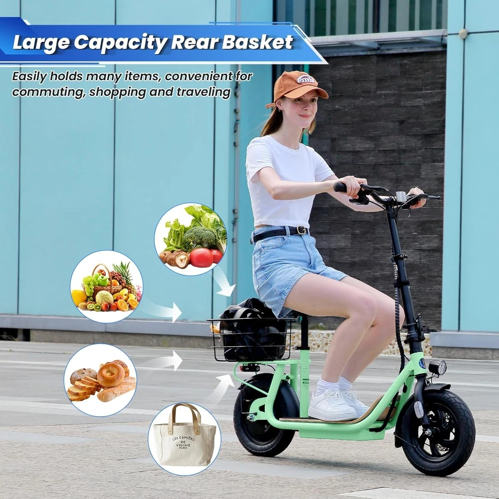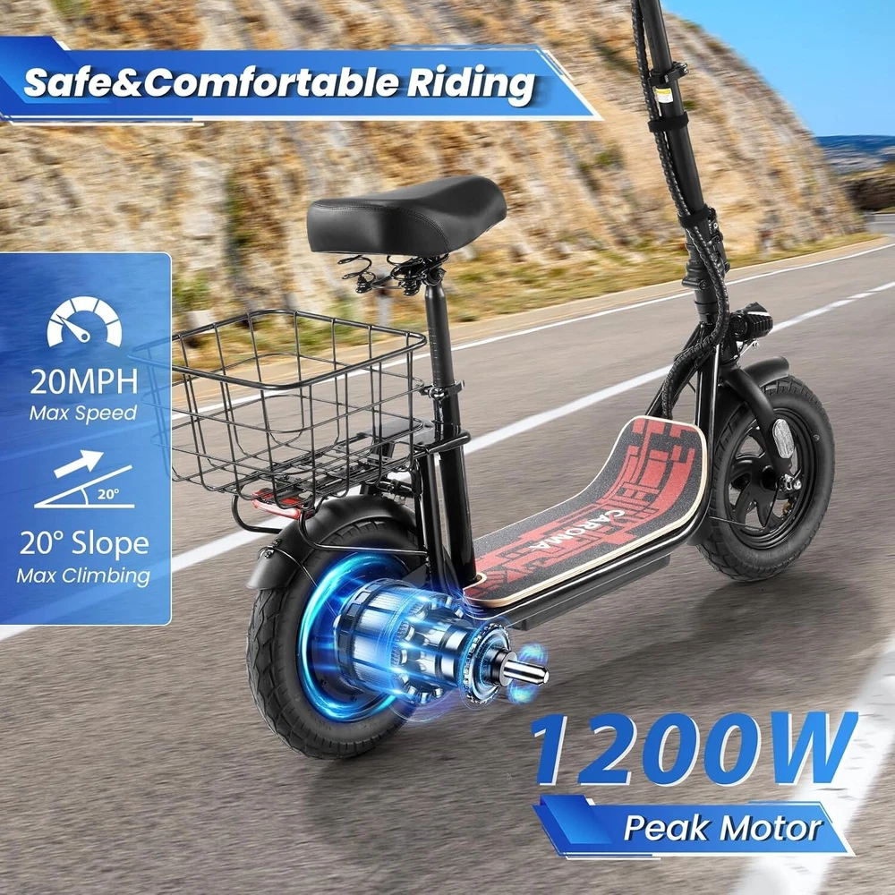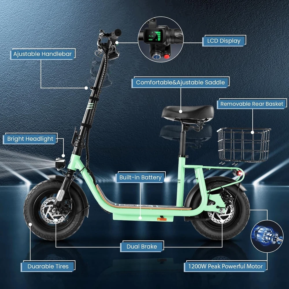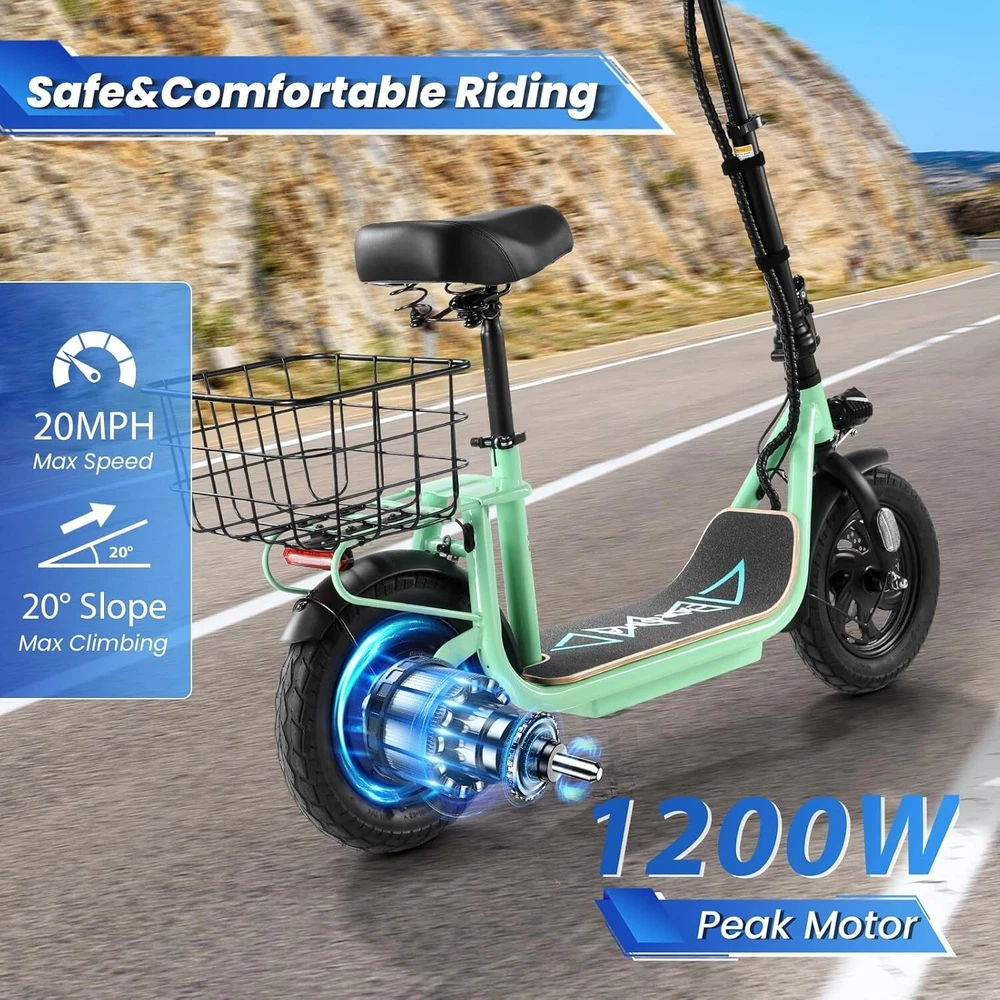 Foldable Electric Scooter with Seat, 1200W Peak Motor, Commuter for Adults&Teens