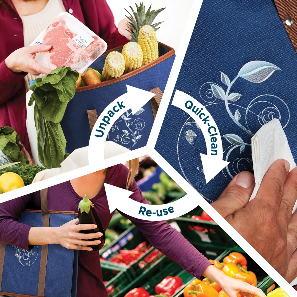 MULTIPURPOSE REUSABLE TOTE BAGS: Designed for on-the-go and eco-friendly lifestyles. A heavy-duty collapsible tote, box bags, baskets that are great for grocery, shopping, beach trips, picnics, camping, potlucks, travel, farmer’s market, and so much more. These tote bags are presentable and well-designed that can also be utilized as souvenirs, favors or gifts during holidays, birthdays, and special occasions. STRONG, REINFORCED HARD BOTTOM: Utility large tote bags that are designed with fold-out solid hard bottom that provides enhanced stability, balance, and control when you’re carrying dry food goods, bottles, and bulk groceries. Each bag can support up to 60 lbs. Durable as food container carrier for transport and travel. LIGHTWEIGHT with LONG SHOULDER HANDLES: Woven with a thick, non-woven fabric, compact and foldable for easy to go travel use. Features a well-made handle that is durable and a 12-inch-long shoulder handle so you can carry it more easily and comfortably when it’s full. SHOPPING CART, TRUNK, or CLOSET STORAGE ORGANIZATION: Has extra-large capacity that can fit 8 milk cartons (1.89L). Tote bags can also be used in areas where you need extra space-saving storage because this is suitable as storage bin and organizer for bedroom closet, kitchen, pantry, car, trunk, and children’s toys. Sturdy shopping tote bags that can fit perfectly in standard shopping cart and car trunk. ECO-FRIENDLY and SUSTAINABLE SUPPORT: A grocery shopping bags that offer long-lasting reusability which is important for reducing reliance on plastic bags and paper bags. Linings and handles are supported using polyurethane materials which are sustainable, more eco-friendly and no animal products used in any part of its creation. Overall endorses an environmental and vegan friendly tote bag. CARE DIRECTIONS: These tote bags are easy to maintain. To keep it looking new, clean with a damp cloth then simply air dry. When not in use, it is easy to . Hard bottom board is enclosed and can be folded easily. Ideal space saver when folded flat.