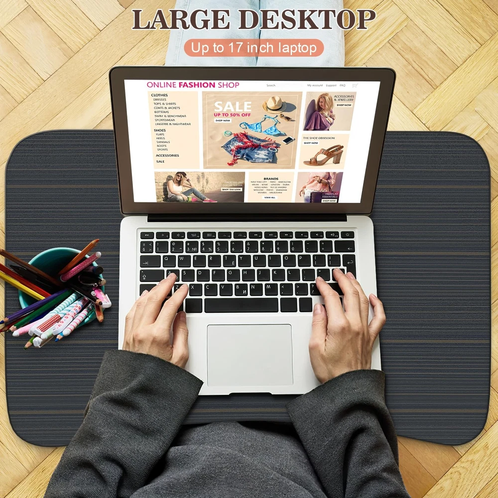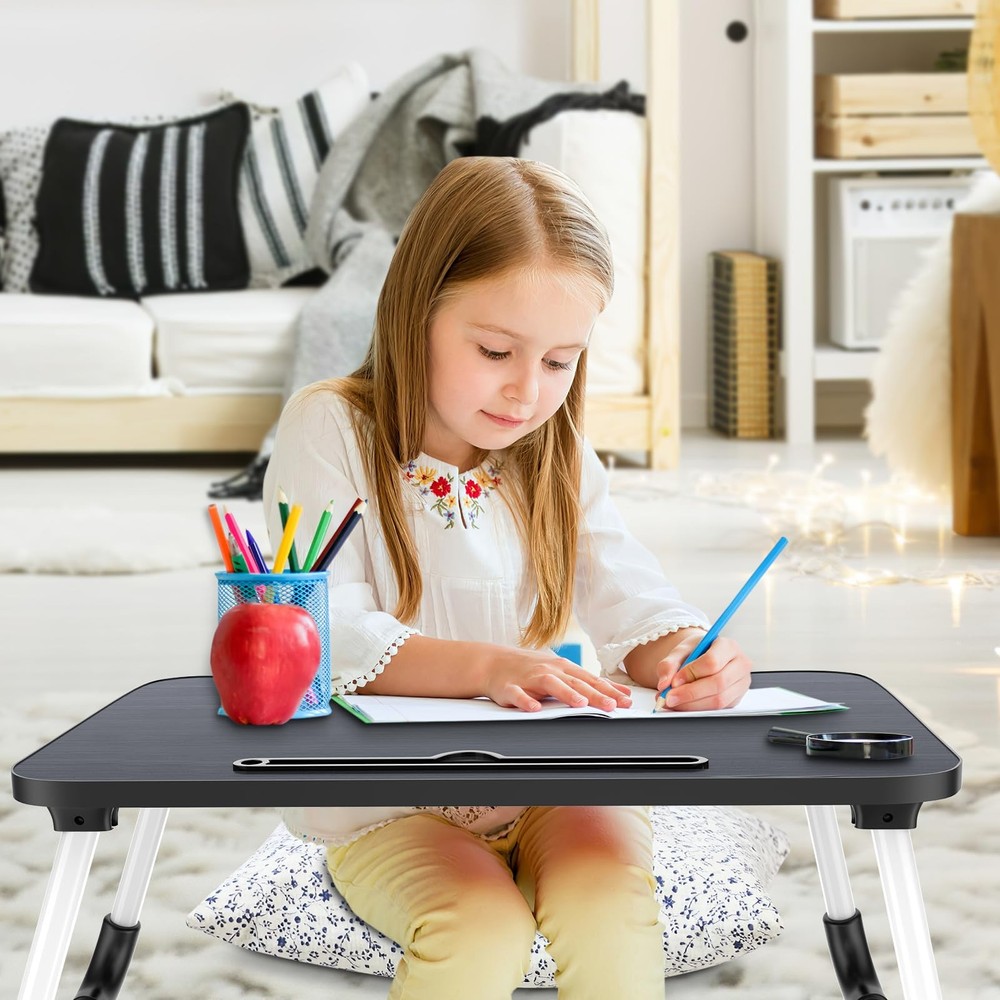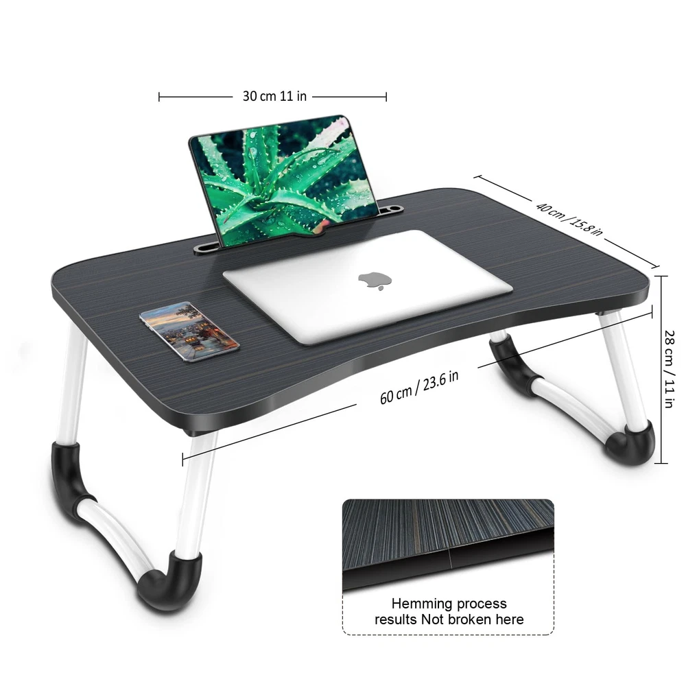 This laptop bed desk is designed for people who want to relax on the bed, sofa, or floor while working, reading, eating, and playing games. It's perfect for using in bed, on the sofa, and on the floor to work, watch movies, read books, play games, eat breakfast, and paint. The laptop desk is made of high-quality MDF and metal, making it lightweight and stable. The comfortable height of the laptop stand is suitable for people of enjoy life. The tablet slot is perfect for placing tablets or mobile phones, and the anti-slip legs design keeps your devices stable and secure. The laptop bed desk is easy to carry and store. 💦【Portable & Foldable Laptop bed desk】This laptop bed tray is designed for comfortable use in bed, on the couch and on the floor. The laptop bed table set it up at the most comfortable height for reading, eating, working and playing games. The laptop stand for bed is easy to carry and store, very suitable for home, office and travel. 💦【Sturdy & Stable Lapdesk】This laptop desk for bed is made of high-quality MDF, solid wood particle board, safe and environmentally friendly, which is strong and durable. The foldable legs have 4 anti-slip pads, which is stable and not easy to shake. The size of laptop lap desk is enough big 23.6"(L)x15.7"(W)x10.3"(H), which can meet the daily use of various electronic devices. 💦【Multiple Functions】This laptop bed table tray can be used as a laptop stand, reading stand, dining table, writing table, snack tray, office work, picnic/camping table etc. The comfortable height and ergonomics design are very suitable for different situations, which can provide you with a comfortable using experience. 💦【Humanized Design】Curved table desktop base on ergonomics principle, laptop tray table comes with slot for iPad, phone, tablet or Kindle. The legs of the laptop desk can be folded and carried easily, easy to use and store, lightweight and portable, convenient for you to use at any time. 💦【Easy to Carry & Store】 This laptop bed desk is lightweight and foldable. You can take it to any place you want to go. The laptop desk can be stored in a small space when it is not in use. If you have any questions, welcome contact us freely, we will give you a satisfied solution.