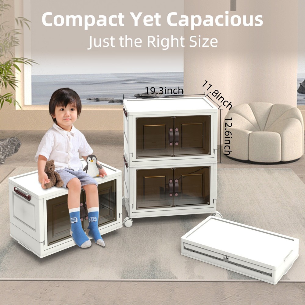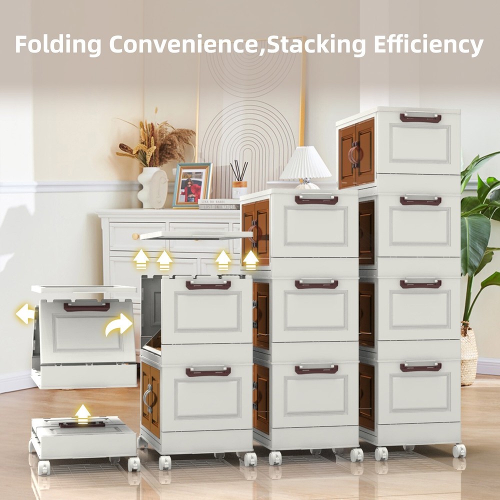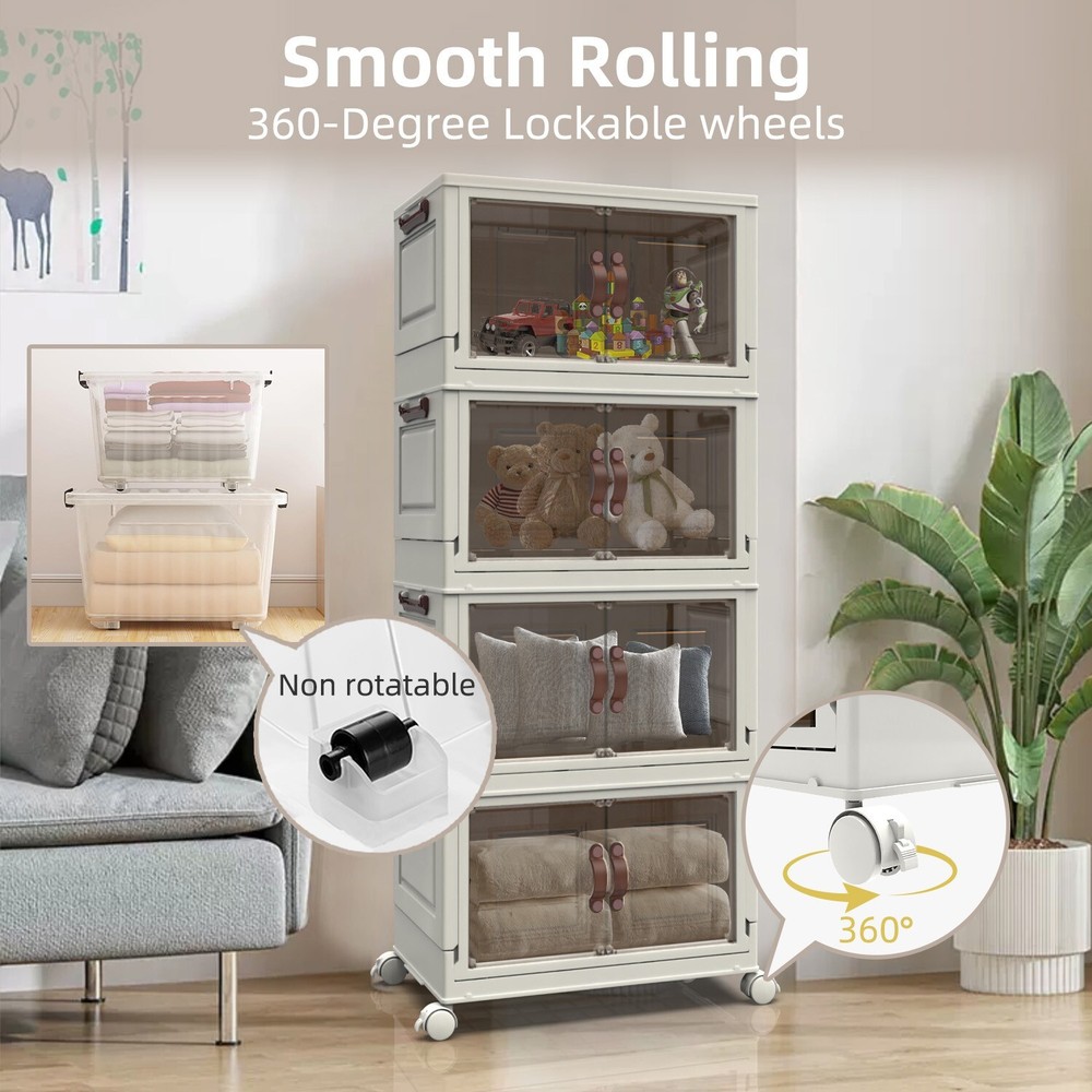 【CONVENIENT DUAL ACCESS】 These stackable storage bins with doors feature a top-opening lid and a front-access door, letting you effortlessly load a pile of clothes from the top and retrieve items one at a time from the front. This dual-access design is perfect for closet organizers and storage, streamlining organization and reducing the hassle of rummaging through belongings 【SPACE-SAVING DESIGN】 Foldable for ultimate convenience, these foldable storage bins collapse to a compact size of 19.68 * 11.81 * 2.75 inches. Opening and folding take just a few simple steps, allowing you to carry and store them with ease. As versatile folding storage solutions, they’re perfect for those on the move or for seasonal storage needs 【DURABILITY PREMIUM MATERIALS】 Crafted with upgraded TPR-infused materials, these foldable storage cabinets are tough, impact-resistant, and wear-resistant. Their sturdy construction ensures reliable performance as closet organizers and storage for long-term or daily organization 【MOBILITY AND STABILITY COMBINED】 Equipped with smooth-rolling, lockable wheels, these storage bins with wheels offer unmatched convenience for indoor movement. Whether you’re organizing a playroom or managing seasonal decorations, these bins combine the flexibility of mobility with the security of stable placement 【VERSATILE STACKABLE CONFIGURATION】 Designed as stackable storage bins with lids, these bins can be securely placed one on top of another without limits, making them suitable for various spaces. Use them as stackable storage drawers for clothes in closets, offices, or garages to create your own modular storage system that adapts to your needs On Jan 27, 2025 at 00:12:46 PST, seller added the following information: