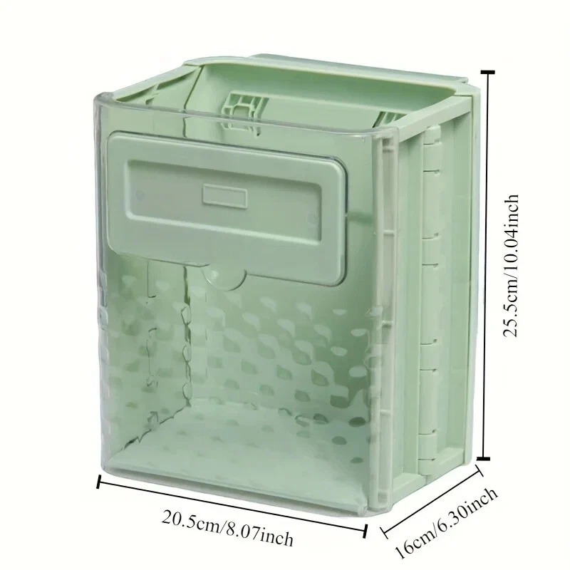 1pc Foldable Wall-Mounted Kitchen Trash Can - Durable Plastic, Space-Saving Design, Ideal for Garbage Sorting, Scent-Free, No Electricity Required. Specifications: Product Name: Kitchen Wall-mounted Folding Trash Can Material: Plastic Color:green,gray Quantity: 1pcs On Dec 23, 2024 at 03:30:41 PST, seller added the following information: