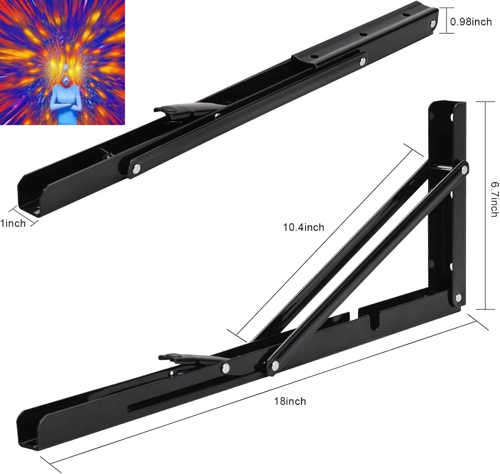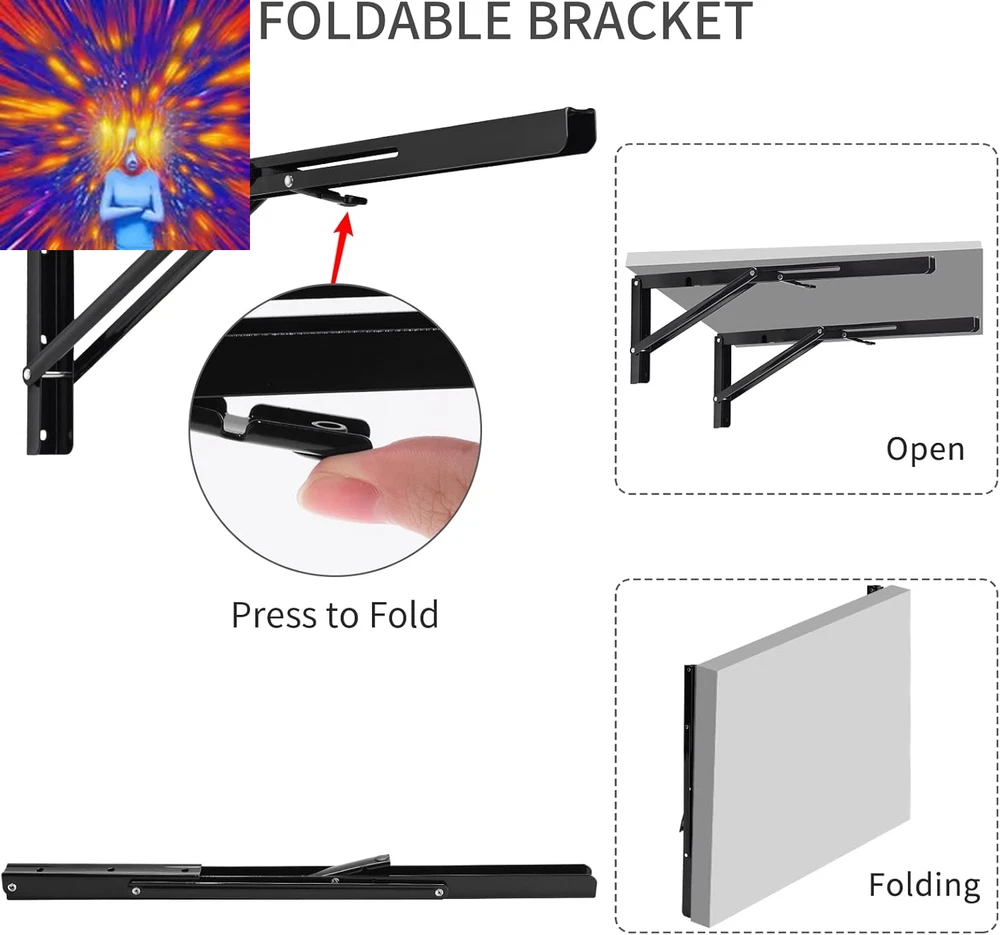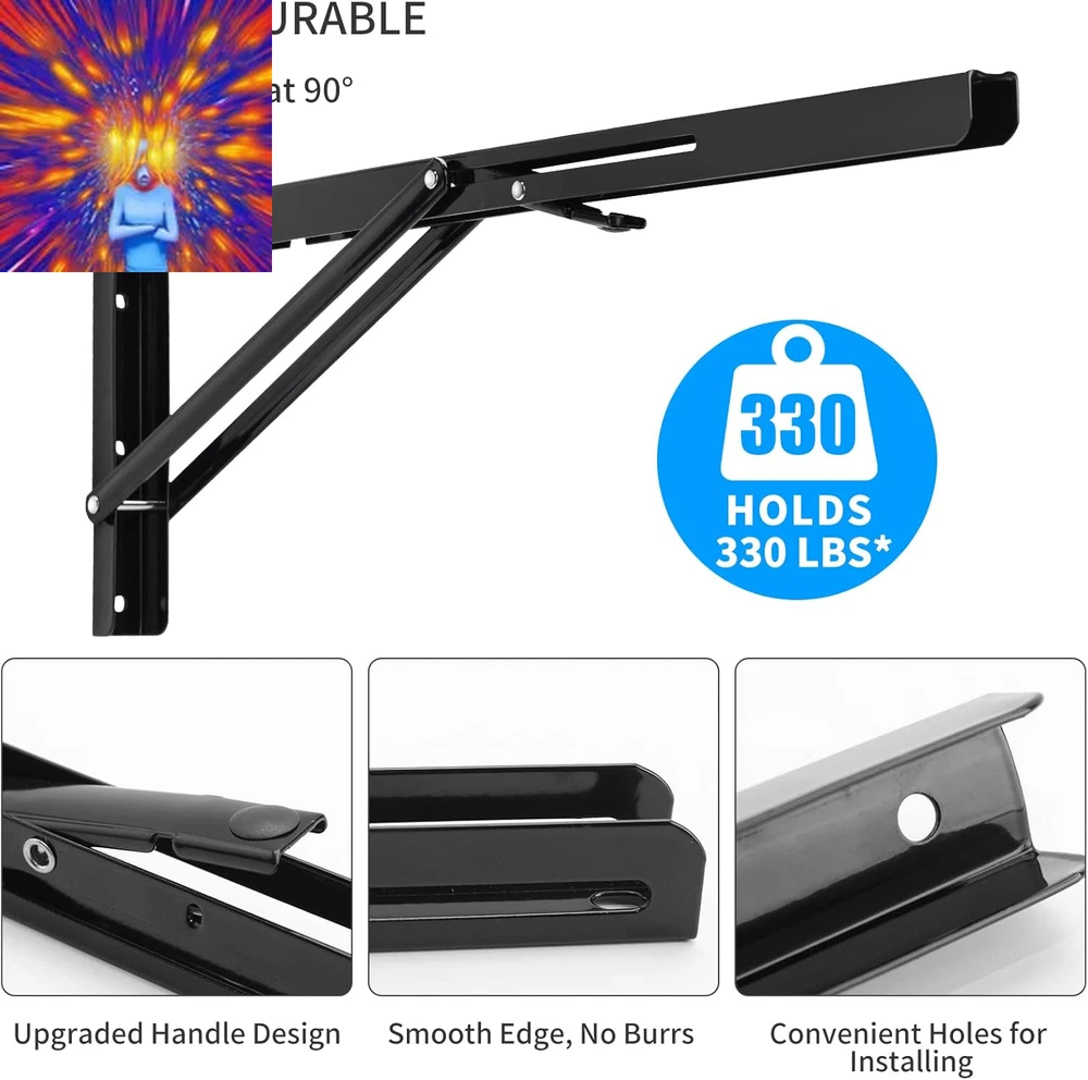 Folding Shelf Brackets, 10 Inch Heavy Duty Collapsible Shelf Bracket, Black DIY