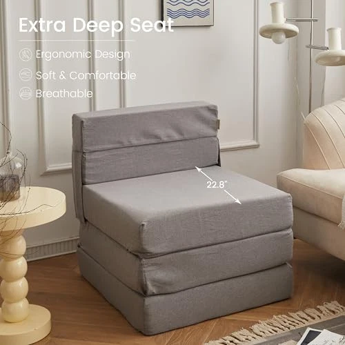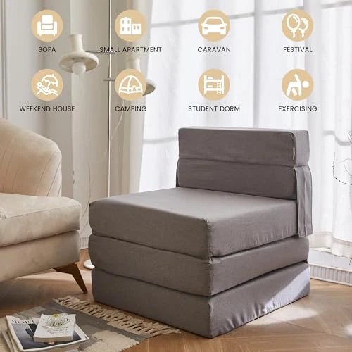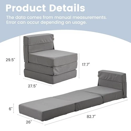 Return Policy Fast Delivery Trusted seller Folding Sofa Bed, Convertible Chair & Sleeping Mattress,Modern Floor & Futon Couch for Living Room/Dorm/Guest Room/Home/Office/Apartment, Grey Product Description 【Versatile & Practical】 foldable sofa single has four forms, which can be easily converted into a floor sofa, chaise, recliner and mattress to satisfy your different needs. Providing you with comfortable atmosp when reading, playing games, watching TV, etc. 【Excellent Foam & Fabric】 Linen Like Textured fabric is soft, breathable, and durable, offering you an excellent experience. High-density foam has good resilience and gives you great support at the same time. It is very comfortable to sit, lean and lie down. 【Portable Design】The foldable and lightweight design makes it easy to fold, store and carry. Convenient to move in any room, can be used for bedroom, RVs and Office. 【Easy to Assemble & Clean】Our sofa bed is modular design that does not require installation, just open it up and use it.The sofa cover is also easy to clean. Cover with zippers is removable and washable, keeping the sofa bed beautiful and comfortable. 【Multiple Used】Perfect for family gathering, picnics, camping, apartments, college dorms, living rooms, lofts, traveling, napping, massage, yoga, or anyw else space is limited. Shipping Returns Payment Shipping Shipping is FREE to all addresses other than APO/PO boxes in the lower 48 states. All our stock ships from US-based warehouses. Shipped via USPS or UPS (depending on location and package weight) Unless stated otherwise, all orders will ship within 24-72 hours of your payment being processed. Check our feedback to see the great reviews of FAST shipping we offer. Returns Seller does not accept returns Payment We currently accept payment via eBay managed payments only. Once payment is cleared, we will dispatch your shipment within 1-3 business days. Please refer to the "Shipping" tab for more information regarding shipping speed to your destination.