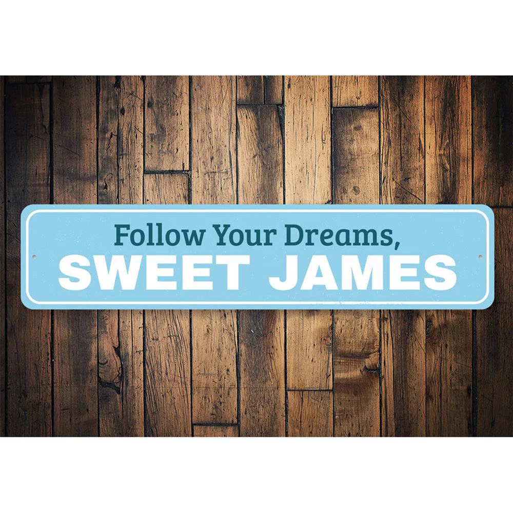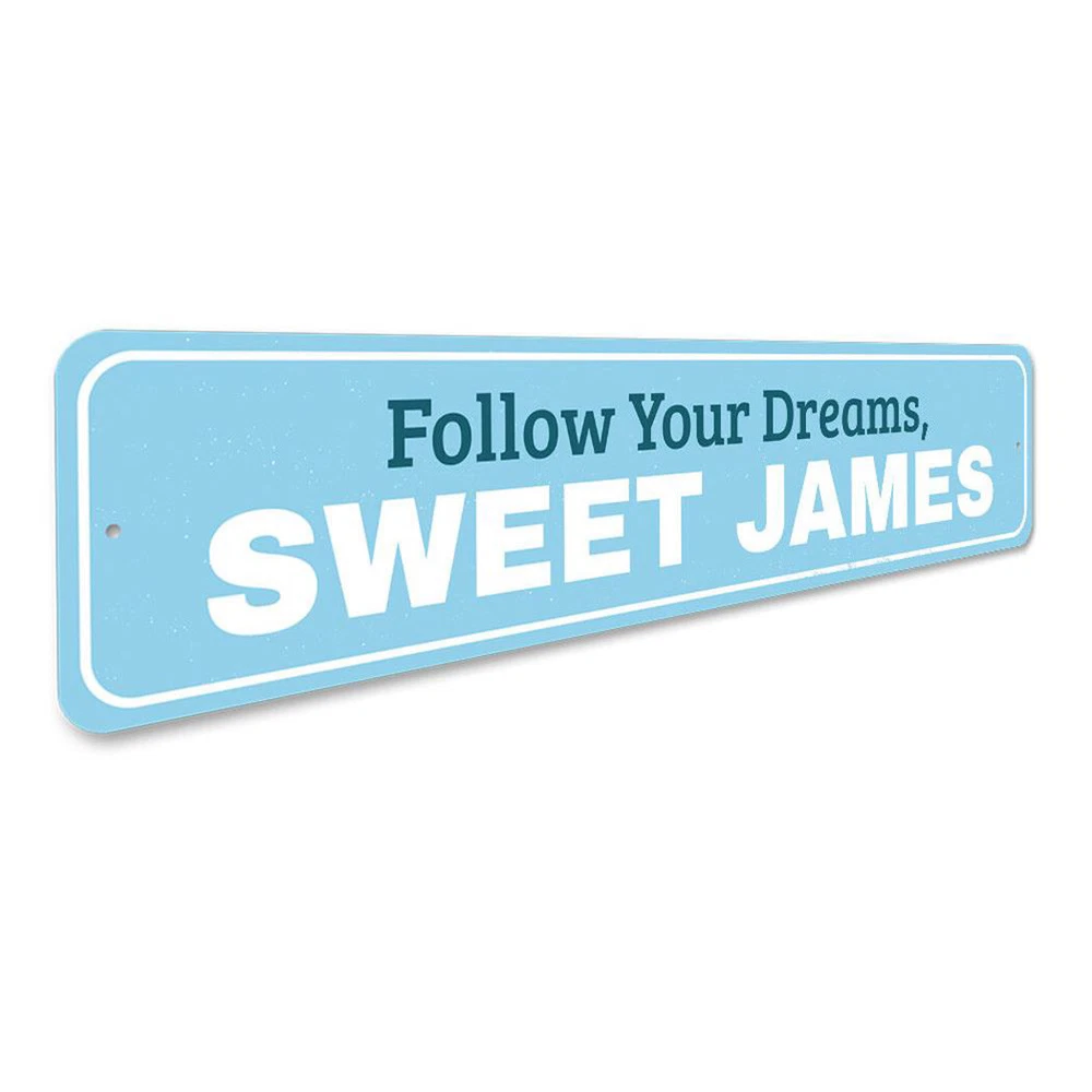 The Lizton Sign Shop Product Description Follow Your Dreams Sweet Baby Sign, Custom Newborn Name Aluminum Metal Decor **there may be slight variations in color and text spacing, however your sign will be very similar to the image above. Quality Aluminum Street Signs Sign Information Aluminum Brand New Sign Comes with rounded corners and pre-drilled for easy hanging. We use the highest quality materials - 100% USA-made! Great Gift Idea - Our signs truly make a one of a kind gift. Personalize the sign with the text you want to add. Custom text for the sign can be sent to us via email. A BRAND NEW SIGN!! All of our street signs are made of premium materials. The sign itself is made of aluminum and will never rust providing years of enjoyment indoors and outdoors. No Cheap plastic!! The Lizton Sign Shop specializes in quality personalized custom aluminum signs for any occasion. These make the perfect sign for any man cave, office, basement, garage, college dorm, kids bedroom, game room, bar, pub, tavern or countless other places. *Colors may vary slightly from one computer screen to the next but the image should be very close. All content and designs are subject to copyright and may not be reproduced in any form. Payment Methods We would prefer payment to be made through paypal but we also accept all major credit cards. If you select the credit card option please contact us after you make your purchase and we can walk you through the steps to make a secure payment. Return Policies We will accept returns within 30 days of the purchase date. The buyer is responsible for any costs to return the item or items. Returns will only be accepted for items that were damaged in shipping or if we made an error in the manufacturing of your item, i.e. spelling error.