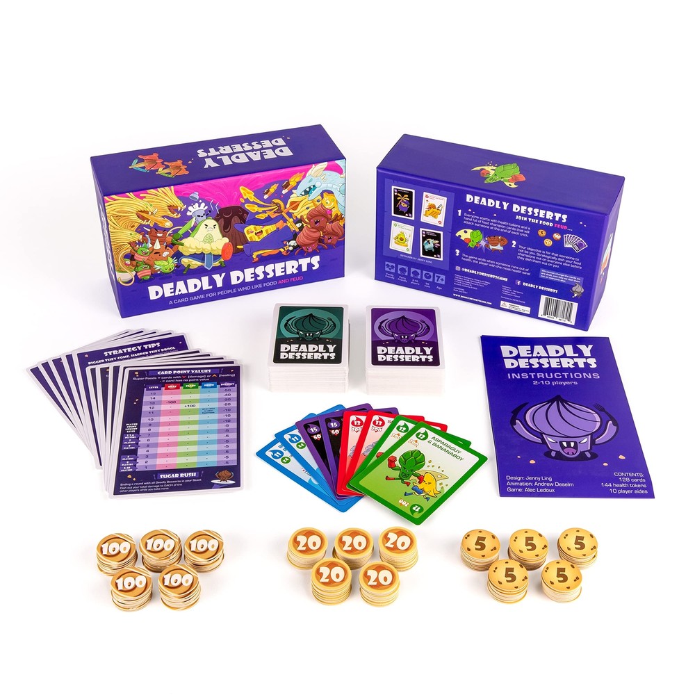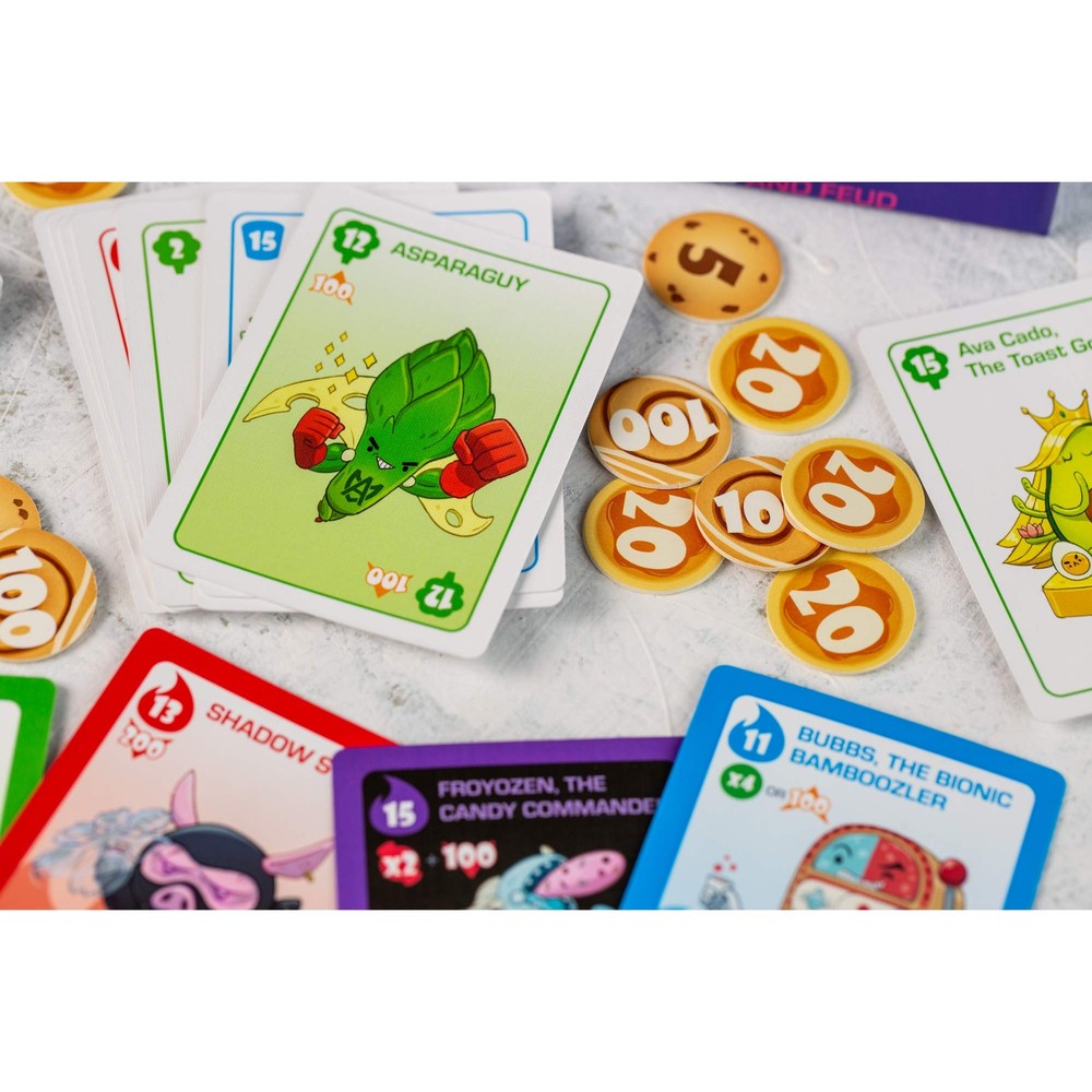 EASY TO LEARN AND GREAT FOR ALL AGES – New instructions and how to play video as of January 2022! The game is great with family and friends because it takes 5 minutes for kids and older folks to learn and is strategic to satisfy everyone's board game cravings. Ages 7+, 2-10 players. PLAYTESTED AND FUN-APPROVED – was playtested by over 150 adults, teens, and kids before launching on Kickstarter and exceeded its funding goal by 150%. STRATEGIC AND REPLAYABLE - This game doesn’t lose novelty after playing once and seeing all the cards. It gets better the more you play because it is based more on strategy than on luck. FUNNY CHARACTERS WITH DELECTABLE DESIGNS – The cards have 64 unique, food-inspired characters. Imagine a waffle in wizard robes casting a syrup lightning spell from a churro staff – meet Waffle Wizard. HIGH QUALITY COMPONENTS – The game comes with 128 thick cards with linen finish and matte lamination, 144 food-themed tokens (cookies, pancakes, cinnamon swirls), 10 player aides, mouth-watering instructions printed on art paper, and a sturdy box. All components are made of recycled material and are FSC certified.