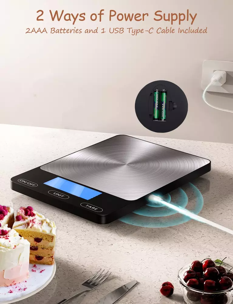 Food Scale 33Lb Digital Kitchen Scale For Food Ounces Grams Rechargeable And New Food Scale -33lb Digital Kitchen Scale for Food Ounces Grams Rechargeable 304 Stainless Steel,Batteries and Type-C Charging | Perfect for Meal Prep, Cooking, and Baking, Black Product Description: This high-precision digital kitchen scale is perfect for accurately measuring food ingredients up to 33 pounds (15 kg). With easy unit conversions and a rechargeable design, this scale is an essential tool for precise cooking, baking, and meal prep. Features: Measures up to 33 lbs (15 kg) with precise graduations in ounces and grams Clear, easy-to-read digital display for quick and accurate readings Rechargeable battery with USB charging, eliminating the need for disposable batteries Compact, slim design that fits easily on countertops or in drawers Tare function to subtract container weight for accurate measurements Multiple units of measure (grams, ounces, pounds, kilograms) for versatile use Durable, easy-to-clean surface ideal for various kitchen tasks Item model number 01scale-15kg Display Type LCD Color Black Product Dimensions 8 x 5 x 0.7 inches; 11.99 ounces Country of Origin China Batteries 2 AAA batteries required. (included) Recommended Uses For Product Food Special Feature Kitchen Scale Specilist Size Medium Shipping Fast shipping is very important for us. Our standard USA shipping service is FREE. Your order will be shipped within 1-2 business days upon full payment received. Your order will be delivered within 1-3 business days after the handling time. We only ship to the confirmed address. We reserve the right to cancel any order for any reason at any time. We are not responsible for undeliverable addresses. Returns and payment We offer a 30 days return policy from checkout winning date. FeedBack Your feedback very important to us, after you get your package and you are satisfied with our service please leave us positive feedback If you have any problem with your order / any questions please before leave any type of feedback For any questions, using eBay contact system Please visit our eBay store to check out other items for sale! Thank you for shopping at our store.