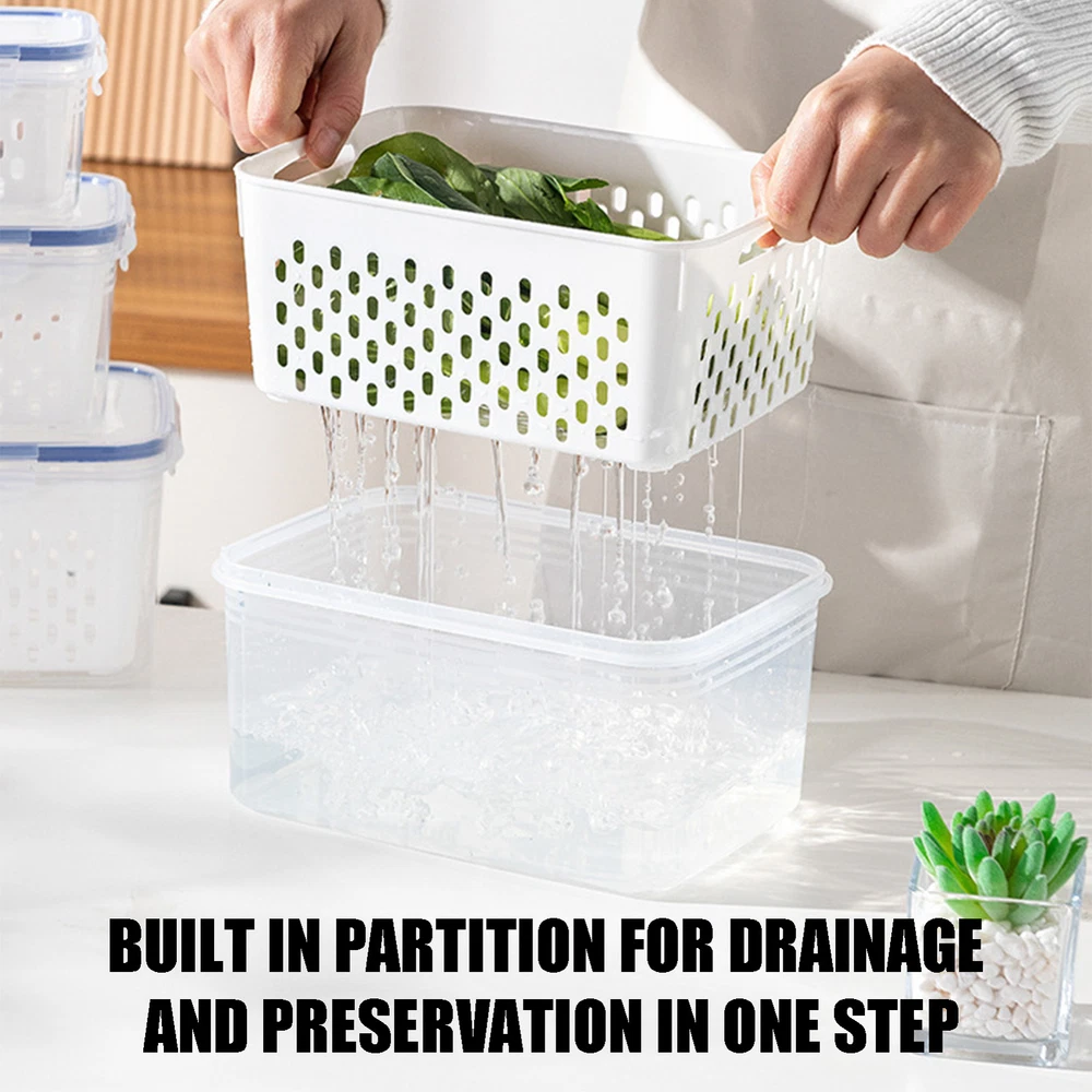 Features: Durable Construction: Made from good-quality materials, these containers are built to last, providing a reliable storage solution for your kitchen. Convenient Kitchen Accessory: The food containers with drain colanders are a convenient and practical addition to any kitchen, making food preparation and storage a breeze. Easy Drainage and Reusable: The containers are equipped with drainage baskets, making it easy to wash and drain your fruits and vegetables before storing them. Freshness Preservation: Ideal for spinach, strawberries, berries, salads, cheese, and lettuce, these containers help the freshness of your produce. Versatile Drainage Options: These storage containers feature drain colanders and baskets, making them perfect for a variety of fruits and vegetables. Specifications: Material: Plastic Size: 18*13*10cm Notes: Please allow slightly errors due to manual measurement and different monitors.