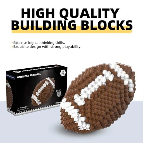 Return Policy Fast Delivery Trusted seller Football Block Set, Adults challenging STEM Block Decoration, Miniature 3D Educational Toys for 14 15 16 Years and Above, (399 Pieces) Product Description 【A New Fun Building Toy】: Our building set consists of 399 pcs Polyhedral Spherical blocks which made of safe & environmental friendly ABS plastic. Micro 3D building aim to improve Hands-on skills and Spatial Observation. 【Build Your Own Attractive Decoration】: This blocks-built measures over 6.06in height, 3.78in length, 3.78in width.Enjoy a rewarding building project as you create a American football to enhance your home or office decor.The American football model is incredibly realistic and visually appealing, suitable to display on your computer desk, computer cabinet, bookshelf or on the shelf as a souvenir, will bring you a different mood. 【Packaging Inluding】: The building blocks are equipped with detailed assembly drawings. In addition, to protect your fingers, we provide 1 extra Pry Tool to help you disassemble the building more easily. Please note that t are plenty of extra pieces, so please don't worry about missing any block during build. 【Polyhedron Creative Structure】The building block set achieves creativity in structure. Compared to traditional building blocks, it has more gameplay options. It can stimulate people's visual discernment and hands-on execution ability, and also make adults addicted to it for relaxation and entertainment. Made of safe ABS material, non-toxic, odorless, safe and durable, with bright colors to ensure health. The surface of the building blocks is smooth and free of burrs, providing a more comfortable hand feel. 【Best present For Adults】 Rugby building block toys are suitable for adults. They can be used as holiday present, birthday present, etc., and can also be used as desktop decorations, and placed in various scenes such as home and office. Shipping Returns Payment Shipping Shipping is FREE to all addresses other than APO/PO boxes in the lower 48 states. All our stock ships from US-based warehouses. Shipped via USPS or UPS (depending on location and package weight) Unless stated otherwise, all orders will ship within 24-72 hours of your payment being processed. Check our feedback to see the great reviews of FAST shipping we offer. Returns Seller does not accept returns Payment We currently accept payment via eBay managed payments only. Once payment is cleared, we will dispatch your shipment within 1-3 business days. Please refer to the "Shipping" tab for more information regarding shipping speed to your destination.