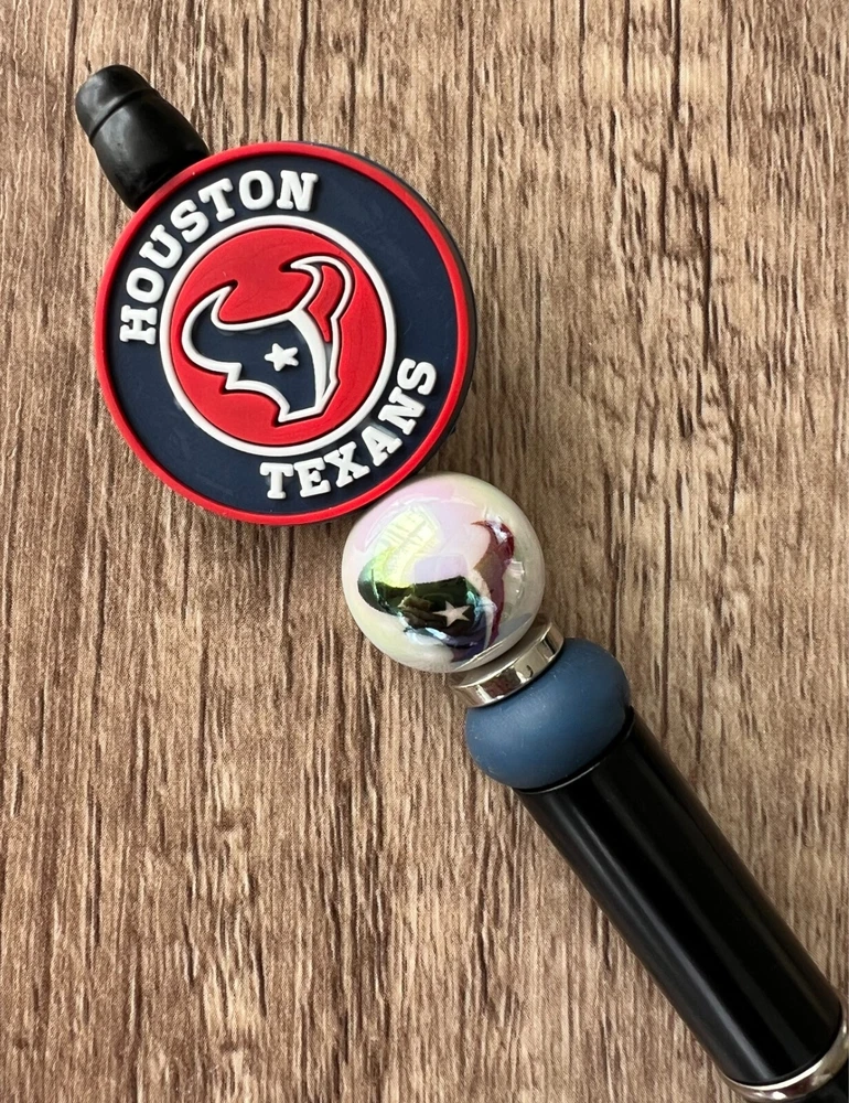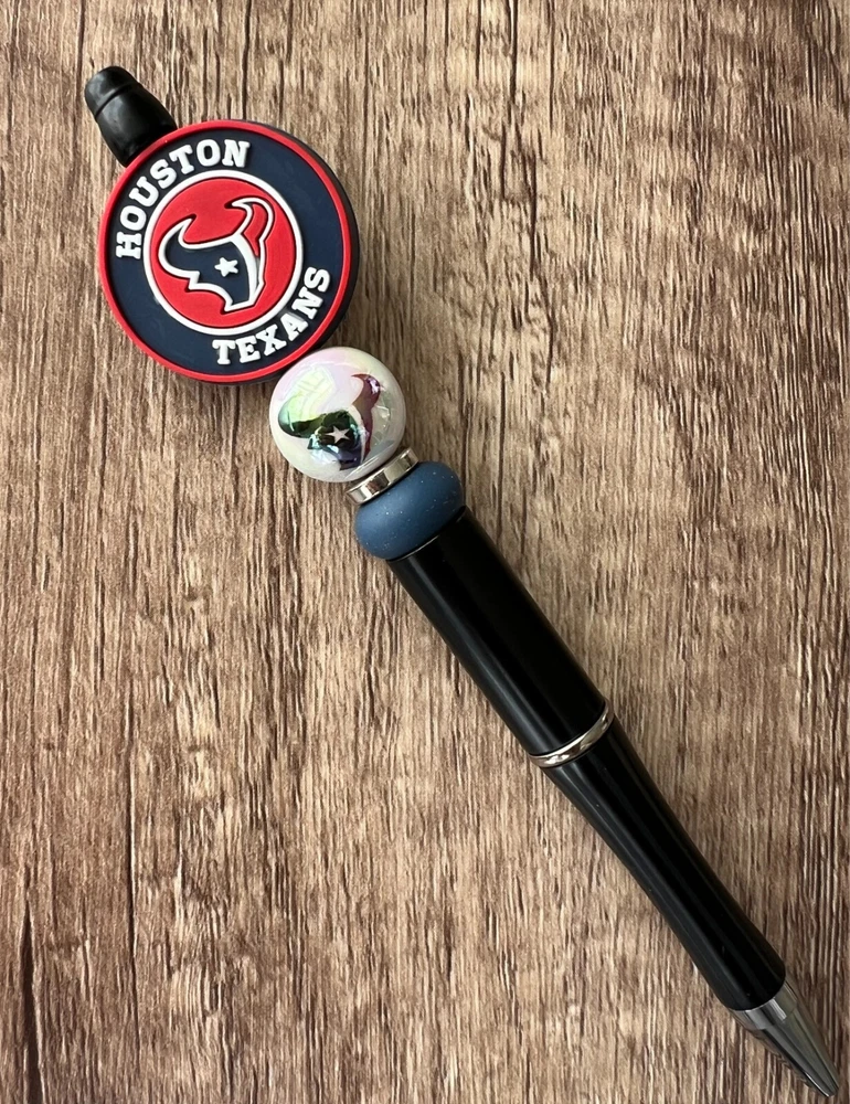 Show your love for football with your team pen. Featuring the colors of your favorite team logo, this pen is the perfect accessory for any game day. This pen is a must-have for any football fan. Whether you're taking notes in the office or signing autographs at a meet-and-greet, this pen is both practical and stylish. Each pen has a plastic pen barrel with retracting black ink, made with silicone focal beads. Add it to your collection of fan apparel and souvenirs, and show your support for your team all season long. Get your hands on this one-of-a-kind football pen today! Price includes one pen. All Pens come with a free black ink refill. *Not suitable for small children.