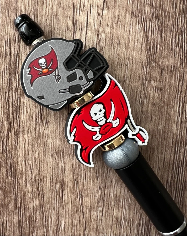 Show your love for football with your team pen. Featuring the colors of your favorite team logo, this pen is the perfect accessory for any game day. This pen is a must-have for any football fan. Whether you're taking notes in the office or signing autographs at a meet-and-greet, this pen is both practical and stylish. Each pen has a plastic pen barrel with retracting black ink, made with silicone focal beads. Add it to your collection of fan apparel and souvenirs, and show your support for your team all season long. Get your hands on this one-of-a-kind football pen today! Price includes one pen. All Pens come with a free black ink refill. *Not suitable for small children.