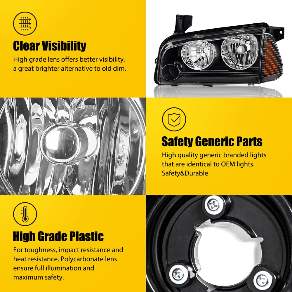 Fit for: 2006-2010 Dodge Charger (Not compatible with 2008-2010 Models W/ Factory Xenon HID Headlights ) Specifications: OE number: 4806164AG 4806165AG 4806165AF 4806164AF CH2502163 CH2502181 CH2503163 CH2503181 Material: ABS+PC (ABS Plastic Housing/Polycarbonate lens) Appearance color: 1.Housing Color: Black 2.Lens Color:Clear 3.Reflector Color:Amber Note: Projector ×(Not Include) DRL × (Not include) Bulb × (Not include) Features: *Easy to install: For 06-10 Dodge Charger Pair Replacement Headlight Complete Assembly Set LH RH S Fit for: 2006-2010 Dodge Charger (Not compatible with 2008-2010 Models W/ Factory Xenon HID Headlights ) Specifications: OE number: 4806164AG 4806165AG 4806165AF 4806164AF CH2502163 CH2502181 CH2503163 CH2503181 Material: ABS+PC (ABS Plastic Housing/Polycarbonate lens) Appearance color: 1.Housing Color: Black 2.Lens Color:Clear 3.Reflector Color:Amber Note: Projector ×(Not Include) DRL × (Not include) Bulb × (Not include) Features: *Easy to install: Direct replacement, drilling and cutting are not required. *Superior quality: Made of ABS and PC materials with toughness and heat resistance functions to ensure its long service life and durability. *Angle adjustment: Equipped with a headlamp Angle adjustment knob, you can adjust the best Angle of view through the knob. *Suggestion: 1.Please confirm the OE number before purchasing!!! 2.Professional installation is required!!! Packaging include: Headlights*2(Left+Right) Item Specifics Brand AUXITO Lighting Technology Halogen Type Headlight Assembly Features Reflector Housing, SAE-Certified, Sealed Assembly Housing Color Black Placement on Vehicle Front Left,Right Light Color No Bulb Lens Color Clear Reflector Color Amber Manufacturer Part Number DGCG06.03 16 Color Temperature \ Voltage 12 V Mounting Style Screws Vintage Part Yes Performance Part Yes Manufacturer Warranty 5 Years Universal Fitment No Number of Bulbs 0 Finish Smooth Model For 2006-2010 Dodge Charger OE/OEM Part Number 4806164AG 4806165AG 4806165AF 4806164AF CH2502163 CH2502181 Quantity 2 Headlight assembly Packaging include Left & Right Side Headlights Assembly Bulbs Included Not Included Bulb Shape Code Please Use Stock Bulbs Include Projector Not Included Include DRL Not Included Fitment Type Direct Replacement Assembly Type Composite Type Headlight Assembly Mounting Hardware Included No Certifications DOT, SAE Dust and Moisture Protection Yes Waterproof Yes Ballast Included No Applicable Regions US Items Included Headlight Assembly Bulb Shape Code Just like the original Wattage \ FAQ ♥ If you have a decoding problem or any other problems, please contact us first, we will help you with it. We will reply you within 24 hours in working days. I'm a new seller, thanks a lot for your trust and convince! I will serve you with all my heart. ♥ Q1: Will this bulb fit my vehicle? A: We can match almost any vehicle to one of our bulb sizes. eBay only lets us include some vehicle fitments per listing, but if your vehicle does not show up on the compatibility table at the top of our listings, welcome you to contact us for free consulation before purchasing a product. Q2: My item has not arrived, what's taking so long? A: Sometimes items take longer than expected, especially if it’s going far or to rural area. Check with your post office to see if your item has been held up. Sometimes Royal Mail will not update a tracking number until it has arrived at its destination. If your item still don't arrive after a few days, let us know so we can double check for you and help solve it asap. Q3: My bulbs won't fit, help! A: Special bulb holder may be required. See if you can take the holder from the stock bulb. If not, let us know. The bulb size may be wrong, double check the item you received with the item you ordered. Do you have an aftermarket lighting housing? These may not be perfectly fitted for aftermarket bulbs and will require some manual modifications. Q4: Neither side lighting up? Both sides flicker, hyper flash, or work inconsistantly. A:Check the light fuses, and then check the ballast plugs to insure correct installation. If this doesn't work, there may be a voltage problem with the vehicle. You probably just need a relay or capacitor. Even though some bulbs are builtin resistors, they may still need a decoder. Payment (1). We gladly accepts payment via PayPal, We will ship your item(s) within 24 hours. (2). Before payment, please keep the consistency of Paypal address and ebay address. (3). Quantity orders are welcome! Returns (1). We offer 60 days free return policy. Please contact us within 60 days from the date you receive your order if you have any issues with the product or want return. Refund will be send after we got your resend package. (2). All returned items should be in the original packaging , return tracking information should be provided . Contact us (1).Negative feedback will not help resolve any problems you have, please contact us via eBay messages before leaving negative feedback , our customer service will make best effort to help you with the issues. (2).We maintain high standards of excellenceand strive for 100% customer satisfaction! Feedback is very important to us. We request that you contact us immediately before you give us neutral or negative feedback, so that we can satisfactorily address your concerns. About us We're professional in car and motorcycle accessories, especially in LED bulbs. We have our own factory and R&D team. Our belief is to sell top quality items that fit your car and serve you with our heart. Anything please feel free to contact us! Our customer service is very responsibility. Come and follow us! DESCRIPTION PAYMENT SHIPPING RETURN POLICY CONTACT US Shop Category Store Home Other Hot Item AUXITO 9012 HIR2 LED Headlight Kit Bulb High/Low Beam White 80000LM Super Bright USD 44.99 BLACK ROOF TOP TRIM MOLDINGS FOR 2006 2007 2008 2009 2010 2011 2012 TOYOTA YARIS USD 17.99 2x H7 Super Bright LED Headligh