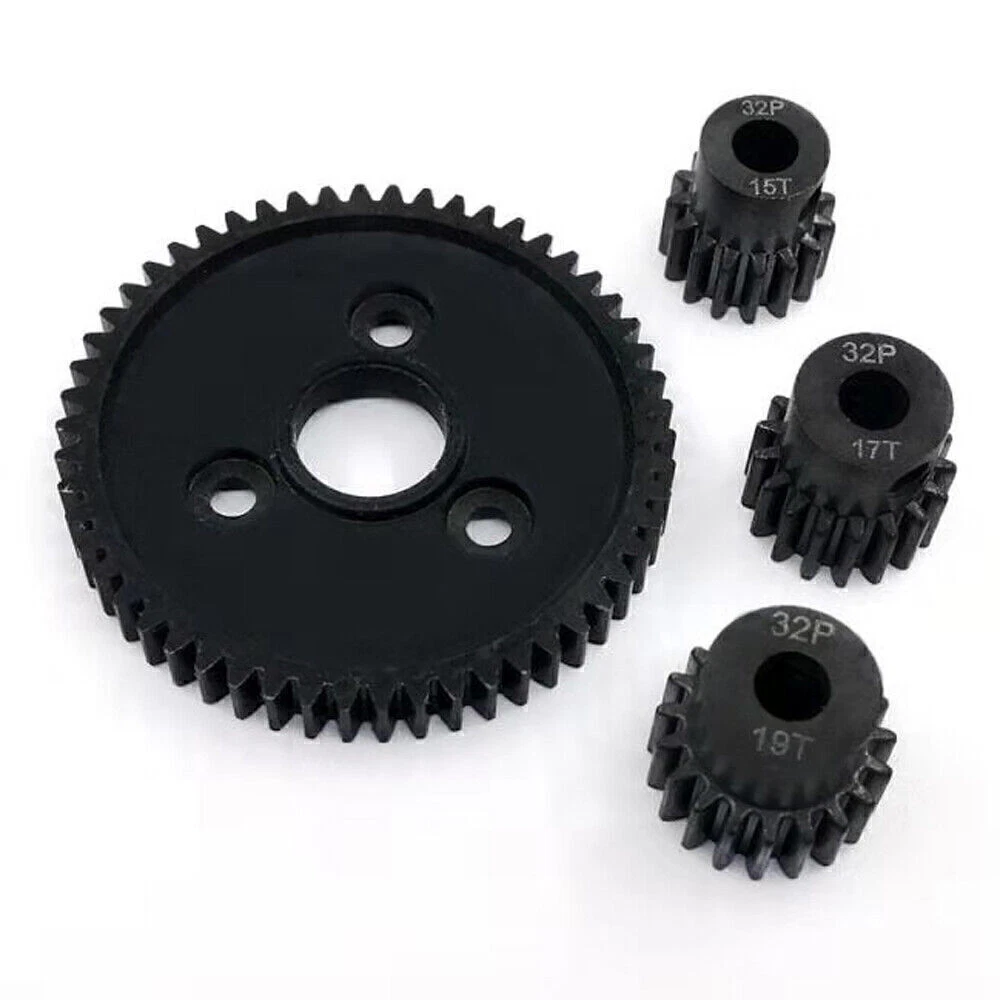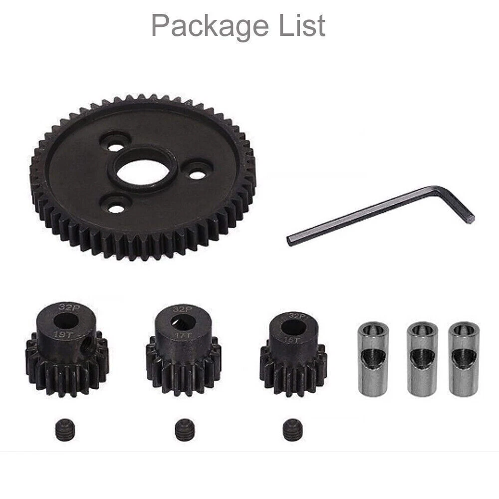 Product Description If you have any questions, please contact customer service first, do not open disputes easily, thank you! Feature: 1, Made of high-strength alloy steel and with M4 screws to prevent slipping 2, High precision steel gear 3, 0.8 metric pitch, compatible with 32-pitch 4, Suitable for 1/10 Traxxas Slash 4x4 Stampede 4x4 VXL Rustler 4X4 E-Revo Note :Suitable for motors with 5mm shaft diameter, 3660 3670 3674 4274 4268 series motors, not suitable for 3650 motors Specification: Item: 32P Steel Metal Gear Color: Black Screw: M4 Inner diameter: 5.0mm Package List: 1 * 15T 1 * 17T 1 * 19T 1 * 54T 3 * Conversion axis 1 * Screwdrive About Us We accept all payments authorized by eBay. powered by