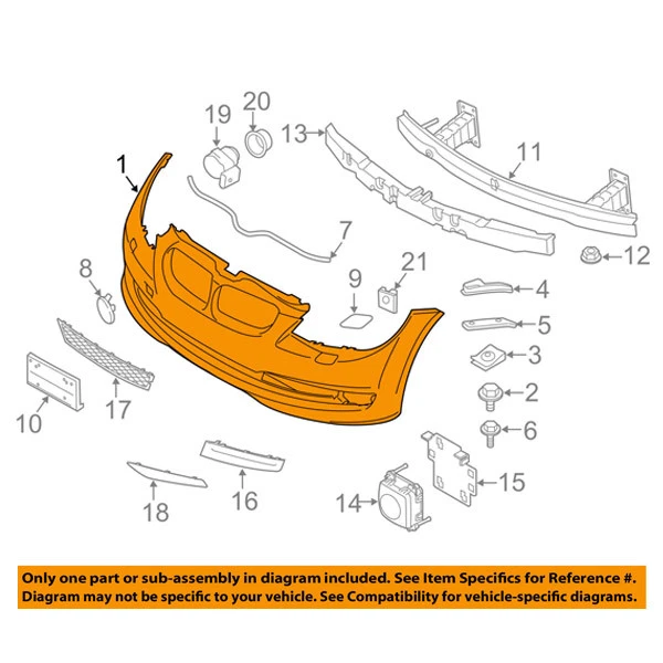 BRAND NEW BUMPER COVER ASSEMBLY! High Quality - Certified - Replacement Aftermarket - Made Of Durable Components This item is a Non-Original part Compatible with the following years and models: 2011 2012 2013 BMW 3-Series (325i & 328i & 335i 335is & xDrive) Coupe/Convertible 3.0L Note: without M Package - with Fog Lamp Hole - with Parking Aid Sensor Holes - with Tow Hook Hole - Primed - Plastic Placement: Front ** A primer or undercoat is a preparatory coating put on materials before painting. Priming ensures better adhesion of paint to the surface. The primer color may vary from one production run to another. Therefore although the correct part is pictured in this listing, the color of your bumper may be different from the color displayed in the image. This is due to the available variety of primer colors and shades in the industry (ranging from white to black), used by the manufacturer at factory level to prepare the part for the final paint job. You must paint the part to match the color of your vehicle or any color you desire. ** Please be noticed and advised that if your order gets shipped via Freight or a Trucking Company due to its size, you must make sure to inspect the item thoroughly before signing for the shipment at the time of delivery. If the item is damaged or is not as promised in any way please refuse the shipment and contact us immediately. The driver will have paperwork at the time of delivery which requires the receiver to inspect and sign for the shipment. By signing the document you will be waving all your rights to open a claim and the shipment will no longer be our responsibility. ** Please Note: Most Bumpers are FOLDED for the most Economical shipping possible; This folding can cause minor imperfections. This is exactly what you get with anyone else selling unpainted bumpers. If you do NOT agree with this shipping condition then please do not buy the part. Claims for damaged caused for folding the bumper will be denied.