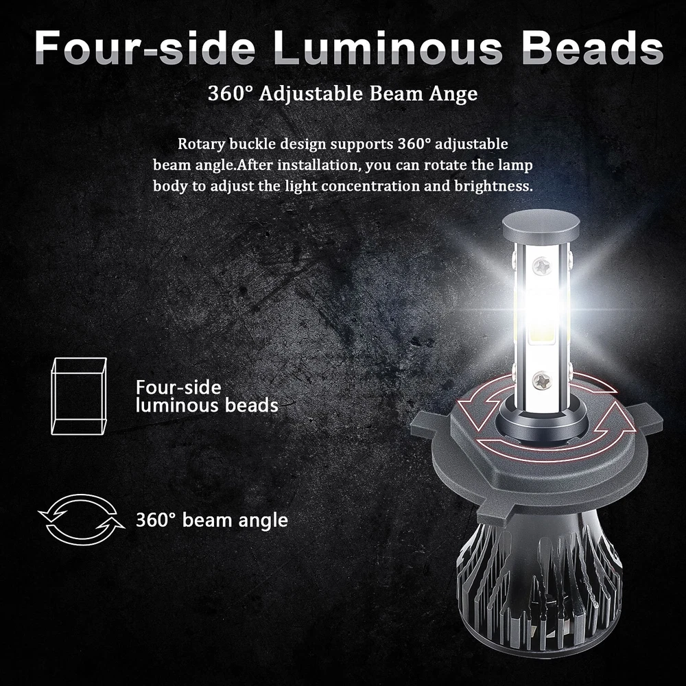 5-3/4"5.75 Round Stock Style H4 Conversion Headlights with Super Bright White LED Light Bulbs. Keep the Classic Look with Modern Light Brightness! Plug And Play! This listing is for a new set of 5 3/4" stock style glass lens - metal back headlight bulbs. This set includes (4) low/high beam headlights with high intensity LED light bulbs (no wiring or bucket modification needed). These have the original shaped prongs on the back so they will plug right into your original wiring harness plugs. These will fit any car or truck that has 4 round glass headlights. Will fit into stock buckets. Each bulb is 5 3/4 inches in diameter. These are glass and we will take extra care in packaging. Product Features: Dimension: 5.75 inch Housing Color:Black LED Type: White Material: Aluminum Housing, PMMA Lens Voltage: 10V-30V DC Color Temperature: 6000K Working Temperature: -40°C- 85°C Waterproof Protection: IP67 Interchange: H5009 / H5006 / H5506 / H5001 / 4001 Specification: 100% Brand New in the box with manufacturer packaging, never been installed before. LED LIGHT BULB Specifications and Features: Product Name: LED Headlight Bulbs Luminous flux: 10000LM Working voltage: DC9-32V IP rate: IP67 Wattage:55W Connector: H4 / 9003 (Low Beam and High Beam) Life Span: Above 50,000 Hours Color temperature: pure white 6000K Materia:Aviation aluminum profile Package Included: 4pcs 5.75" 5-3/4" headlight Housing 4pcs H4/9003 High & Low Beam LED Bulbs Note: 1. Please check the size of your bulbs on your vehicle before purchasing. 2. Please make sure the headlight housing has enough space for installation before purchasing.