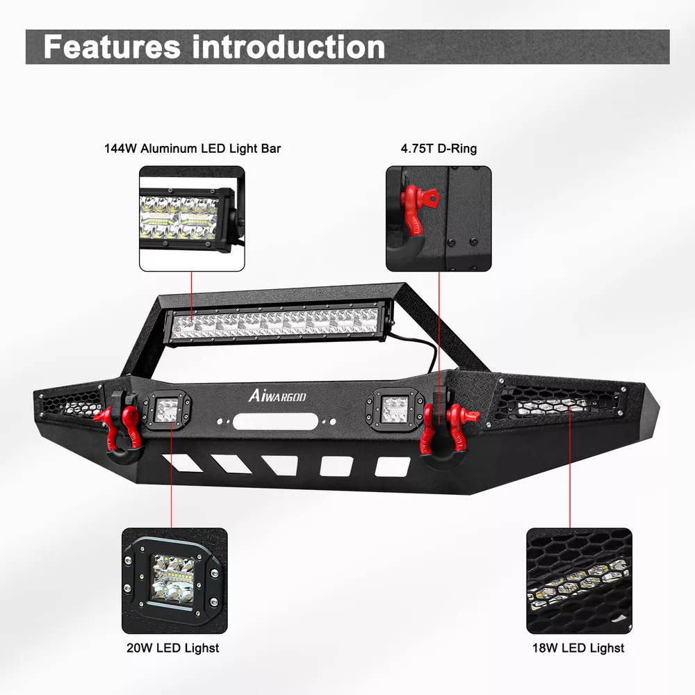 100% Brand New High Quality Factory Price AU Stock 60 Days Return Product Details Descriptions: [Fits Following Vehicles] - for 1983-2001 Jeep Cherokee XJ. [Heavy-Duty Protection] - Front Bumper is manufactured from heavy duty 5/32" steel sheet and 2"X0. 120" steel tubing to add protection to your precious vehicle while providing it with superior towing capabilities with its heavy-duty D-rings. It also gives your vehicle an attractive upgrade in its appearance for added style. [Surface Protection.] - Premium Two stage finish using epoxy pre-coating and high-grade textured black powder coating and along with our advanced laser welding technology for long lasting surface protection.. [Extremely Bright Light] - Built-in 1x 144W long light bar,2x 18W strip lights,2x 20W square lights.They brighten up the road, perfect for any night time adventure. [Bolt-on Installation] - The bumper is engineered to be a direct bolt-on installation for your, No Drilling or Modification Require,Package Comes with instruction for installation. Package included: 1X Front Bumper 1x 144W LED Light Bar 2x 20W Square LED Lights 2x 18W Strip LED Lights 2x 4.75-ton D-Rings A set of screws Installation instructions Payment Shipping Returns Contact Us Feedback Payment We accept PayPal, Google Pay, VISA, Master Card, Amex. Credit card payment can also be made via PayPal. Please make sure your eBay address is correct before you pay. All unpaid cases will be opened automatically after 7 days because eBay charges for the final value of the transaction. Shipping Australian orders are shipped by AU Post / TOLL / Fastway, usually take 3-6 business days to complete delivery. Package will be sent out within 24 hours after the pament is completed. Delivery is not available on weekends, public holidays or after business hours. Please allow 5 to 12 business days for order to arrive depending on your location State as follow: (NT Other / Darwin City/Subs /Perth Metro /SA Country / Tasmania/ Tasmania Remote /WA Country/ WA Country Far ) Returns We will accept returns or refund or exchange if the item is not used and marked within 60 days from the date of purchase. If you received wrong of defective items, please take photos and contact us to confirm. We must protect your interest as promsied. Remember to contact us via eBay message firstly. Contact Us Our online store opens 24 hours a day and 7 days a week. Office opening time: Monday to Friday 9:00AM-5:00PM. For inquires and customer support, please send your email via ebay email system. We will reply to you within 24 hours during business days. Ask us about bulk discounts if you want to buy 3 or more. Feedback We apprecaite your business and strived to improve our customer service and our commitment to quality. We will leave a postive feedback immediately after payment is received. If for some reason there are any issues with the purchase, please contact us before leaving feedback, and we will be glad to work with you to have it resolved. LED Headlight & Fog Light LED Work Light LED Light Bar Other Item