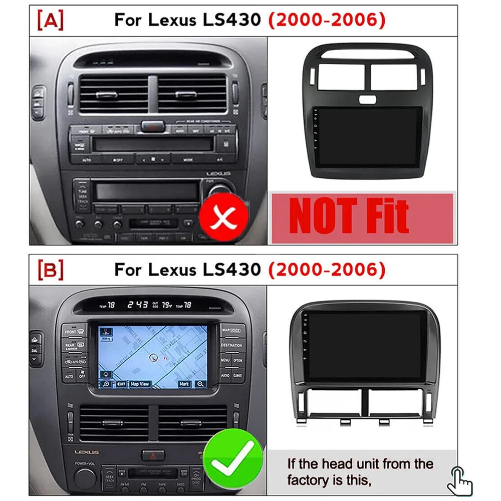 eBay For 2001-2006 Lexus LS430 Apple Carplay Radio Android 13 GPS NAVI WIFI W/Camera Features: ●HD 9'' 2.5D Tempered Glass Mirror auto radio player ●Wireless & Wired Carplay: wired or wireless Carplay in-vehicle system can closely integrate the user's iOS device and iOS experience with the dashboard system. Users who use wireless Carplay can connect to the car system via Bluetooth to realize voice-controlled navigation, make calls, send and receive messages, and listen to music. It is only available for iPhone (ZLINK5 APP) ● Wireless & Wired Android auto: wired or wireless Android auto in-vehicle system can closely integrate the user's Android device and Android experience with the dashboard system. Users who use wireless Android auto can connect to the car system via Bluetooth to realize voice-controlled navigation, make calls, send and receive messages, and listen to music. It is only available for Android phone(Android phones need to download android auto APP) ●Built-in GPS Navigation: Users can purchase directly from play store for offline navigation. With wifi connected, Google Maps can be used perfectly, you can go anywhere you want and never get lost again. ●High definition 1280P: Full capacitance touch screen for easy operation, well designed user interface for car only ●Built-in WIFI: Connect to WIFI, and you will find a new world,the most convenient one is the online map. ●Rear camera: support AHD high-definition 720P camera image input,you can switch between CVBS and AHD simply by choosing in the settings ●DSP function: High fidelity, reproduced sound highly similar to your original sound ●Steering wheel control: Through it you can control the functions you need by steering wheel, more convenient ●Built-in Bluetooth with A2DP/Hands Free/Phone book:Bluetooth hands-free calls,Bluetooth music player,Auto loading phonebooks ●Driving recorder: You can choose a recorder, and the car has playback, the evidence can be retained(requires optional) ●Double USB adapter input ●Support file manager: Support download, install and delete over thousands of android apps ●Support multilanguage: Support languages, up to 40 national languages ●You can enjoy music from you mobilephone without any cables, and also support USB connetion. ●FM Radio: Online music you can transfer the music to the car stereo by FM to enjoy the original car stereo sound,with 18 preset stations ●Time Setting:You can use the network or GPS to open the date and time automatically, or you can adjust it manually. ●Support external microphone Specifications: System:Android 13 Chipset:8227L-DEMO Screen size:9'' Memory:2GB (RAM)+32GB (ROM) Screen resolution:1280*720 Radio chip:MT6625 Power output:4*45W Work temperature:-20℃-75℃ Steering wheel control function:Support Power amplifier chip:TDA7388 Radio Band:FM/RDS Video output:Support Reversing input: AHD/CVBS External microphone: support Split screen: support Maps:Built-in offline maps(requires internet to download data) WIFI:Support USB:Double USB interface Audio format:APE/FLAC/WAV/MP3/WMA etc Video format:MKV/RMVB/AVI/MP4/MDV etc Picture format:PNG/JPEG/JPG/GIF/WBMP/BNP etc Factory setting keyword:8888 or 3368 Language:Chinese/English/French/Italian/Korean/Japanese/Arabic/Spanish/Portuguese/Russian/Turkish/Vietnamese/Hebrew/Polish/German Package Included: 1 x Car Android Stereo Radio 1 x Power Cable 1 x Speaker Cable 1 x Canbus Box 1 x GPS Antenna 1 x Rear Camera lnput Cable 1 x RCA Cable 2 x USB Cable 1 x AHD camera 1 x Microphone 1 x Instruction manual Tips: Q1. Why can't turn on the car radio ? Please check the Voltage of car radio: 12V When you test this car radio,you can combine the red and yellow wires and connect them to the positive side of the power supply.Black line to negative power supply. Replace the same type of insurance to test the car radio. Note: Please must use our power cables to connect our car radio,it is not possible to insert the original car plug directly into our machine. Q2. Why the car radio will show "No Signal" when we reversing? Please check if the camera's line is properly connected to the car radio. Note: The video port of rear camera must insert the "CAMIN" port of car radio. Q3. Why does the camera display "!" and "Can't watch video while driving" when I use USB to watch videos? Please turn off the "Video Warning" function in the settings,then will be OK. Q4. Why can't search FM? No radio antenna inserted. Please check if the radio antenna is plugged in. Please insert more antennas several times to make it well contacted. The signal of your location is not good. Please go to a better place to test again. The radio antenna on the car is broken/no effect; please replace the radio antenna and test again. Q5. Why can't connect the Bluetooth of car radio? Open the phone settings interface, open the Bluetooth in the Bluetooth function, search for Bluetooth devices, find the player's Bluetooth model to be paired; if you need a pairing code, enter 0000; if not, try 1234 or 123456. Please try to use another mobile phone to test this function. All methods are correct and still cannot use Bluetooth, Please unplug the plug on the back of the player and plug it in after 3 minute. Notes: Communication is the best way to solve the problem. If you have any problems after purchasing, please contact us in time, before opening return or case. If not sure, please send me some pictures of your original item & VIN number before ordering. WARRANTY: If Our Product Does Not Work Properly For You And You Want To Exchange Another One Or Get a Refund Please Confirm With Our Customer Service First And List The Product Detailed Problems. We Keep Our Promises That We Will Provide You With The Best Solution Within 24 Hours(May be delayed on weekends/holidays) On Jan 7, 2025 at 03:12:39 PST, seller added the following information: