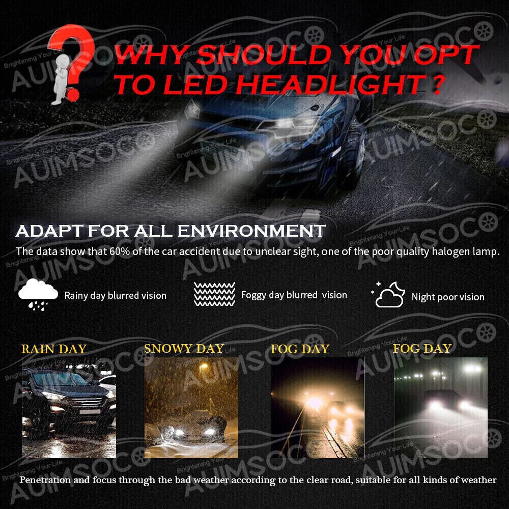 Features: Ballast Included Other Part Number: HB3 high beam + HB4 low beam Fitment Type: Direct Replacement Universal Fitment: Yes Lumens: 10000 lm Color Temperature: 6000K Wattage: 80W Fitment Type:: Direct Replacement Suitable For: Headlight, High Beam, Low Beam Vintage Part: Yes Lighting Type: Specialty Head Light Bulb Type: Headlight Kit Manufacturer Part Number: AUIMSOCOR0629 Features:: Easy Installtion Material: Aluminum alloy Manufacturer Warranty: 5 Year Bulb Fitment Code: 9005/HB3 + 9006/HB4 Non-Domestic Product: No Ballast Included: Yes Placement on Vehicle:: Front, Left, Right Interchange Part Number: 9005 high beam + 9006 low beam UPC: 632807531007 More LED Kit we have: 9005 9006 HB4 9007 HB5 H11 H8 H9 H13 9008 H4 9003 Heat control: Heat Pipe Technology + A380 Aluminum Heatsink Sealed Housing: Dustproof and Waterproof Other LED Kit We Have: H10 HB2 H1 H7 9004 HB1 HB3 9011 9012 9145 9140 OE/OEM Part Number: LED Headlight Kit Brand: AUIMSOCO Interchange Part Number:: 9005(HB3)+9006(HB4) Superseded Part Number: Replacement Halogen Xenon Led Light Bulbs Light Color: Clear Size: the same as the car original light gtin13: 632807531007 Number of Bulbs: 4 Placement on Vehicle: Front, Left, Right Lighting Technology: LED Model: LED Headlight Conversion Kit To Fit: Headlight Voltage: 9V-36V Country/Region of Manufacture: United States Bulb Life Hours: Hours Up to 5,000 Hours