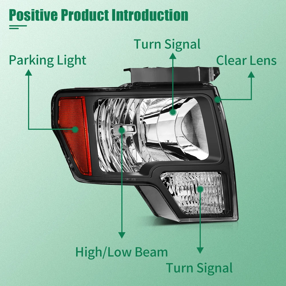 Compatibility should be checked and confirmed before placing order! Steps of confirming the compatibilities: Manage " My Garage ", and chose the right one when placing order; Or chose the " Year / Make / Model / Trim / Engine " of your vehicle on the compatible chart; Or Contact us if you have any question in confirming the compatibility, to make sure you will get the right and compatible item. COMPATIBLE WITH: 2009-2014 Ford F-150 Application: Professional Installer is Highly Recommended Package Including: Headlights Pair Left+Right Side (Passenger & Driver Side) EASY TO INSTALL: 1.Undo the screws, clips, or retainer springs that hold the headlight in place. 2.Disconnect the wiring from the assembly. 3.Detach the headlight from the vehicle to replace it with a new one. 4.Fit in the new headlight assembly. 5.Fix the new headlight into place and make sure that the screws, clips, or retainer springs are sealed. 6.Reconnect the wiring that was unplugged from the assembly. 7.Put back the grille and other components that you removed. Seal them back into place. 8.Test the new assembly. You will get what you see in the picture showed. About US: We are committed to making the best auto-parts products and providing you with better services. So if you have any quesiton or problem, please fell free to contact us about that. Payment: Paypal and other methods which are acceptalbe by eBay. Shipping: All item will be packed with well condition in box or envelope, we make sure the item is in good protection, also please check all the item when you get the package. Product will be shipped within 2 business days after full payment is received and verified. All domestic orders will be shipped via USPS, UPS or FedEx from our US warehouse and usually arrives to your door in about 2-7 business days. Returns & Refund: 30-day free return will be provided. -Please note that the situations below will not be incounted: -Ordered by mistake. -Don't like it. -Duplicated orders. -Damaged product during installation. Contact Us: Any quesiton or problem, do contact us please. We are always online to answer. WARNING: Cancer and Reproductive Harm - www.P65Warnings.ca.gov. End Save for Web Slices