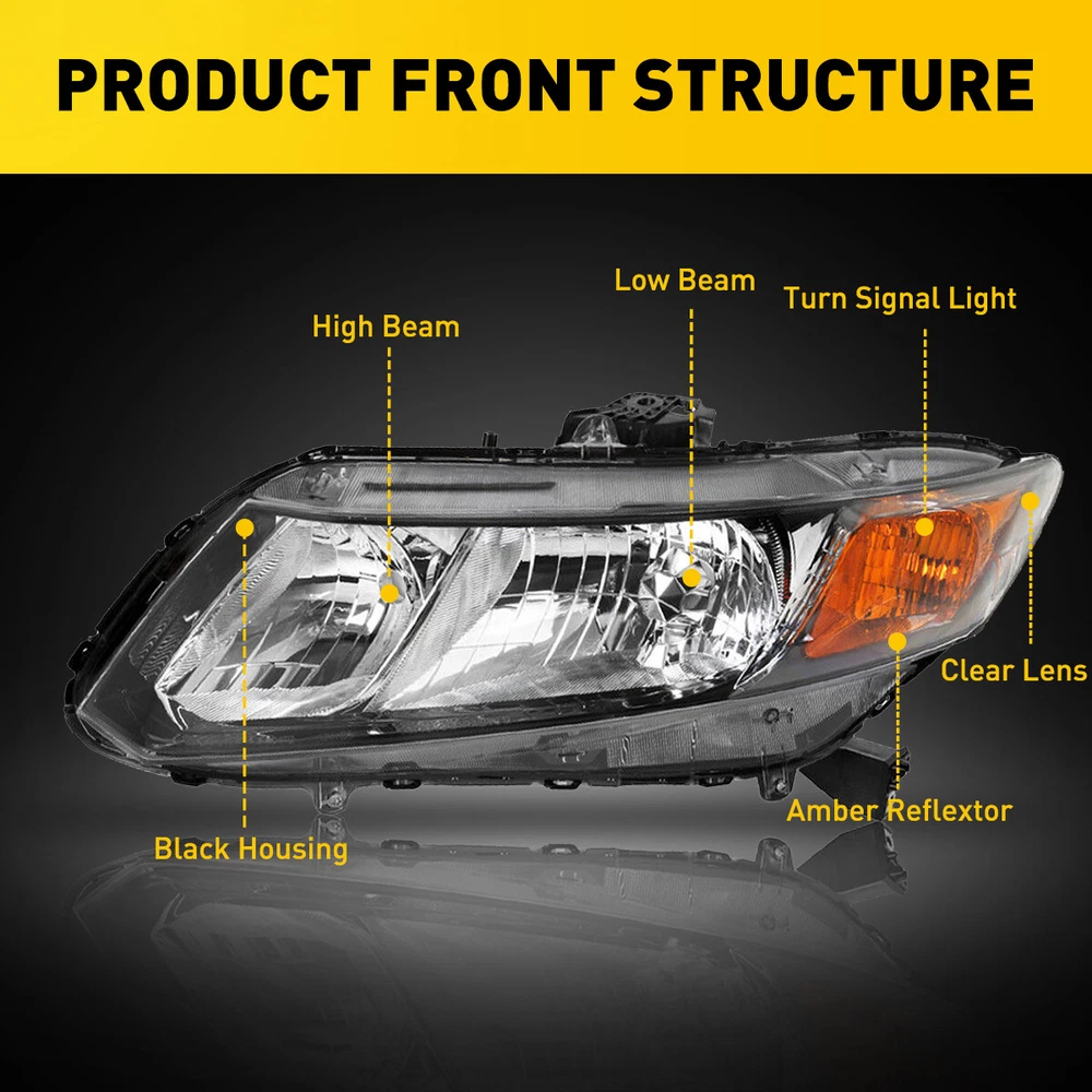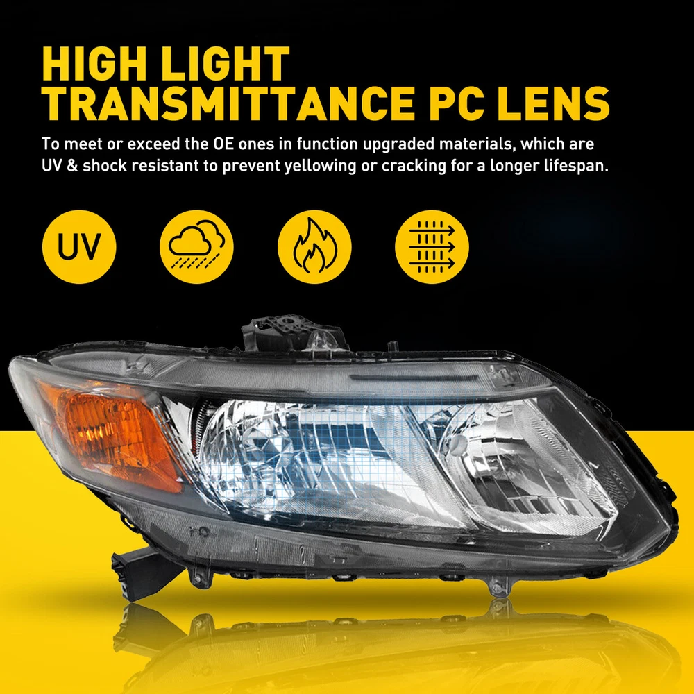 Fit for: 2012-2015 Honda Civic 4Dr Sedan 2012-2013 Honda Civic 2Dr Coupe Specifications: OE number: 33150TR0A01,33400TR0A01,33150TR2A01,331400TR2A01 HO2502144, HO2503144, HO2502150, HO2503150 Material: ABS+PC (ABS Plastic Housing/Polycarbonate lens) Appearance color: 1.Housing Color:Black 2.Lens Color:Clear 3.Reflector Color:Amber Note: Projector ×(Not Include) DRL × (Not include) Bulb × (Not include) Features: *Easy to install: Direct replacement, drilling and cutting are not required. For 2012-2015 Honda Civic 4Dr Replacement Headlights Assembly Pair Left + Right Fit for: 2012-2015 Honda Civic 4Dr Sedan 2012-2013 Honda Civic 2Dr Coupe Specifications: OE number: 33150TR0A01,33400TR0A01,33150TR2A01,331400TR2A01 HO2502144, HO2503144, HO2502150, HO2503150 Material: ABS+PC (ABS Plastic Housing/Polycarbonate lens) Appearance color: 1.Housing Color:Black 2.Lens Color:Clear 3.Reflector Color:Amber Note: Projector ×(Not Include) DRL × (Not include) Bulb × (Not include) Features: *Easy to install: Direct replacement, drilling and cutting are not required. *Superior quality: Made of ABS and PC materials with toughness and heat resistance functions to ensure its long service life and durability. *Angle adjustment: Equipped with a headlamp Angle adjustment knob, you can adjust the best Angle of view through the knob. *Suggestion: 1.Please confirm the OE number before purchasing!!! 2.Professional installation is required!!! Packaging include: Headlights*2(Left+Right) Item Specifics Brand AUXITO Lighting Technology Halogen Type Headlight Assembly Features Reflector Housing, SAE-Certified, Sealed Assembly Housing Color Black Placement on Vehicle Front Left,Right Light Color No Bulb Lens Color Clear Reflector Color Amber Manufacturer Part Number HDCV12.06 Color Temperature \ Voltage 12 V Mounting Style Screws Vintage Part Yes Performance Part Yes Manufacturer Warranty 5 Years Universal Fitment No Number of Bulbs 0 Finish Smooth Model For 2012-2015 Honda Civic 4Dr Sedan,2012-2013 2Dr Coupe OE/OEM Part Number 33150TR0A01,33400TR0A01,33150TR2A01,331400TR2A01 Quantity 2 Headlight assembly Packaging include Left & Right Side Headlights Assembly Bulbs Included Not Included Bulb Shape Code Please Use Stock Bulbs Include Projector Not Included Include DRL Not Included Fitment Type Direct Replacement Assembly Type Composite Type Headlight Assembly Mounting Hardware Included No Certifications DOT, SAE Dust and Moisture Protection Yes Waterproof Yes Ballast Included No Applicable Regions US Items Included Headlight Assembly Bulb Shape Code Just like the original Wattage \ Interchange Part Number HO2502144, HO2503144, HO2502150, HO2503150 FAQ ♥ If you have a decoding problem or any other problems, please contact us first, we will help you with it. We will reply you within 24 hours in working days. I'm a new seller, thanks a lot for your trust and convince! I will serve you with all my heart. ♥ Q1: Will this bulb fit my vehicle? A: We can match almost any vehicle to one of our bulb sizes. eBay only lets us include some vehicle fitments per listing, but if your vehicle does not show up on the compatibility table at the top of our listings, welcome you to contact us for free consulation before purchasing a product. Q2: My item has not arrived, what's taking so long? A: Sometimes items take longer than expected, especially if it’s going far or to rural area. Check with your post office to see if your item has been held up. Sometimes Royal Mail will not update a tracking number until it has arrived at its destination. If your item still don't arrive after a few days, let us know so we can double check for you and help solve it asap. Q3: My bulbs won't fit, help! A: Special bulb holder may be required. See if you can take the holder from the stock bulb. If not, let us know. The bulb size may be wrong, double check the item you received with the item you ordered. Do you have an aftermarket lighting housing? These may not be perfectly fitted for aftermarket bulbs and will require some manual modifications. Q4: Neither side lighting up? Both sides flicker, hyper flash, or work inconsistantly. A:Check the light fuses, and then check the ballast plugs to insure correct installation. If this doesn't work, there may be a voltage problem with the vehicle. You probably just need a relay or capacitor. Even though some bulbs are builtin resistors, they may still need a decoder. Payment (1). We gladly accepts payment via PayPal, We will ship your item(s) within 24 hours. (2). Before payment, please keep the consistency of Paypal address and ebay address. (3). Quantity orders are welcome! Returns (1). We offer 60 days free return policy. Please contact us within 60 days from the date you receive your order if you have any issues with the product or want return. Refund will be send after we got your resend package. (2). All returned items should be in the original packaging , return tracking information should be provided . Contact us (1).Negative feedback will not help resolve any problems you have, please contact us via eBay messages before leaving negative feedback , our customer service will make best effort to help you with the issues. (2).We maintain high standards of excellenceand strive for 100% customer satisfaction! Feedback is very important to us. We request that you contact us immediately before you give us neutral or negative feedback, so that we can satisfactorily address your concerns. About us We're professional in car and motorcycle accessories, especially in LED bulbs. We have our own factory and R&D team. Our belief is to sell top quality items that fit your car and serve you with our heart. Anything please feel free to contact us! Our customer service is very responsibility. Come and follow us! DESCRIPTION PAYMENT SHIPPING RETURN POLICY CONTACT US Shop Category Store Home Other Hot Item 2x H7 Super Bright LED Headlight Bulbs 60000LM Kit High Low Beam 6500K White USD 24.99 2PCS O2 Oxygen Sensor Up+Down