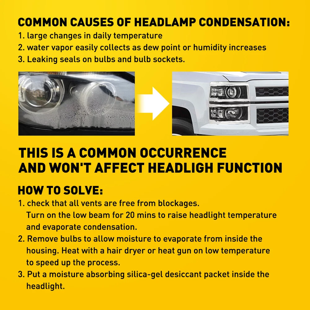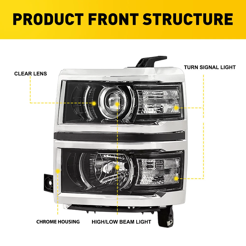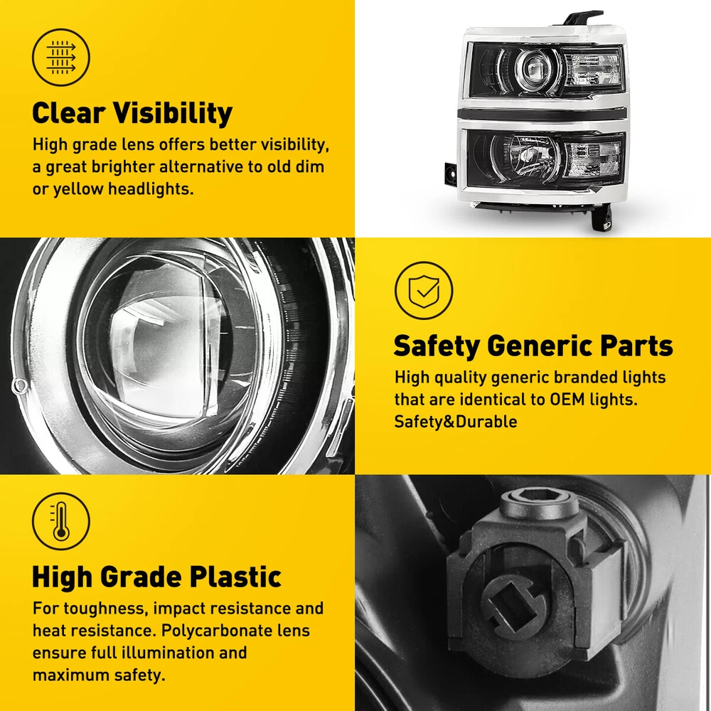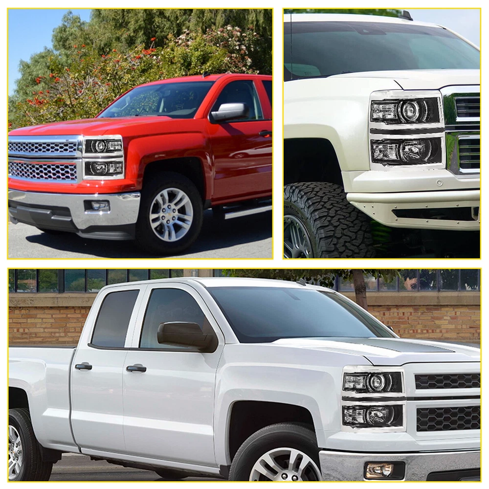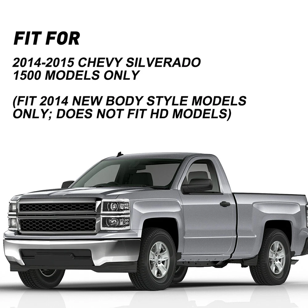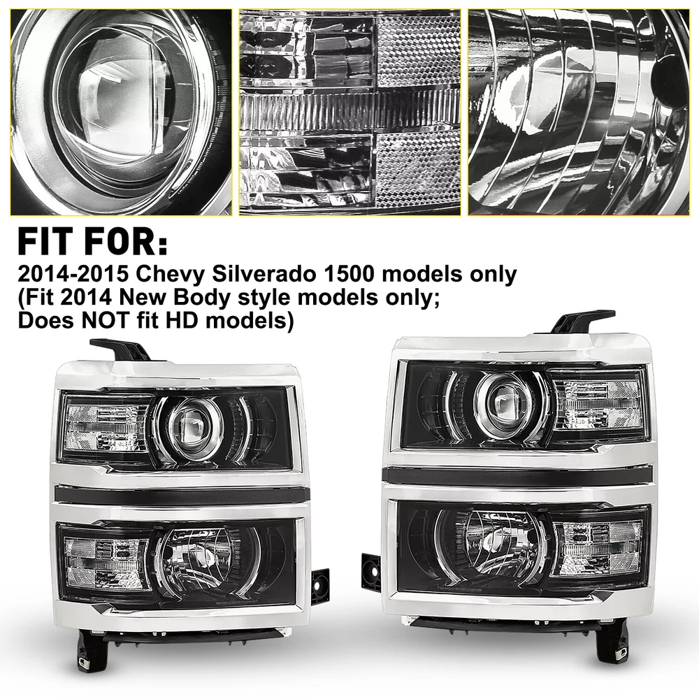 Fit for: 2014-2015 Chevy Silverado 1500 models only (Fit 2014 New Body style models only; Does NOT fit HD models) Specifications: OE number: 20933724, 20933725, 20933722, 20933723, 23172782, 23172783 GM2502389, GM2503389, GM2502395, GM2503395, GM2502410 Material: ABS+PC (ABS Plastic Housing/Polycarbonate lens) Appearance color: 1.Housing Color:Black 2.Lens Color:Clear 3.Reflector Color:White Note: Projector √(Include) DRL × (Not Include) Bulb × ( Not include) Features: *Easy to install: For 2014-2015 Silverado 1500 Housing Replacement Projector Headlamps Light EPU Fit for: 2014-2015 Chevy Silverado 1500 models only (Fit 2014 New Body style models only; Does NOT fit HD models) Specifications: OE number: 20933724, 20933725, 20933722, 20933723, 23172782, 23172783 GM2502389, GM2503389, GM2502395, GM2503395, GM2502410 Material: ABS+PC (ABS Plastic Housing/Polycarbonate lens) Appearance color: 1.Housing Color:Black 2.Lens Color:Clear 3.Reflector Color:White Note: Projector √(Include) DRL × (Not Include) Bulb × ( Not include) Features: *Easy to install: Direct replacement, drilling and cutting are not required. *Superior quality: Made of ABS and PC materials with toughness and heat resistance functions to ensure its long service life and durability. *Angle adjustment: Equipped with a headlamp Angle adjustment knob, you can adjust the best Angle of view through the knob. *Suggestion: 1.Please confirm the OE number before purchasing!!! 2.Professional installation is required!!! Packaging include: Headlights*2(Left+Right) Item Specifics Brand AUXITO Fitment Type Direct Replacement Manufacturer Warranty Yes Material ABS PC (ABS Plastic Housing/Polycarbonate lens) Bulbs Included No Type Headlight Assembly Placement on Vehicle Front, Right,Left,Driver Side & Passenger Side Beam Type Low Beam, High Beam Assembly Type Composite Specifics For Models With Factory Halogen Headlights Only OE/OEM Part Number 20933724,20933725,20933722,20933723,23172782,23172783 Other Part Number GM2502389,GM2503389,GM2502395,GM2503395,GM2502410 Interchange Part Number GM2502389,GM2503389,GM2502395,GM2503395,GM2502410 Superseded Part Number 20933724,20933725,20933722,20933723,23172782,23172783 Mounting Style Screws Headlight Style Headlight Style Factory, Projector Housing Color Black Reflector Color White Features Factory Headlights, OE-Certified, SAE-Certified, Sealed Assembly Lighting Technology Halogen Bulb Shape Code 9005 HB3 High / H1 Low Beam; Bulb Not Required Fitment For 2014-2015 Chevy Silverado 1500 models only Compatible/Replacement For 2014-2015 Chevy Silverado 1500 models only Turn Signal/Parking Light 7443A 7443 Note Does NOT fit HD models Payment 1. We can only accept payment from PayPal. 2. Please keep the consistency of Paypal address and ebay address. Shipping 1. All items will be shipped in 12 hours after receiving your payment . 2. We ship this item to US only via USPS first class mail. It usually takes 3-5 working days to deliver. Returns 1. We offer 30 days return policy. 2. Please contact us within 30 days from the date you receive your package if you have any questions with the products . 3. Refund will be sent after we got your returned package. 4. All returned items should be in the original packaging with tracking number. Contact Us We work from Monday - Saturday 9:00AM - 6:00PM, but we will reply once we get your message. There will be delay on response if you send message or E-Mail on Sunday. DESCRIPTION PAYMENT SHIPPING RETURN POLICY CONTACT US Shop Category Store Home Other Hot Item Universal Car Windshield Wiper Squirter Washer Nozzle Spray Jet Kit Fluid Hose T USD 9.99 1set Control Knob Speed Fan Heater A/C For Jeep Wrangler TJ 99-06 5011218AA USD 9.99 Rear Left or Right Outside Door Handle for 2010-2016 Toyota 4Runner Lexus GX460 USD 14.24 For 2002-2008 Dodge Chrysler Stereo Car Radio Wiring Harness Adapter USD 11.59 Door Latch Cables LH+RH Front For 2007-2013 Chevy Silverado 1500 2500 HD 3500 HD USD 17.99 New List Item For 2008-2012 Honda 2.4L Accord Upstream Downstream Oxygen O2 Sensor Replacement USD 38.99 Outside Door Handle For Colorado Chevy 2004-2012 Textured New Left Driver Rear USD 12.99 For 2002-2008 Dodge Ram 2500 1500 3500 Chrome 4 Door Handle + Tailgate Covers USD 24.99 FOR FD FUSION 2014 2013 2015 2016 2017 2018 2019 HOOD HINGE RIGHT & LEFT PAIR USD 32.99 10pcs 2-LED Marker Red Oval Side Truck Trailer Lights Clearance Light Waterproof USD 12.99 Excellent Delivery For 2014-2015 Silverado 1500 Housing Replacement Projector Headlamps Light EPU Fit for: 2014-2015 Chevy Silverado 1500 models only (Fit 2014 New Body style models only; Does NOT fit HD models) Specifications: OE number: 20933724, 20933725, 20933722, 20933723, 23172782, 23172783 GM2502389, GM2503389, GM2502395, GM2503395, GM2502410 Material: ABS+PC (ABS Plastic Housing/Polycarbonate lens) Appearance color: 1.Housing Color:Black 2.Lens Color:Clear 3.Reflector Color:White Note: Projector √(Include) DRL × (Not Include) Bulb × ( Not include) Features: *Easy to install: Direct replacement, drilling and cutting are not required. *Superior quality: Made of ABS and PC materials with toughness and heat resistance functions to ensure its long service life and durability. *Angle adjustment: Equipped with a headlamp Angle adjustment knob, you can adjust the best Angle of view through the knob. *Suggestion: 1.Please confirm the OE number before purchasing!!! 2.Professional installation is required!!! Packaging include: Headlights*2(Left+Right) Payment Shipping Returns Contact Us 1. We can only accept payment from PayPal. 2. Please keep the consistency of Paypal address and ebay address. 1. All items will be shipped in 12 hours after receiving your payment . 2. We ship this item to US only via USPS first class mail. It usually takes 3-5 working days to deliver. 1. We offer 30 days return policy. 2. Please contact us within 30 days from the date you receive your package if you have any questions with the products . 3. Ref