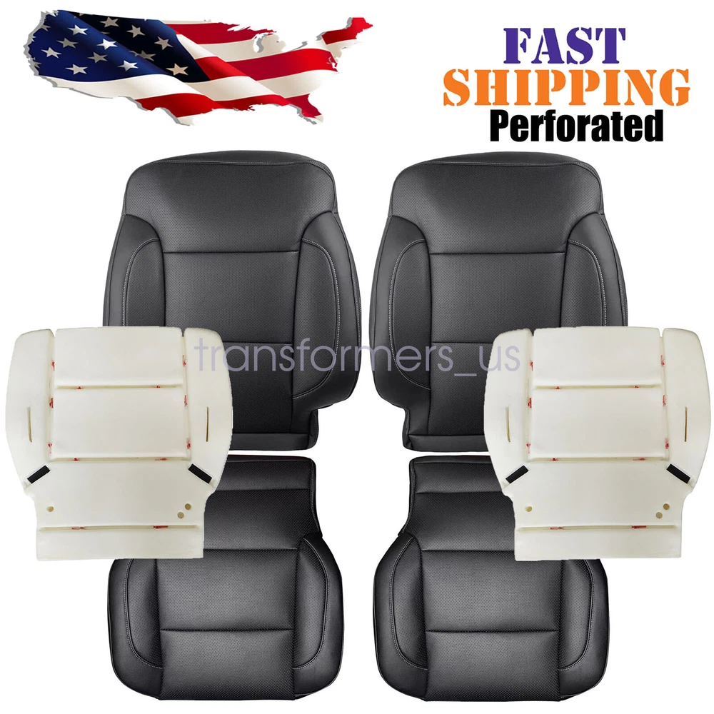 For 2014-2019 Chevy Silverado LTZ Front Leather Seat Cover Black / Foam Cushion 20 14-2019 For Chevy Silverado/GMC Sierra 1500, 2500HD, 3500HD, LT, LS, LTZ, Z71 Hybrid Front Driver / Passenger Bottom / Top Leather Seat Cover Black Note: Seat Cover Color is Jet Black Microfiber Leather Perforated With White Stitching On Side Description: Type: Driver / Passenger Bottom / Top Replacement Seat Cover Black / Foam Side: Driver / Passenger Side Seat Cover Color: Jet Black - 's Exact Color Match Interior Trim Code: H2U, H1Y or H3B or 4AA (Codes on Sticker Inside Glove Box) Material: Microfiber Leather & High Density Foam Make: Chevy/GMC Model: Sil verado LT, LS, LTZ, Z71, Hybrid / Sierra SLT, SLE, Z71 Fit Years : 2014 2015 2016 2017 2018 2019 This item is a new Custom-made, replacement in " Jet Black " C olor for: 2014-2018 GMC Sierra 1500 SLT, SLE, Z71, Hybrid (Single-Cab, Extended-Cab, Crew-Cab) 2015-2019 GMC Sierra 2500HD SLT, SLE, Z71 (Single-Cab, Extended-Cab, Crew-Cab) 2015-2019 GMC Sierra 3500HD SLT, SLE, Z71 (Single-Cab, Extended-Cab, Crew-Cab) 2015-2019 Chevrolet Tahoe LT, LS, LTZ, Z71, Midnight Ed, Premier, Sport, PPV, SSV, 2WD, 4X4 2015-2019 Chevrolet Suburban LT, LS, LTZ, Z71, Premier, Sport, HD, 2WD, 4X4 2014-2018 Chevrolet Silverado 1500 LT, LS, LTZ, Z71, Hybrid (Single-Cab, Extended-Cab, Crew-Cab) 2015-2019 Chevrolet Silverado 2500HD LT, LS, LTZ, Z71 (Single-Cab, Extended-Cab, Crew-Cab) 2015-2019 Chevrolet Silverado 3500HD LT, LS, LTZ, Z71 (Single-Cab, Extended-Cab, Crew-Cab) 2015 - 2019 GMC Yukon Denali 2015 - 2019 GMC Yukon 1500 XL Denali Heated Seats: Fits Heated Seats and Non Heated Seats Power Seats: Fits Power Seats and Non Power Seats Vehicles Seat Cover's Attached Padding: ½ Inch attached foam padding Warranty: 5 Year Seat Cover Type: Factory's Seat Cover's Replacement-NOT a pull Over, you'll take off the old cover, and install the new cover Package Including: Choose your pieces If you do not know how to install, please contact us , We can provide video installation instructions Tips: This Driver / Passenger Bottom / Top Replacement seat cover, built to factory specs with Quality Microfiber Leather to match the Interior of your vehicle! Our product is exactly the same as your existing cover and guaranteed to fit perfectly on your seat foam Pad. Any wrinkles seen in the pictures is from being in a box and guaranteed to disappear once installed Correctly. Please note this item is a replacement, not a slip on or pull over. Please Note: Actual Replacement Cover. NOT A SLIP ON or PULLOVER. You will remove the old cover & then install the New Cover. Communication is the best way to solve the problem. If you have any problems after purchasing, please contact us in time, before opening return or case. General Policies : Dear customer,if you have any questions,you can contact us,we will provide the best service for you. Shipping policy : The item will be shipped within 24 hours on payment received except the holidays.(except weekends & official holidays). You can log on to eBay to check your logistics tracking number. Please confirm address before purchase, and cannot change address once purchased. If you need to receive the item quickly, please contact us, you can pay the postage to choose other logistics. Payment: Please purchase and pay for the item through the eBay,only accpected the paypal payment. Returns: Please contact us first when return, exchange and refund is required. Any direct return of purchased items will not be processed. Item must be returned in new condition, as received with all accompanied accessories and literature, including the factory carton. Shipping, handling is not refundable unless item is returned because of defect. If the product is defective or damage upon arrival,please contact us immediately,we will provide the solve the problem. Returns accepted within 30 days of delivery date and item must be in new condition. About us: Our goal is complete customer satisfaction. We will be very honored to provide you with quality service. If there is an issue with shipping or the item you purchased please contact us via ebay message or call us before opening a case or leaving feedback.We will try our best to resolve any kind of issue. For 2014-2019 Chevy Silverado LTZ Front Leather Seat Cover Black / Foam Cushion 20 14-2019 For Chevy Silverado/GMC Sierra 1500, 2500HD, 3500HD, LT, LS, LTZ, Z71 Hybrid Front Driver / Passenger Bottom / Top Leather Seat Cover Black Note: Seat Cover Color is Jet Black Microfiber Leather Perforated With White Stitching On Side Description: Type: Driver / Passenger Bottom / Top Replacement Seat Cover Black / Foam Side: Driver / Passenger Side Seat Cover Color: Jet Black - 's Exact Color Match Interior Trim Code: H2U, H1Y or H3B or 4AA (Codes on Sticker Inside Glove Box) Material: Microfiber Leather & High Density Foam Make: Chevy/GMC Model: Sil verado LT, LS, LTZ, Z71, Hybrid / Sierra SLT, SLE, Z71 Fit Years : 2014 2015 2016 2017 2018 2019 This item is a new Custom-made, replacement in " Jet Black " C olor for: 2014-2018 GMC Sierra 1500 SLT, SLE, Z71, Hybrid (Single-Cab, Extended-Cab, Crew-Cab) 2015-2019 GMC Sierra 2500HD SLT, SLE, Z71 (Single-Cab, Extended-Cab, Crew-Cab) 2015-2019 GMC Sierra 3500HD SLT, SLE, Z71 (Single-Cab, Extended-Cab, Crew-Cab) 2015-2019 Chevrolet Tahoe LT, LS, LTZ, Z71, Midnight Ed, Premier, Sport, PPV, SSV, 2WD, 4X4 2015-2019 Chevrolet Suburban LT, LS, LTZ, Z71, Premier, Sport, HD, 2WD, 4X4 2014-2018 Chevrolet Silverado 1500 LT, LS, LTZ, Z71, Hybrid (Single-Cab, Extended-Cab, Crew-Cab) 2015-2019 Chevrolet Silverado 2500HD LT, LS, LTZ, Z71 (Single-Cab, Extended-Cab, Crew-Cab) 2015-2019 Chevrolet Silverado 3500HD LT, LS, LTZ, Z71 (Single-Cab, Extended-Cab, Crew-Cab) 2015 - 2019 GMC Yukon Denali 2015 - 2019 GMC Yukon 1500 XL Denali Heated Seats: Fits Heated Seats and Non Heated Seats Power Seats: Fits Power Seats and Non Power Seats Vehicles Seat Cover's Attached Padding: ½ Inch attached foam padding Warranty: 
