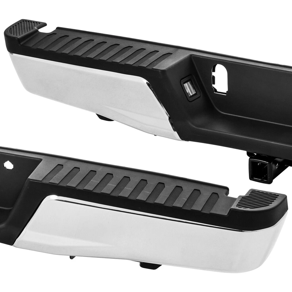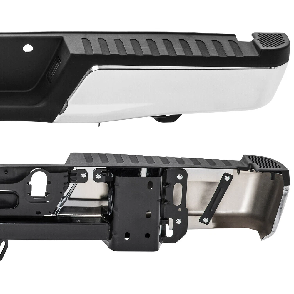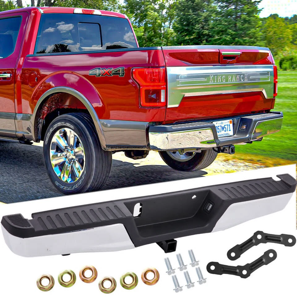 Package Content: 1x Pickup Rear Bumper 1 x Set of Mounting Brackets Some Bolts and Screws Item Specifications: Condition: 100% Brand New Color: Chorme Material: Carbon Steel Warranty: 5 Years Type: Bumper Assembly Placement on Vehicle: Rear Fitment Type: Direct Replacement Notice: For Models with Tow Hitch Fitment: Fit Ford F-150 2015-2020 Not Fit 2019/2020 F-150 Limiter Models Not Fit F-150 Raptor Models For Models Without Park Assist Holes, with Tow Hitch Features: Simple Installation Process Practical and Ornamental Coexis High-quality Steel Raw Materials Integrated Step Fits Perfectly with the Vehicle Protect the Vehicle and Reduce Damage On Mar 20, 2024 at 01:52:52 PDT, seller added the following information: On Jun 16, 2024 at 08:30:14 PDT, seller added the following information: On Dec 3, 2024 at 02:54:00 PST, seller added the following information: