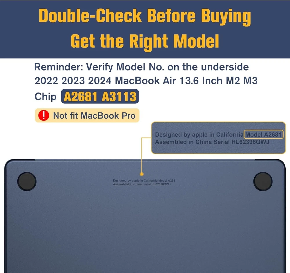 For 2022-24 Apple MacBook Air M2/M3 13.6-inch Premium Slim Matte Protective Case Product Description : 【Compatibility】Compatible with MacBook Air 13.6 inch M2 M3 Chip (2022 2023 2024 release) A2681 A3113. Not compatible with other models. Please check the model number on the back of the laptop before purchasing. Note: This case is not compatible with MacBook Air 13 inch 2018-2020 release (models A2337(M1)/A2179/A1932) and MacBook Air 13 inch 2010-2017 release (models A1466/A1369). Precise cut-outs, seamless fit: designed for the MacBook Air M2 M3 13.6 inch, this case is shaped by micro 3D cutting technology according to the original MacBook. It fits snugly like a second skin, allows easy access to all ports and ensures smooth opening and closing. Ultra micro clip design allows easy installation and removal. Exclusive midnight design, just like the naked MacBook: With high-precision matte finish and repeated colour adjustments, this case fits perfectly with your 13.6 inch MacBook Air and preserves the original slim and minimalist design. In addition, the oleophobic nano coating can effectively reduce fingerprints, dirt and scratches and keep the device looking new and clean for a long time. Effective shock protection, slim and lightweight: made of powerful impact-resistant materials, our case can effectively protect your MacBook while showing its original beauty. What is in the Box: 1x Case (Bottom and Top) We are committed to your satisfaction. If you are not completely satisfied with our product, we offer a 100% money-back guarantee. USA SELLER!! BRAND NEW!! BEST QUALITY!! FAST DELIVERY VIA USPS!! GREAT FOR ANY OCCASIONAL GIFT TO YOUR FRIENDS, FAMILY, NEAR AND DEARS ONES!! Contact us Please give us the opportunity to resolve any problem before leaving any negative feedback or open any dispute. Please feel free to contact us on eBay's Internal Message System for any questions or concerns you may have. If you want to change shipping address or want a faster shipping etc., it's Better leave a note of under your order, so the system can hold on your order before we see your message, thanks. We will answer all your questions or concerns ASAP. Feedback We will make every effort to make your shopping the most pleasant and wonderful! Please contact us before leaving a negative feedback, giving us a chance to resolve your problem. Customer Service If you have any problems, we are very glad to help you. Please message us directly through eBay for faster response. Your inquiry is important to us and we'll respond within 24 Hr. SHIPS FROM U.S!!!!!!!!RECEIVE IT FAST AND FREE!!!!!!! Your order will be shipped within 1 business days upon full payment received. [ Due to the different monitor and light effect, the actual color of the item might be slightly different from the color showed on the pictures. Thank you! ]
