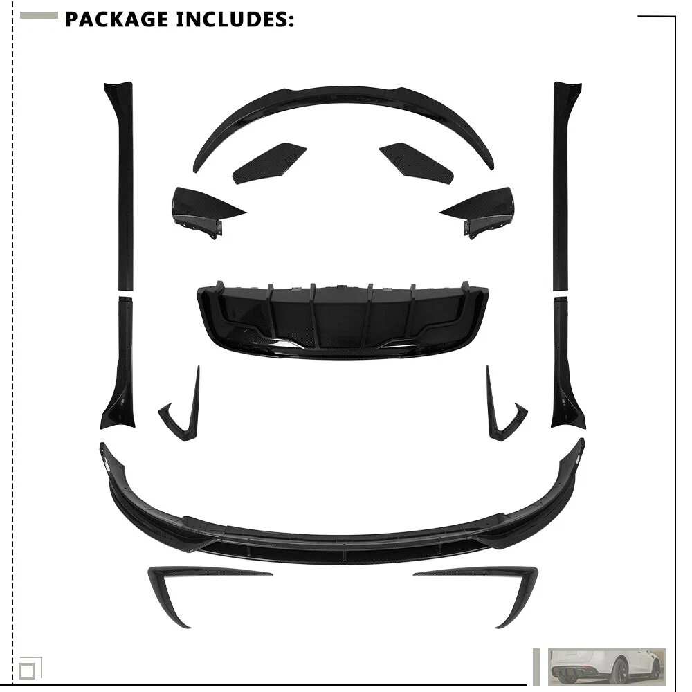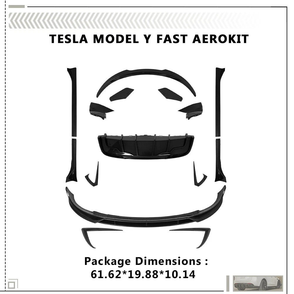 Item Fitment: Fit For 2020-2024 Tesla Model Y Fast Aerokit (The Compatibility Is Just For Reference. Please Compare With Your Original One Before Purchasing! ) Item Description: Condition: 100% Brand New Material: High quality of ABS Plastic Color: carbon look Made in an ISO 9001 facility to ensure good quality Package Include: 1set/15pcs x Tesla Model Y Aerokit Note: Sold as seen, please ensure suitability carefully before purchase This item doesn't come with manual installation Professional installation is highly recommended
